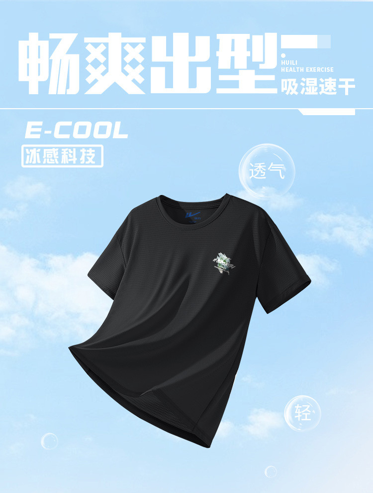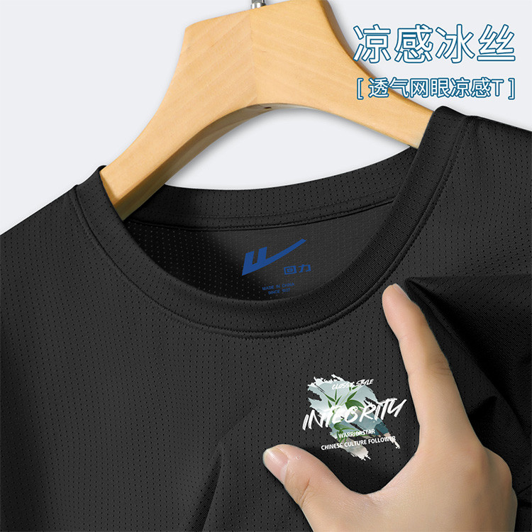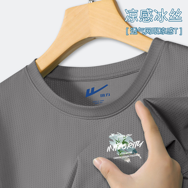 商品名称:【冰感透气】冰丝网眼短袖t恤男夏季简约印花轻薄透气运动上衣 635411