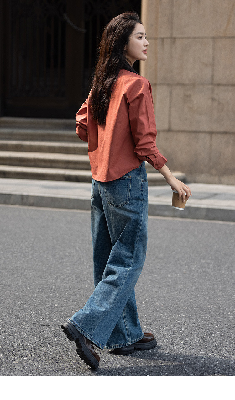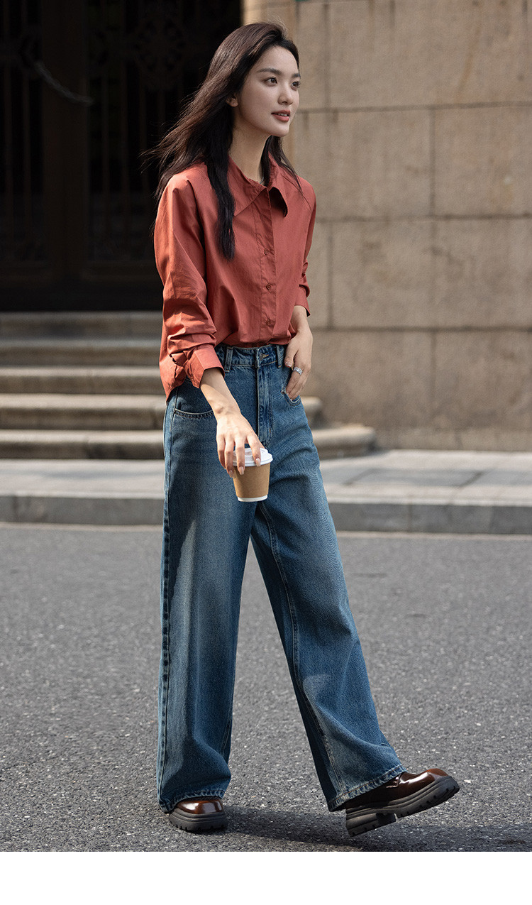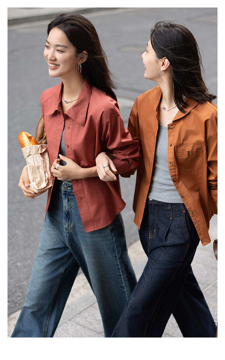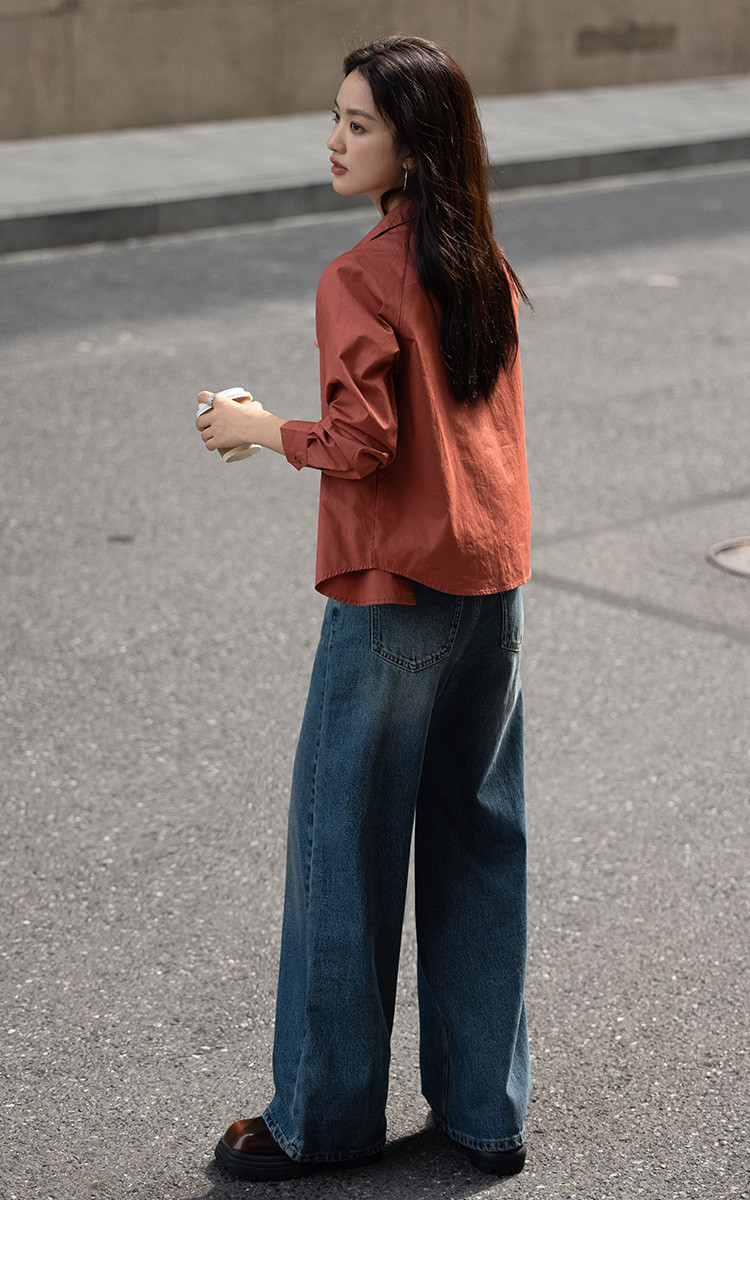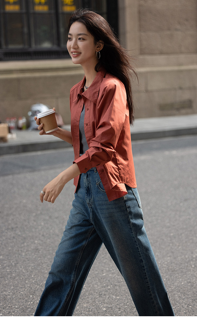 【复古红棕色衬衫】秋个性叠领造型日常慵懒感宽松上衣 657154