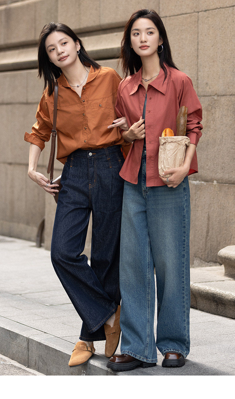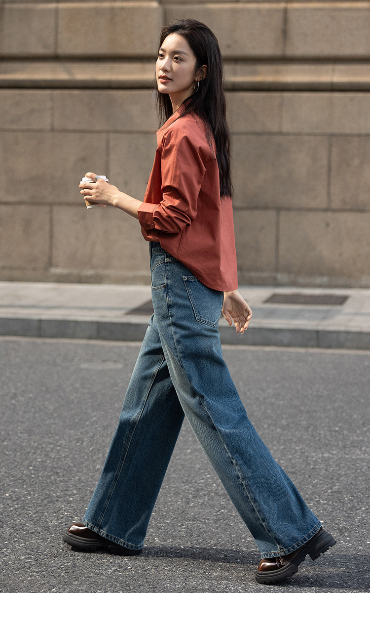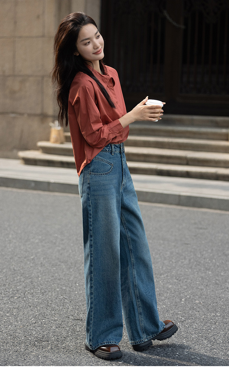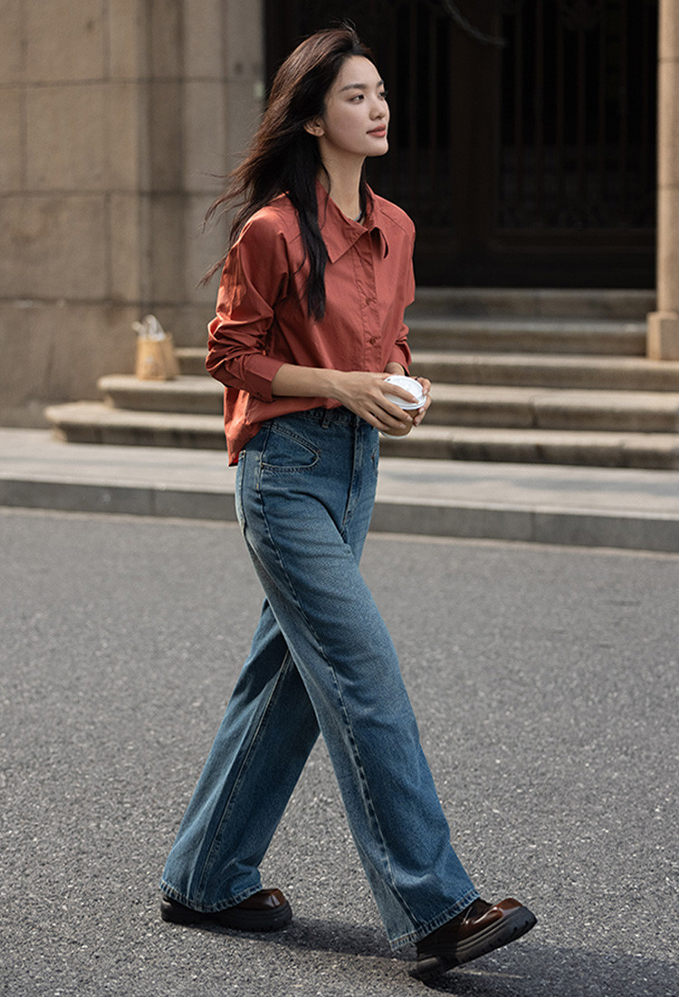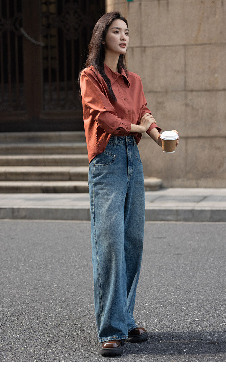 【复古红棕色衬衫】秋个性叠领造型日常慵懒感宽松上衣 657154