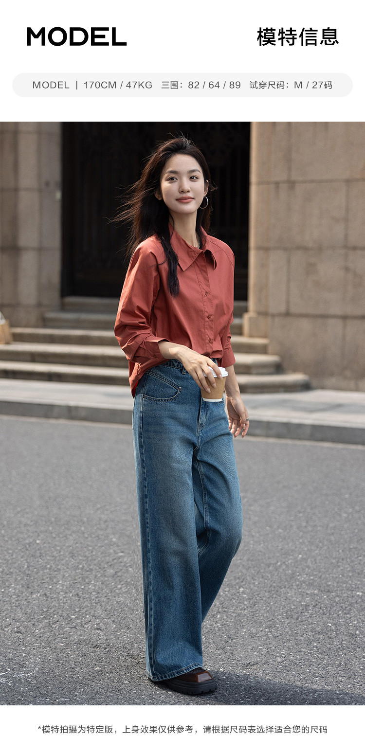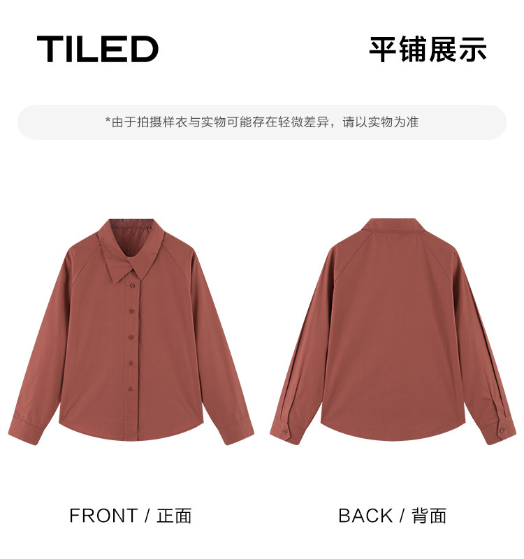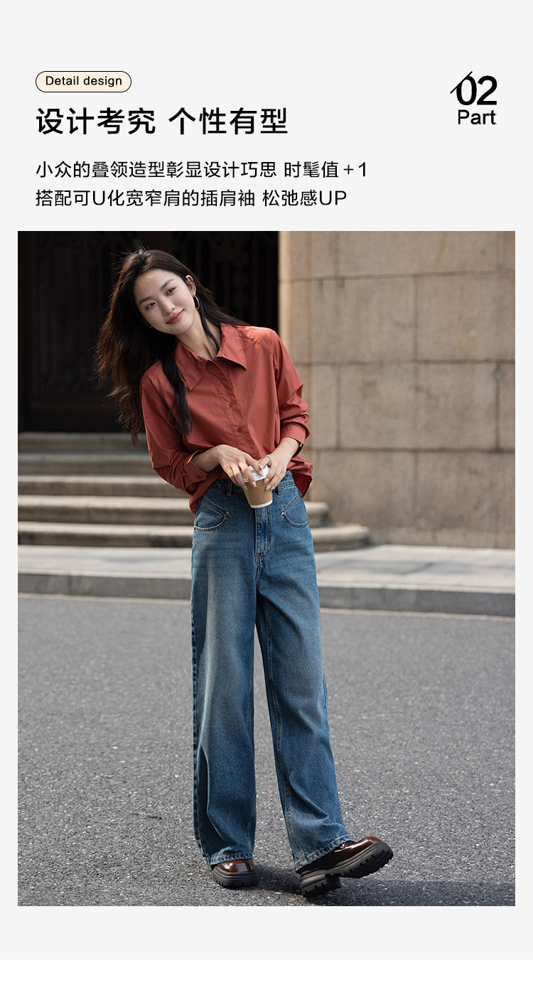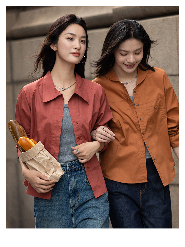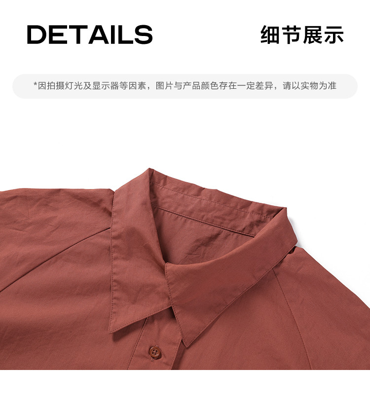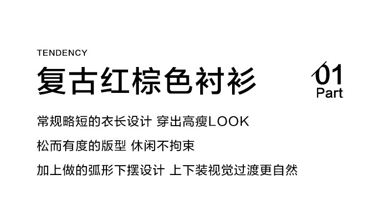 商品名称:【复古红棕色衬衫】秋个性叠领造型日常慵懒感宽松上衣 657154