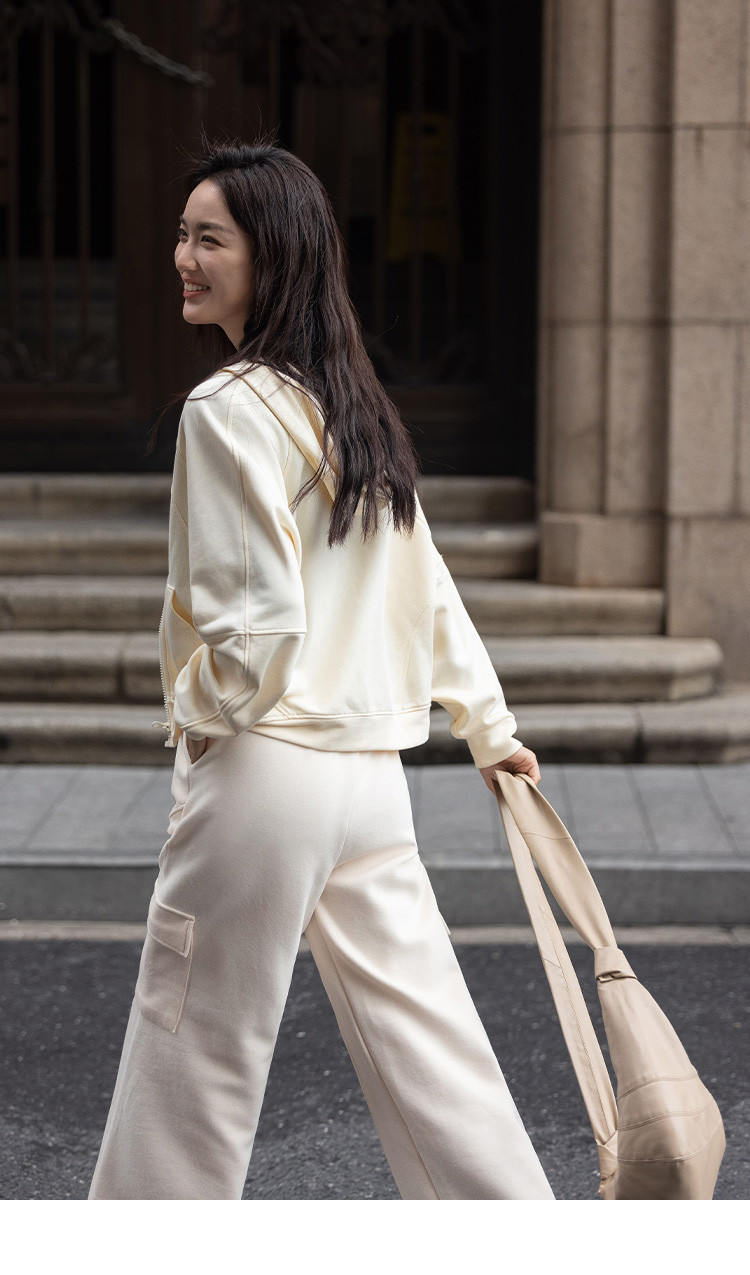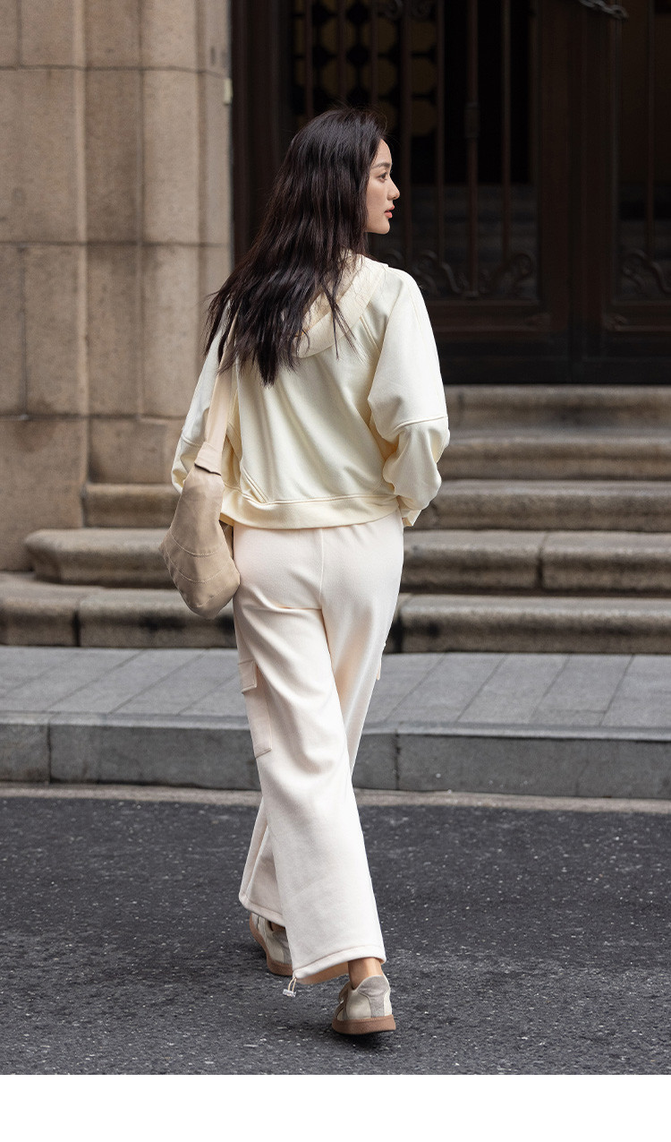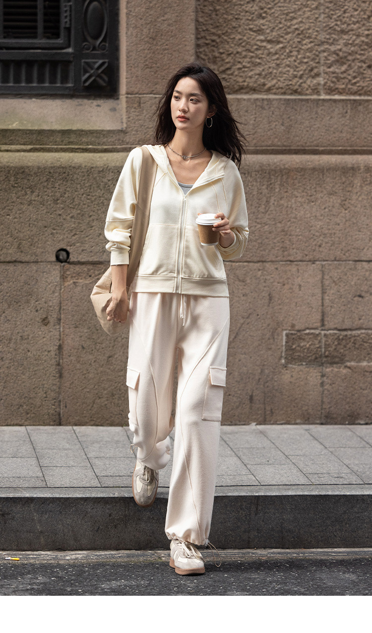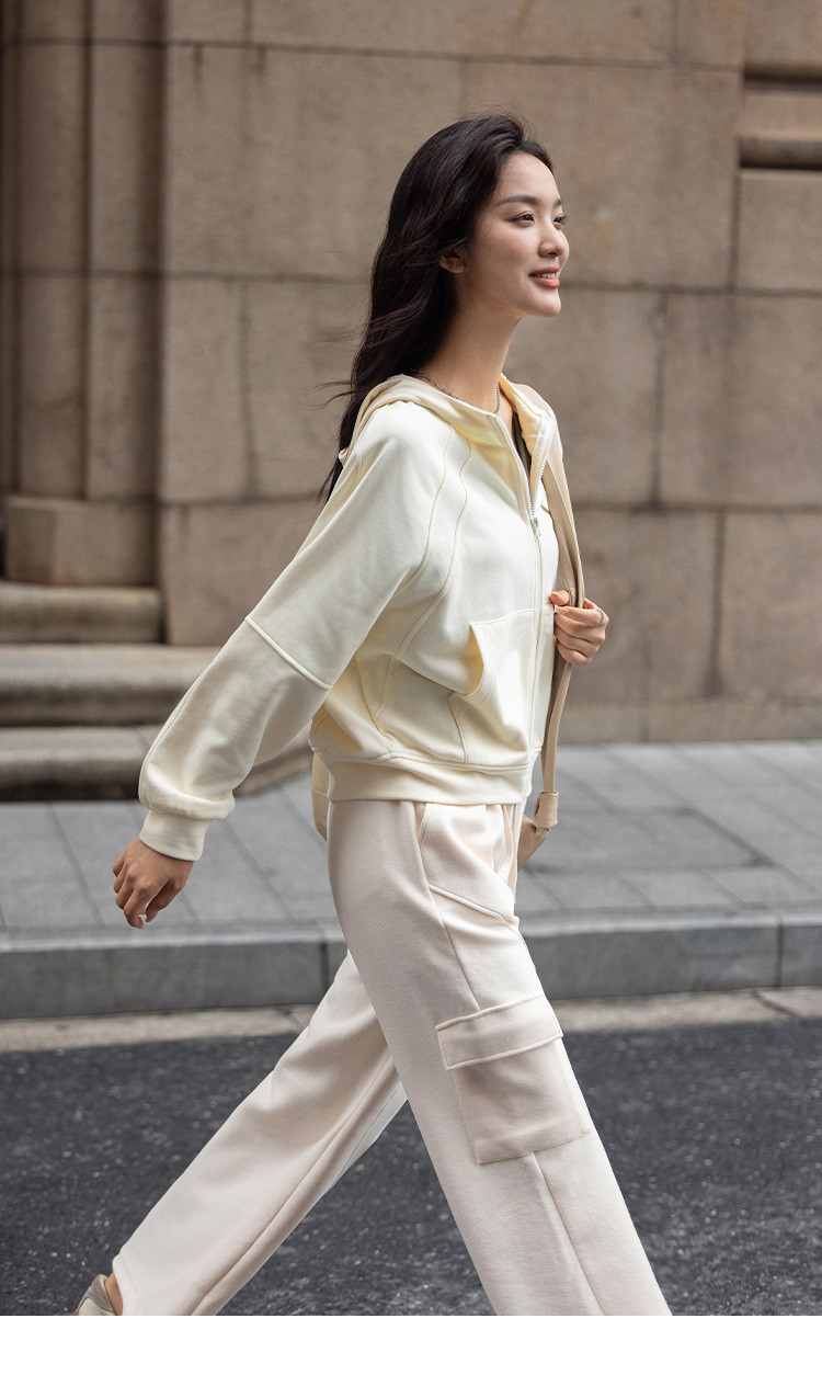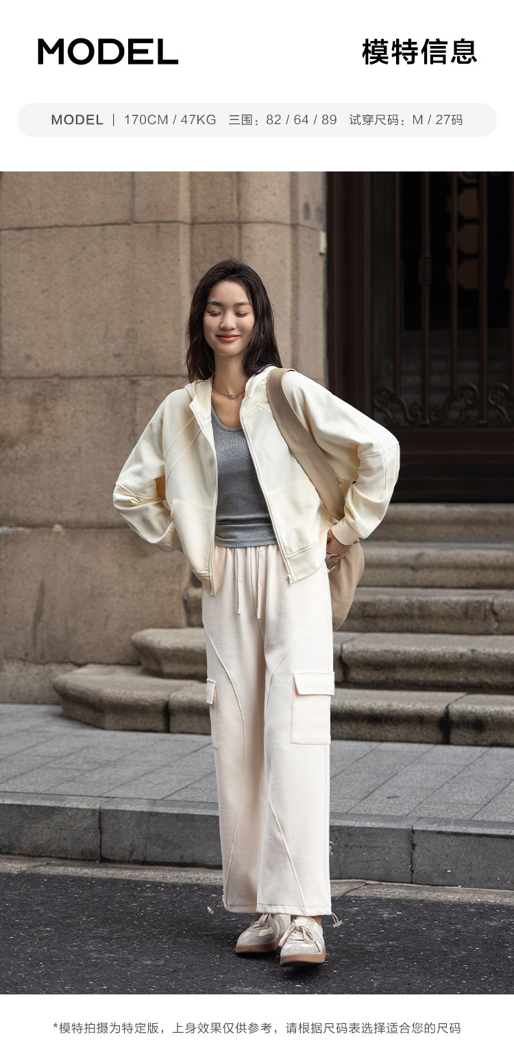 【米白色连帽外套】秋袋鼠大口袋日常旅游逛街长袖外套女 456194