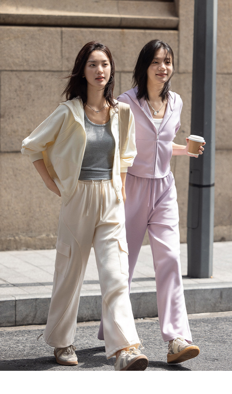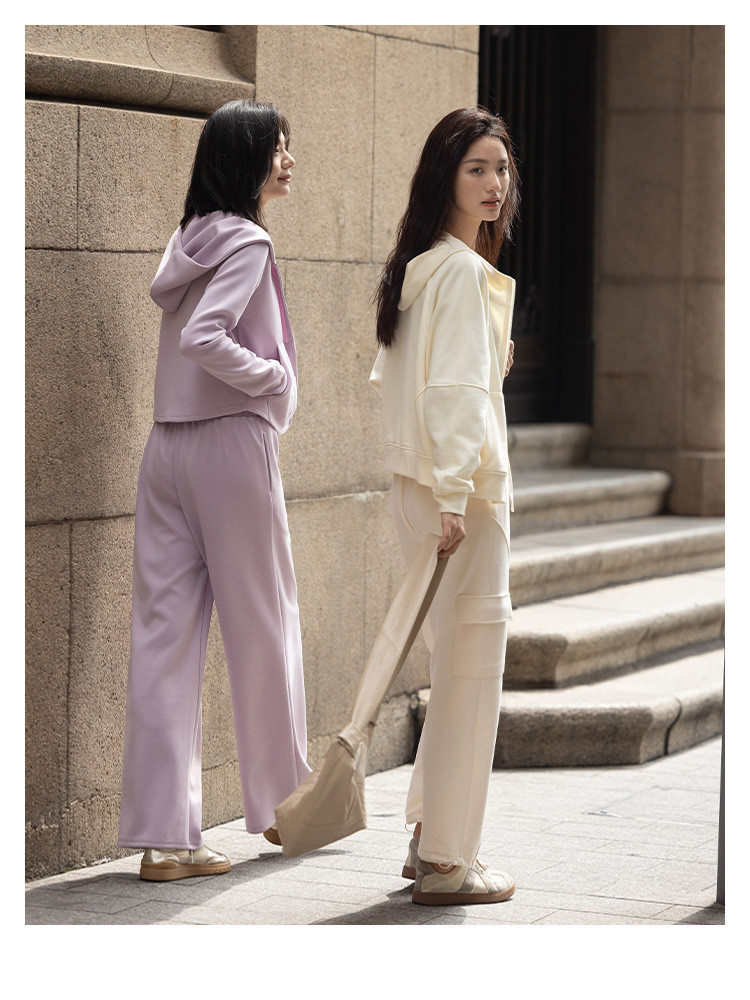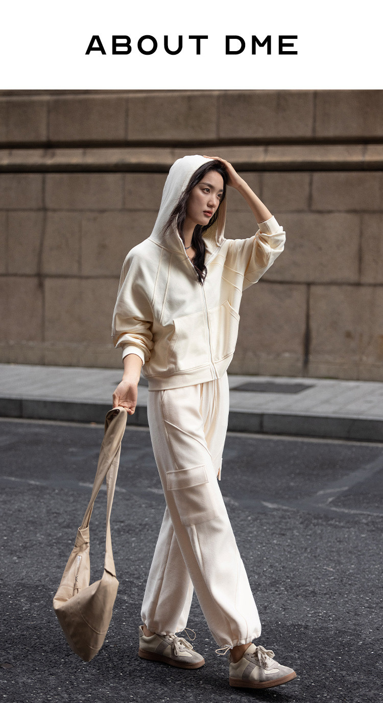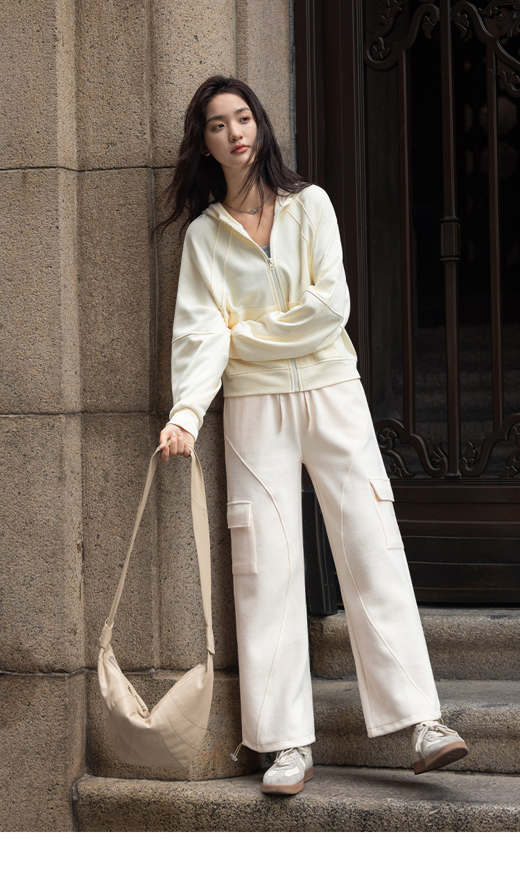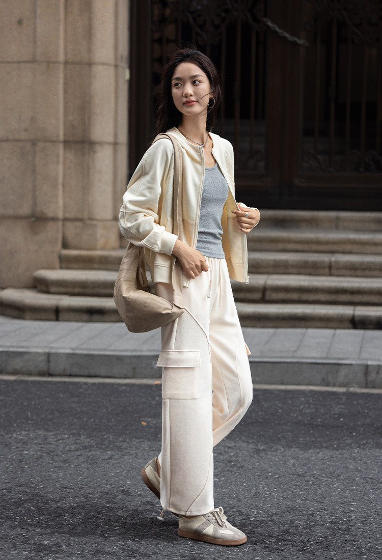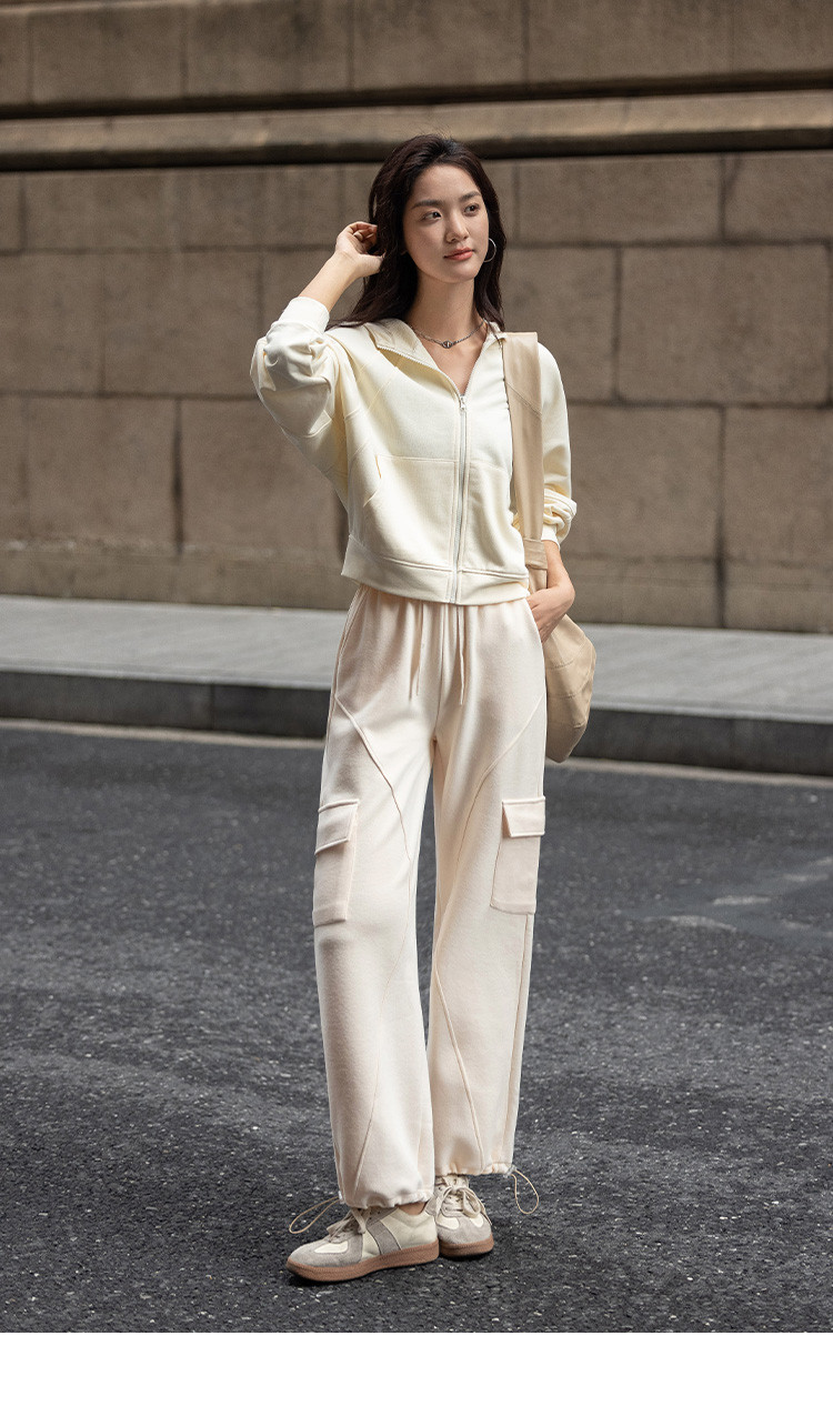 【米白色连帽外套】秋袋鼠大口袋日常旅游逛街长袖外套女 456194