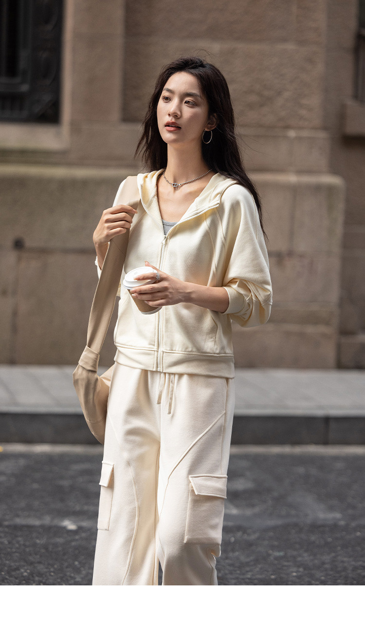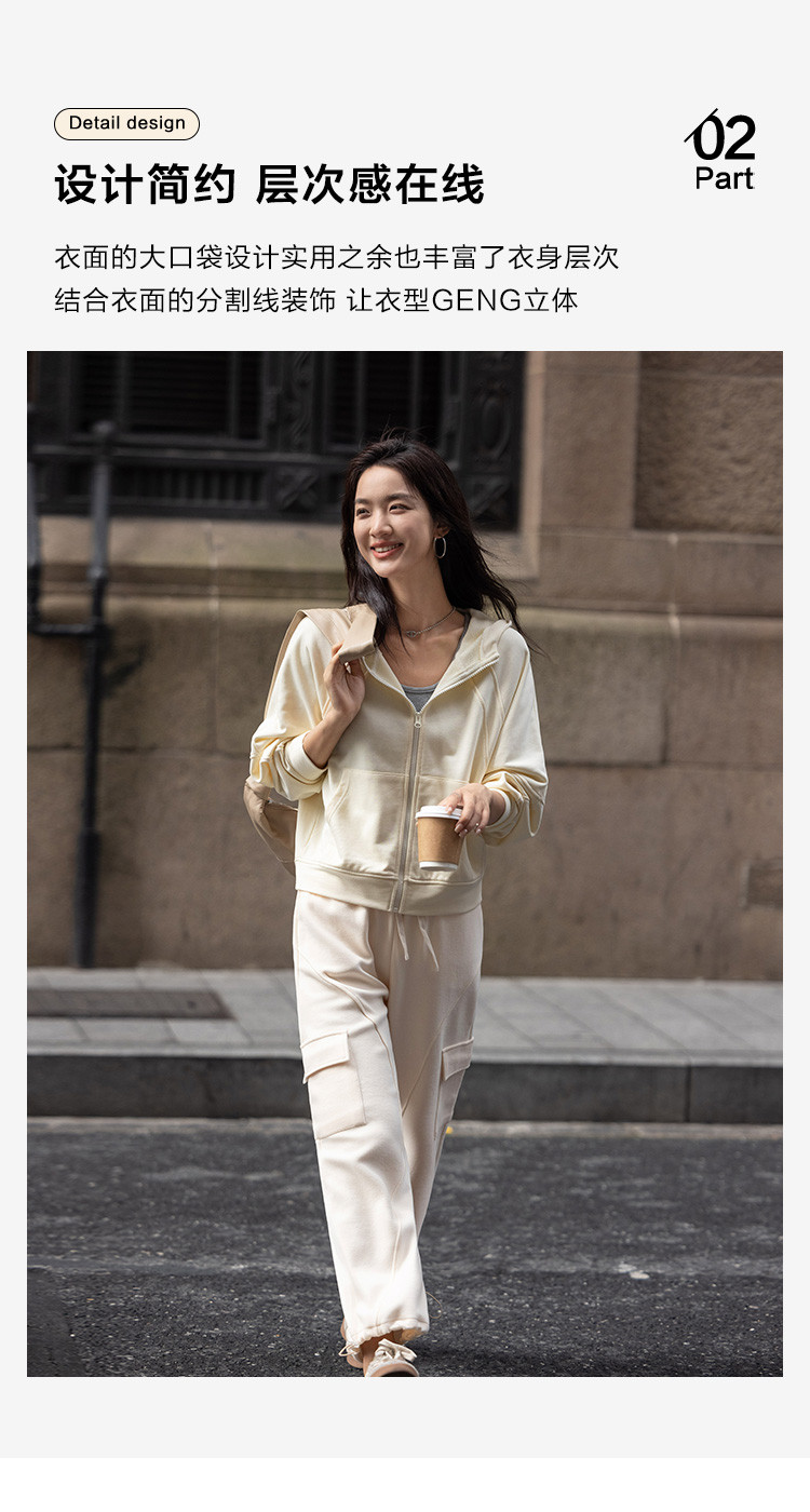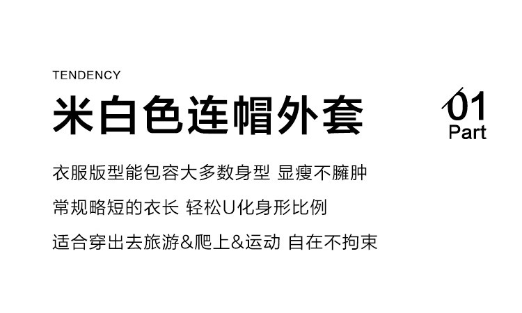 商品名称:【米白色连帽外套】秋袋鼠大口袋日常旅游逛街长袖外套女 456194