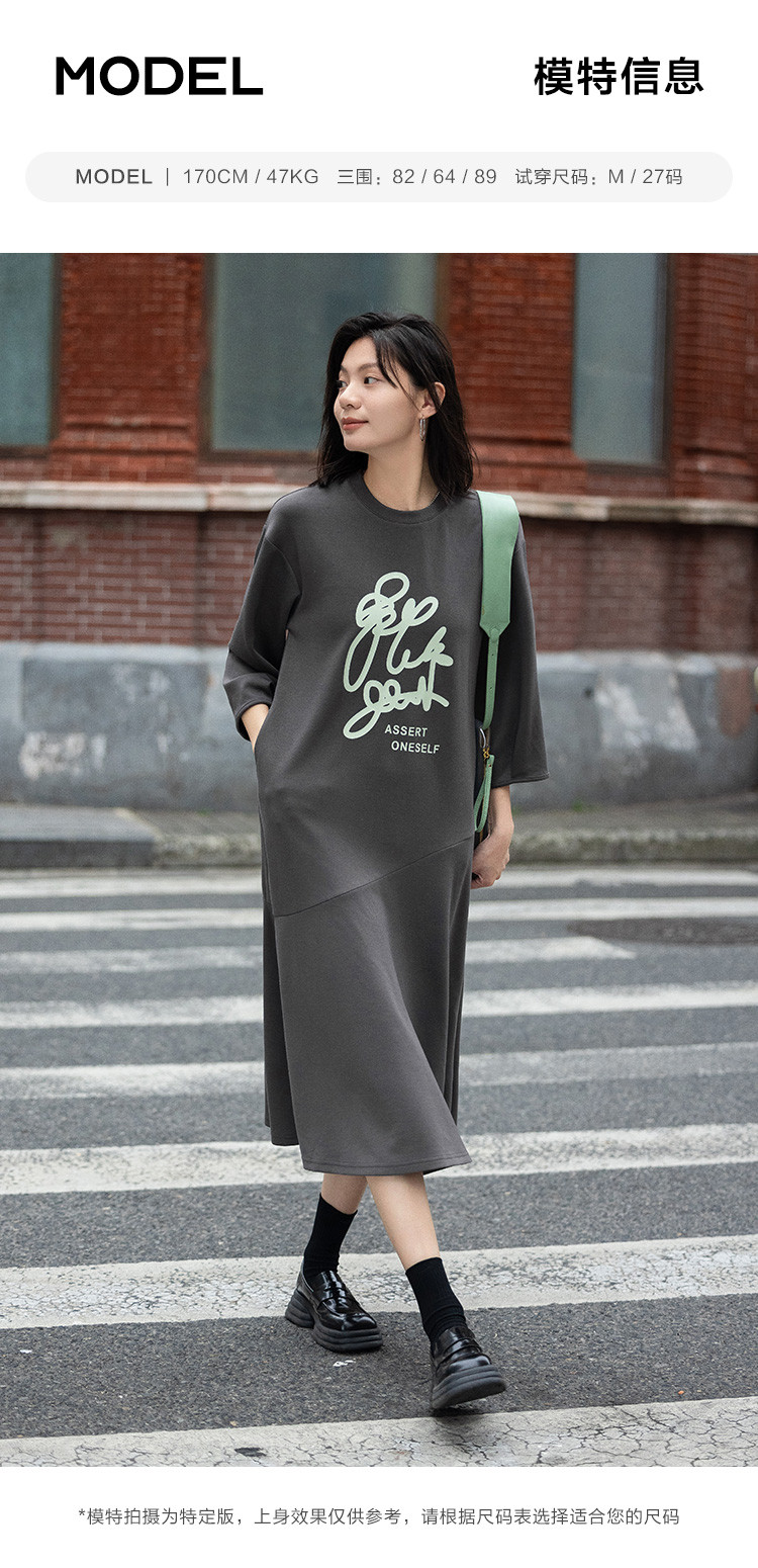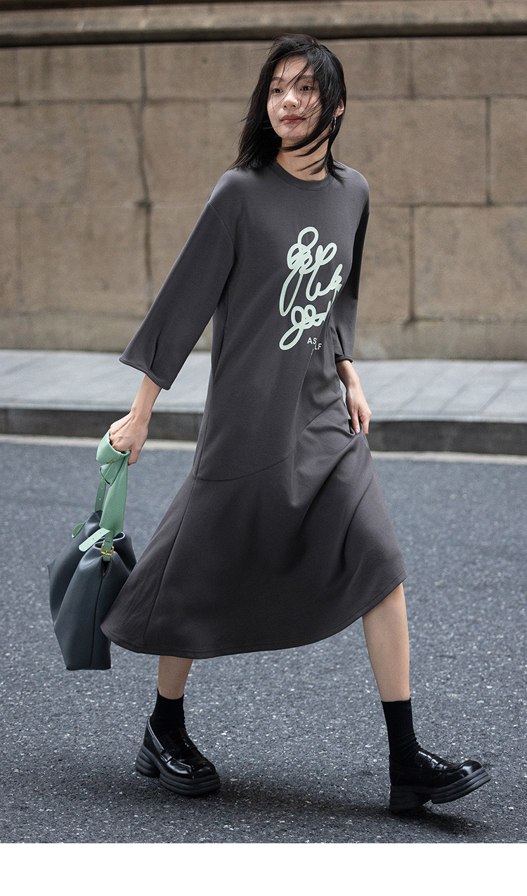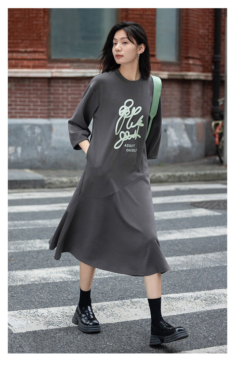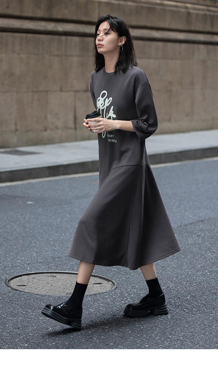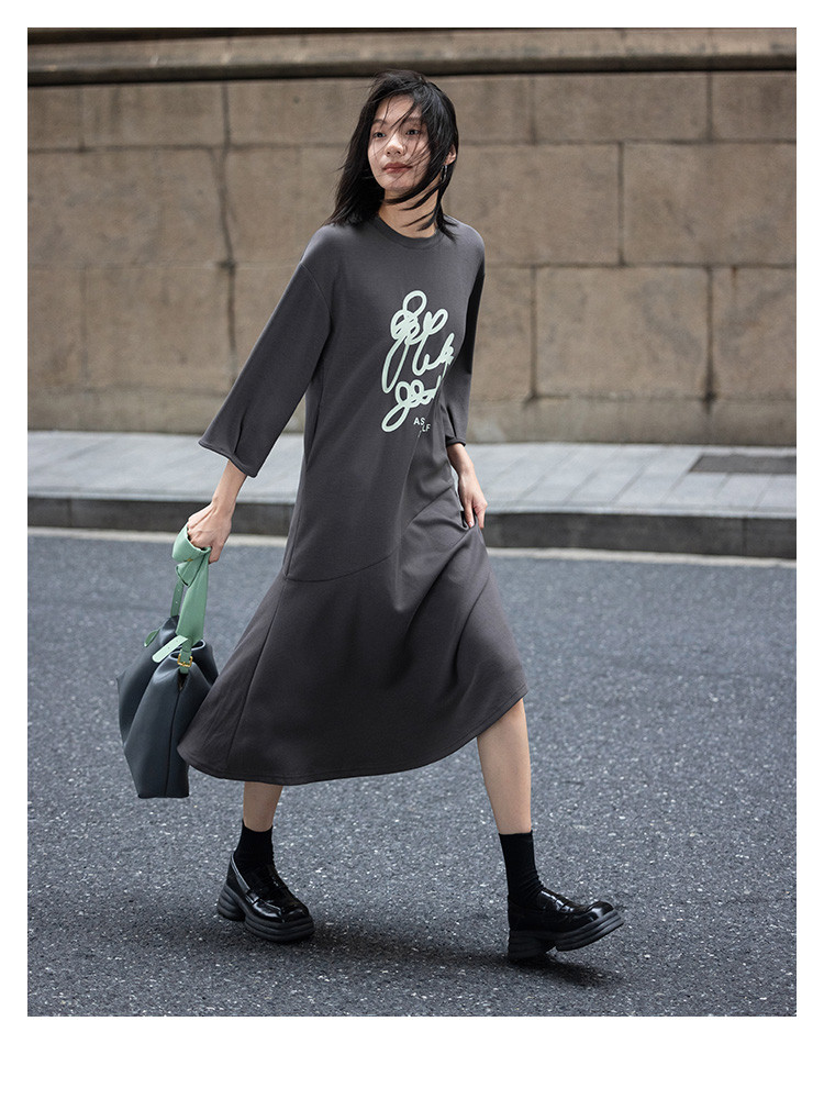 【印花涂鸦卫衣裙】秋慵懒出街圆领七分袖松弛休闲连衣裙 894722