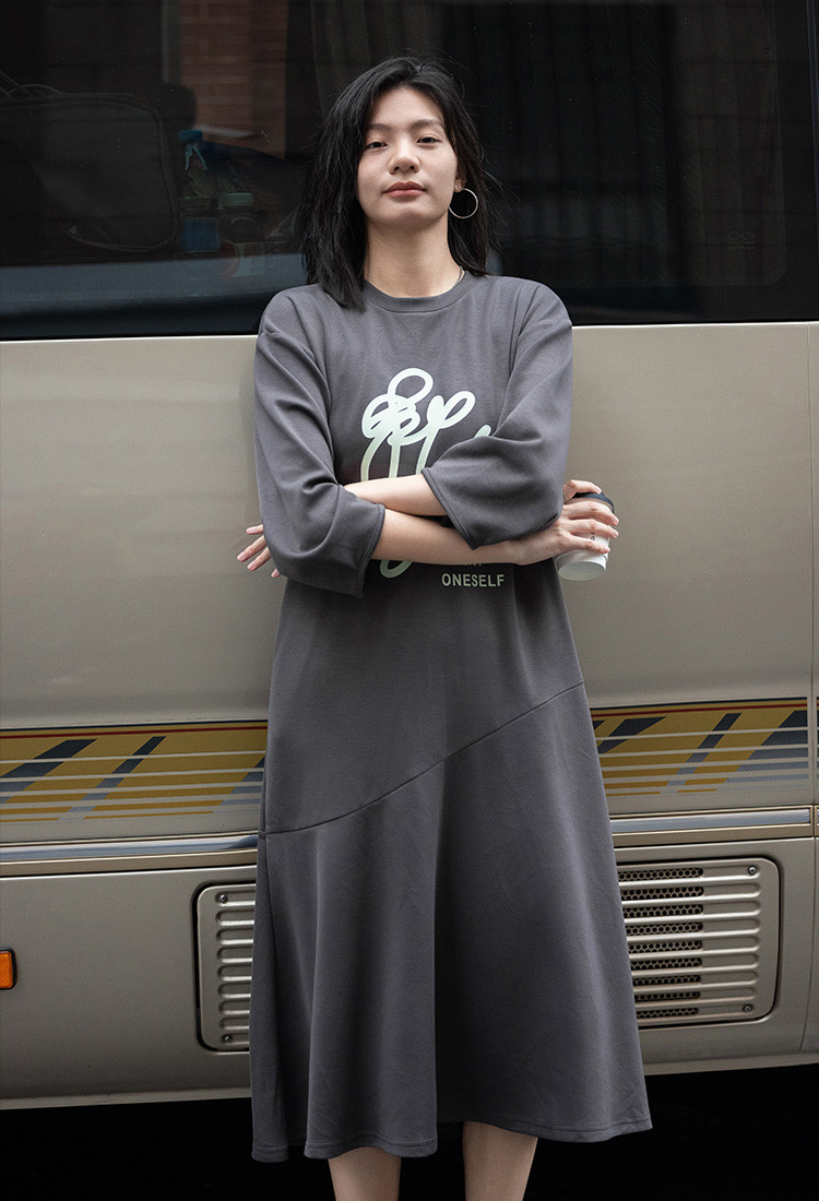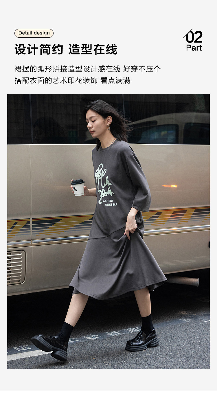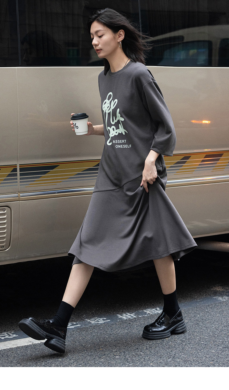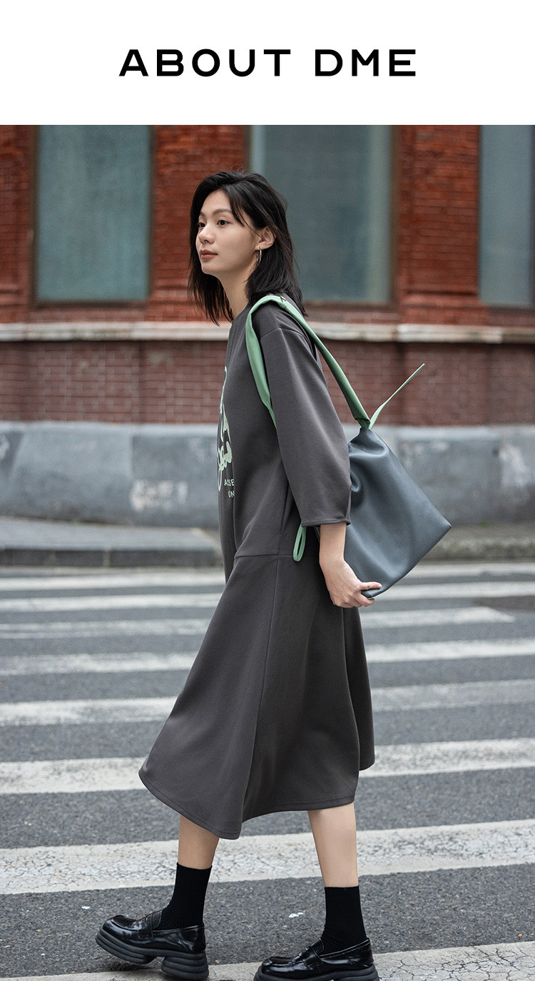 【印花涂鸦卫衣裙】秋慵懒出街圆领七分袖松弛休闲连衣裙 894722