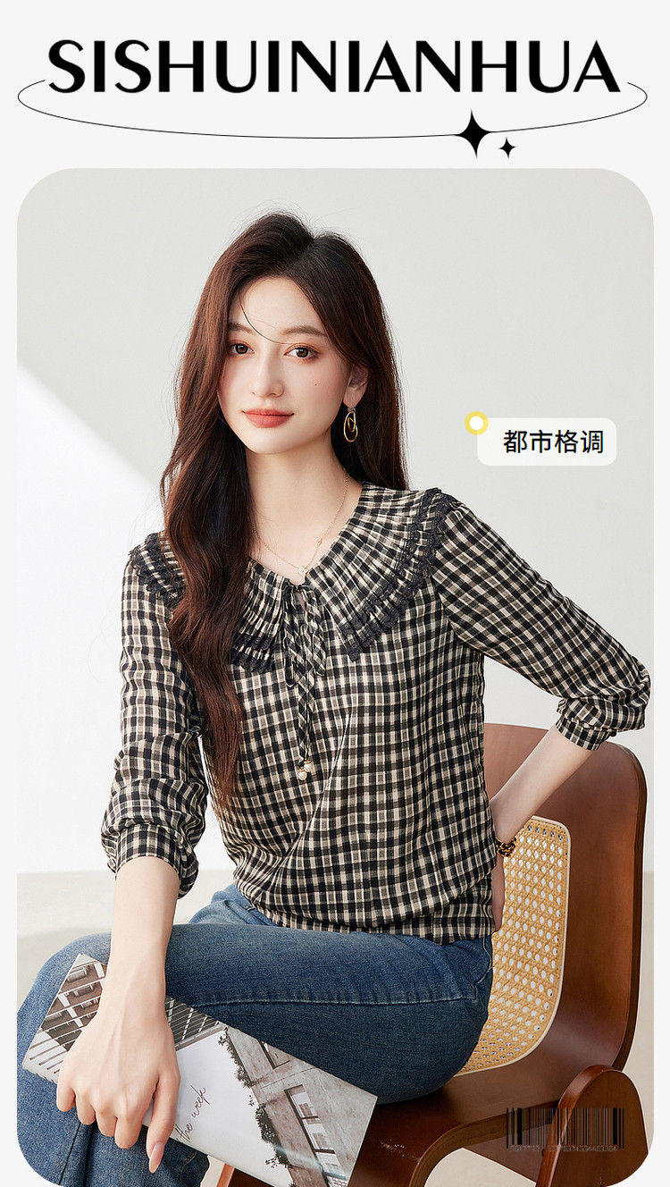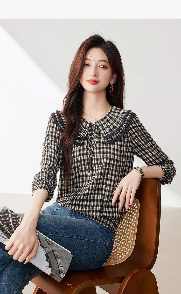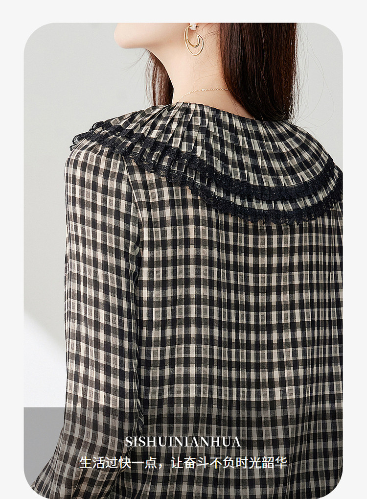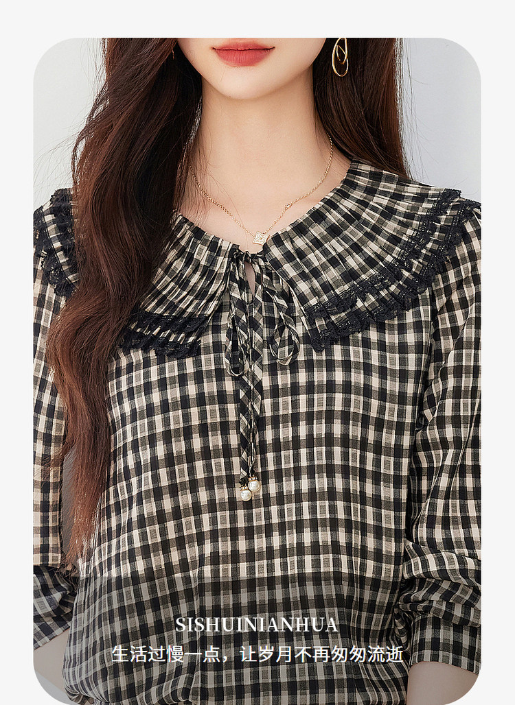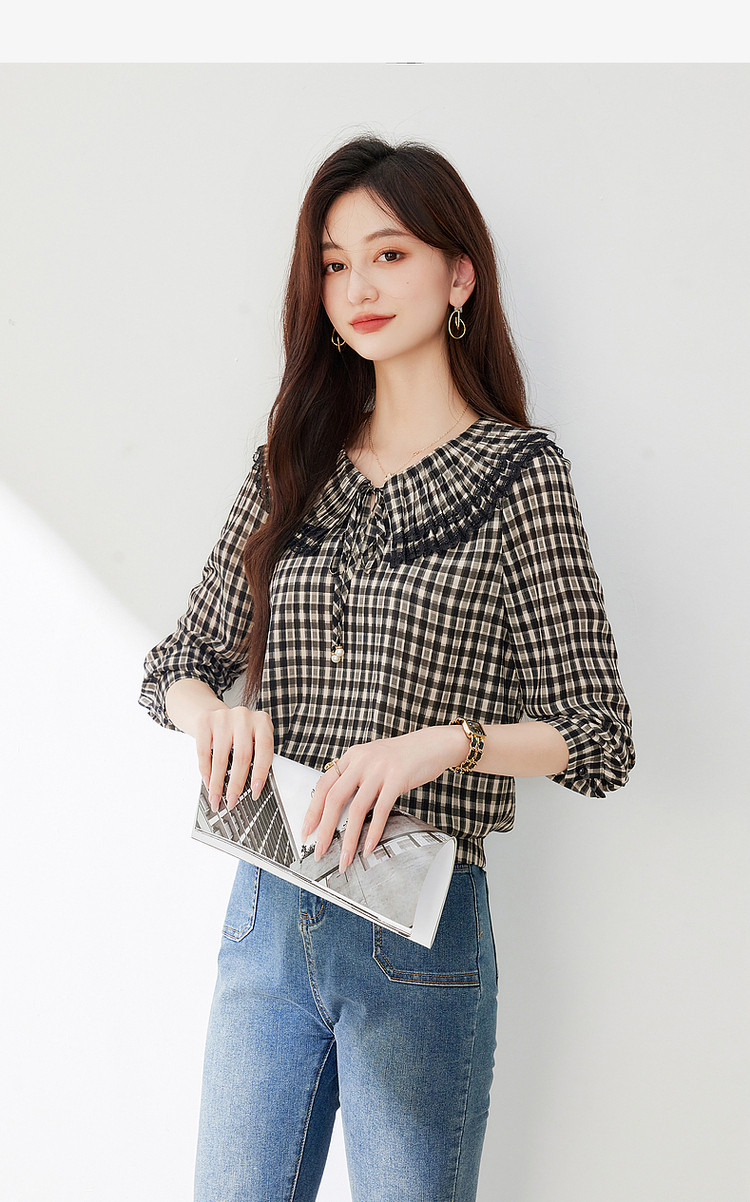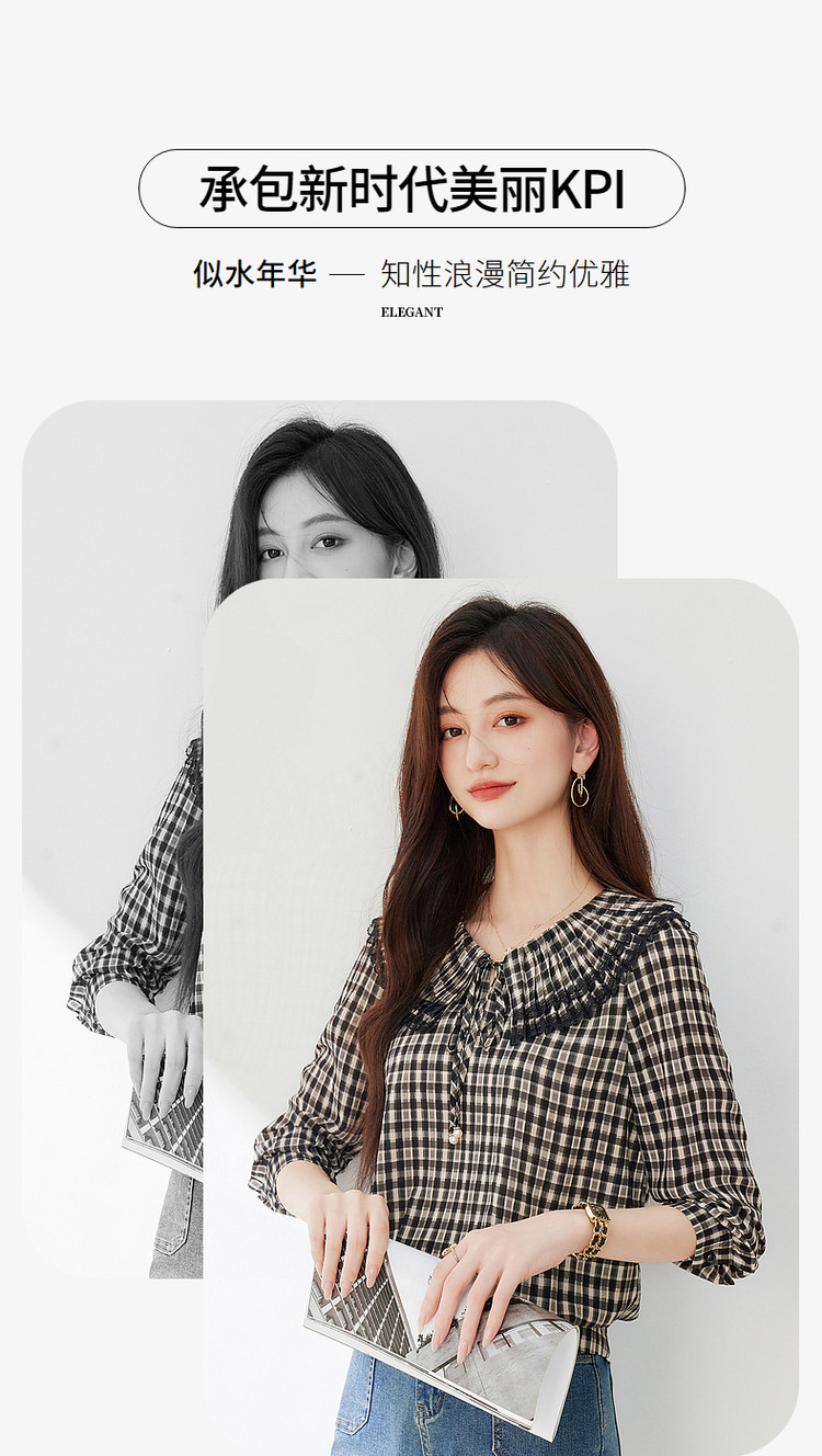 商品名称:年春复古格子衬衫优雅宽松遮肉好搭上衣衬衫 322968