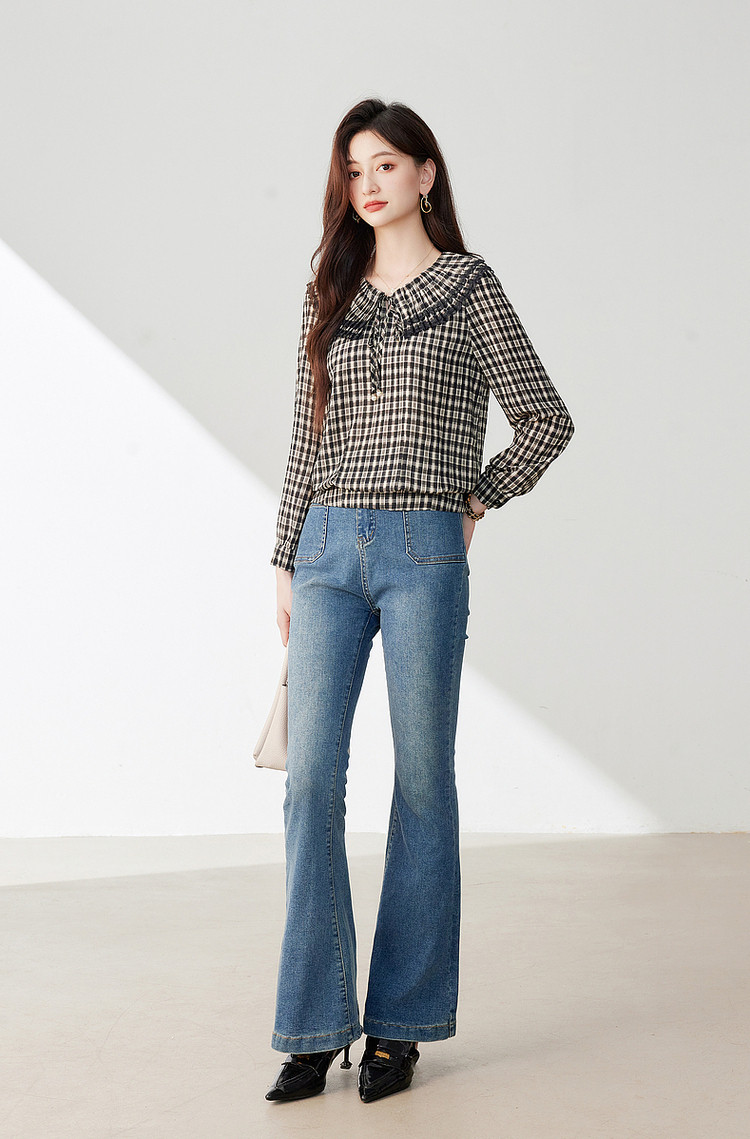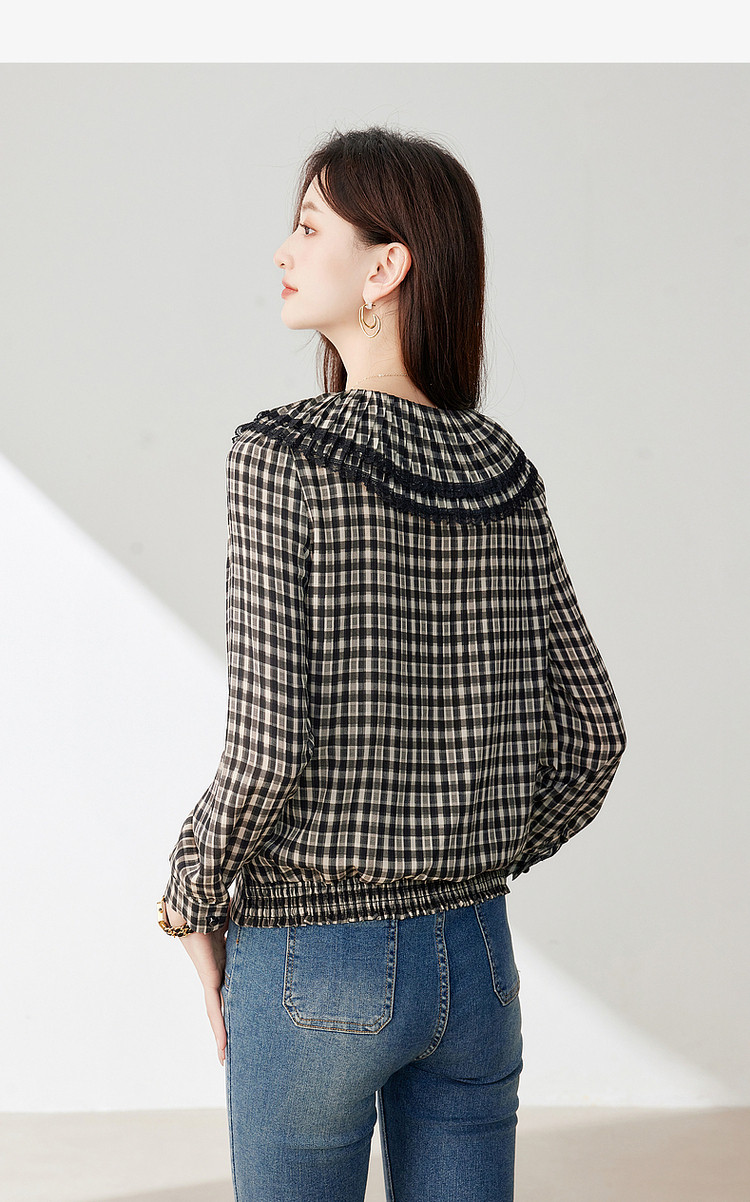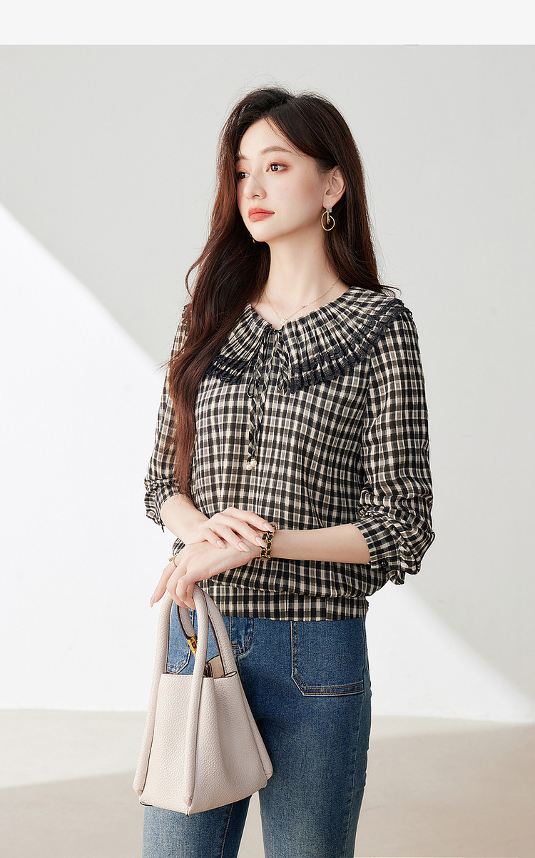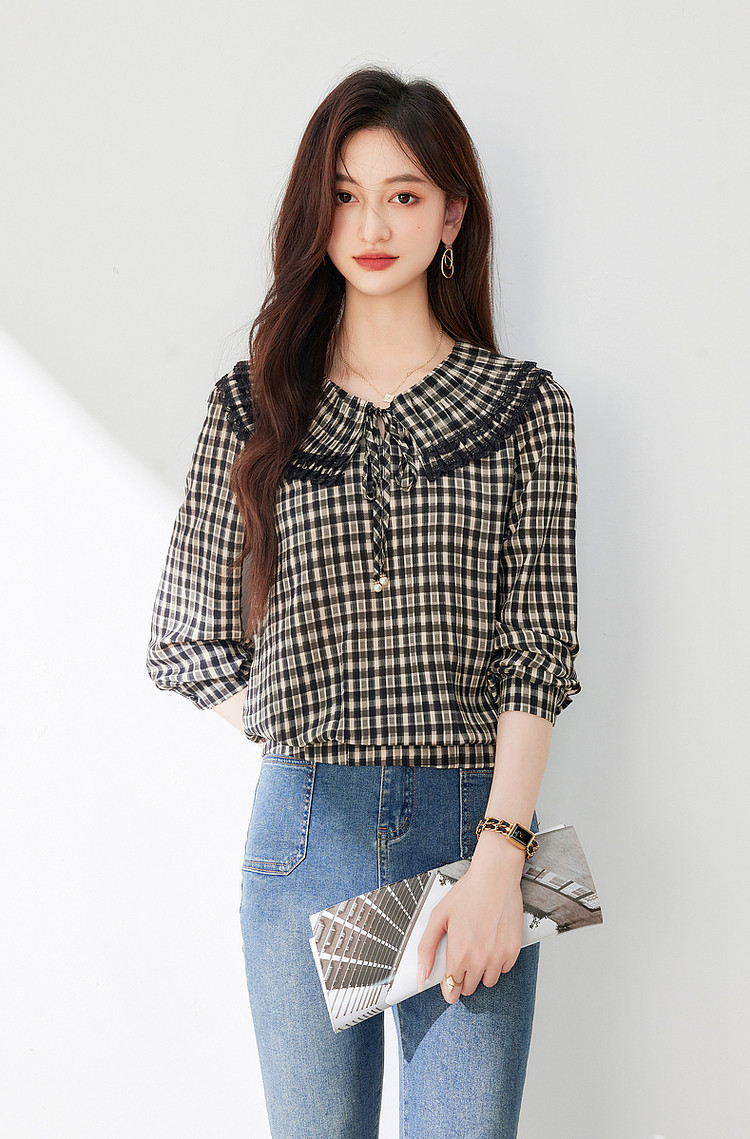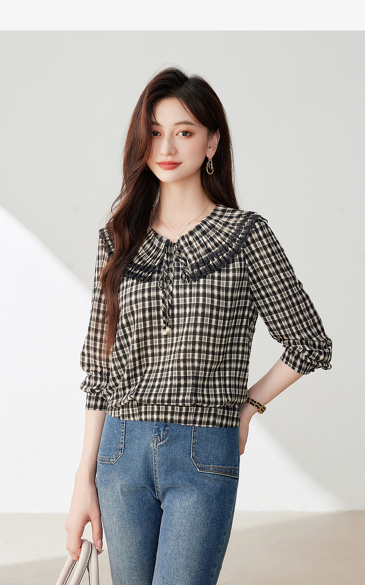 商品名称:年春复古格子衬衫优雅宽松遮肉好搭上衣衬衫 322968