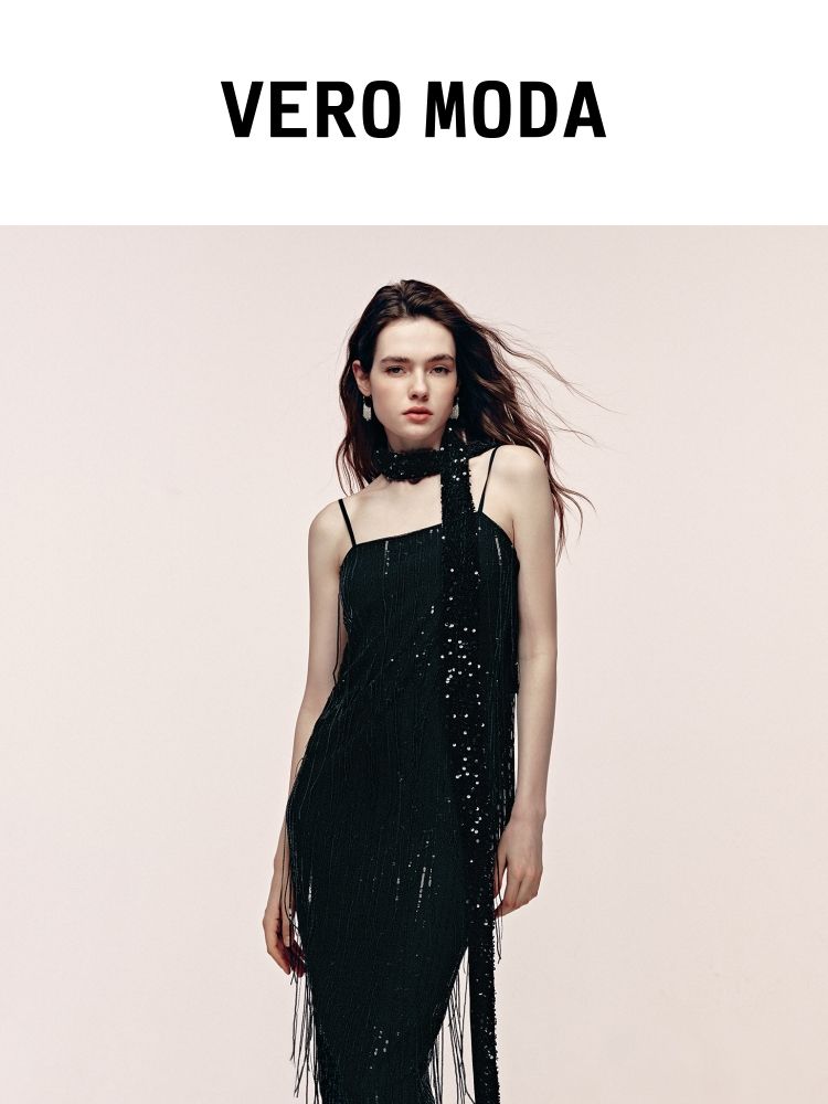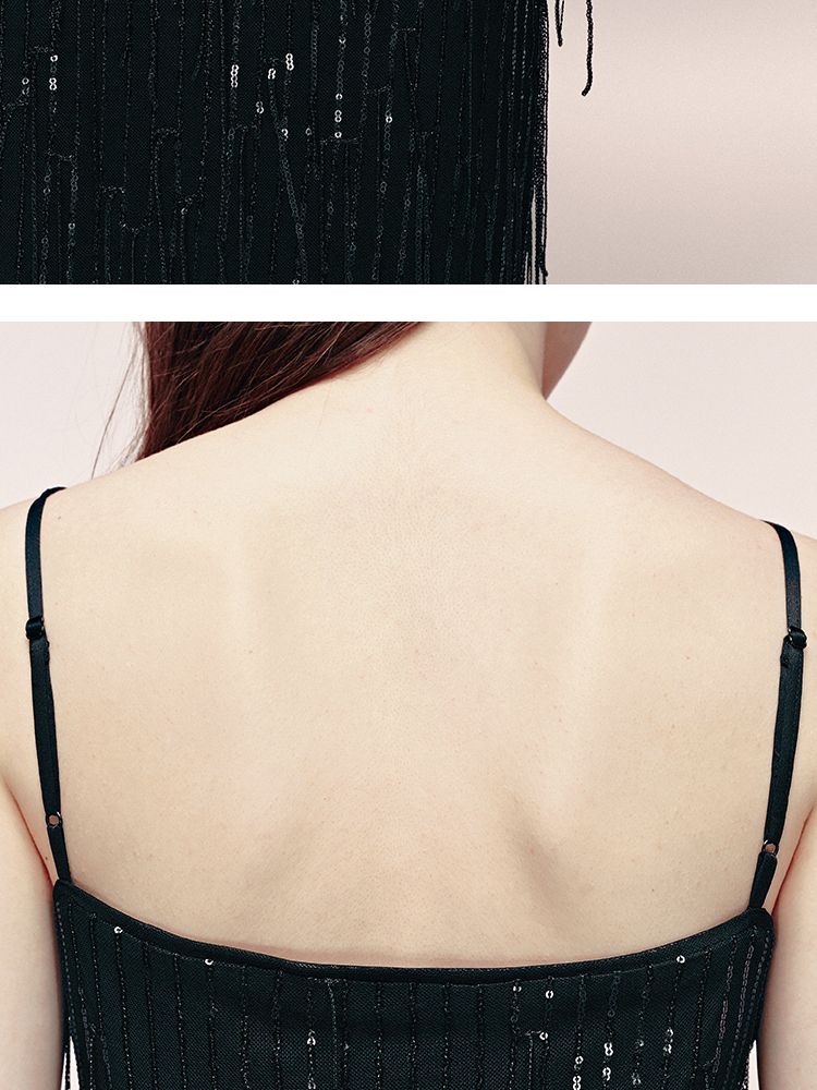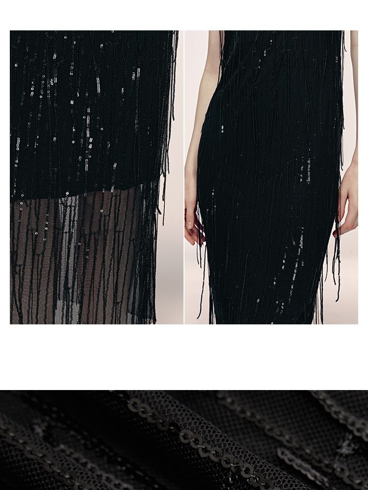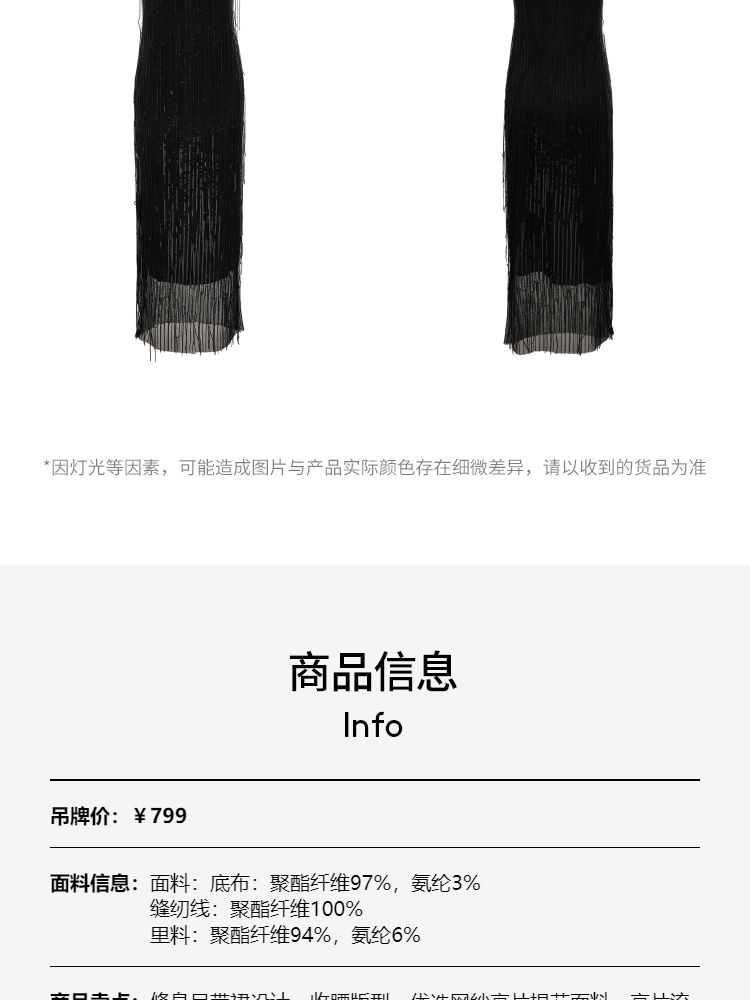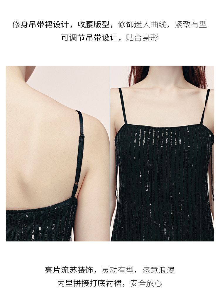 商品名称:【收腰版型】连衣裙女流苏亮片H版长裙内衬晚宴约会焦点修身 479121