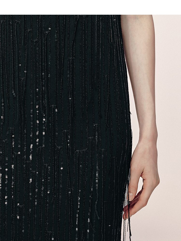 【收腰版型】连衣裙女流苏亮片H版长裙内衬晚宴约会焦点修身 479121