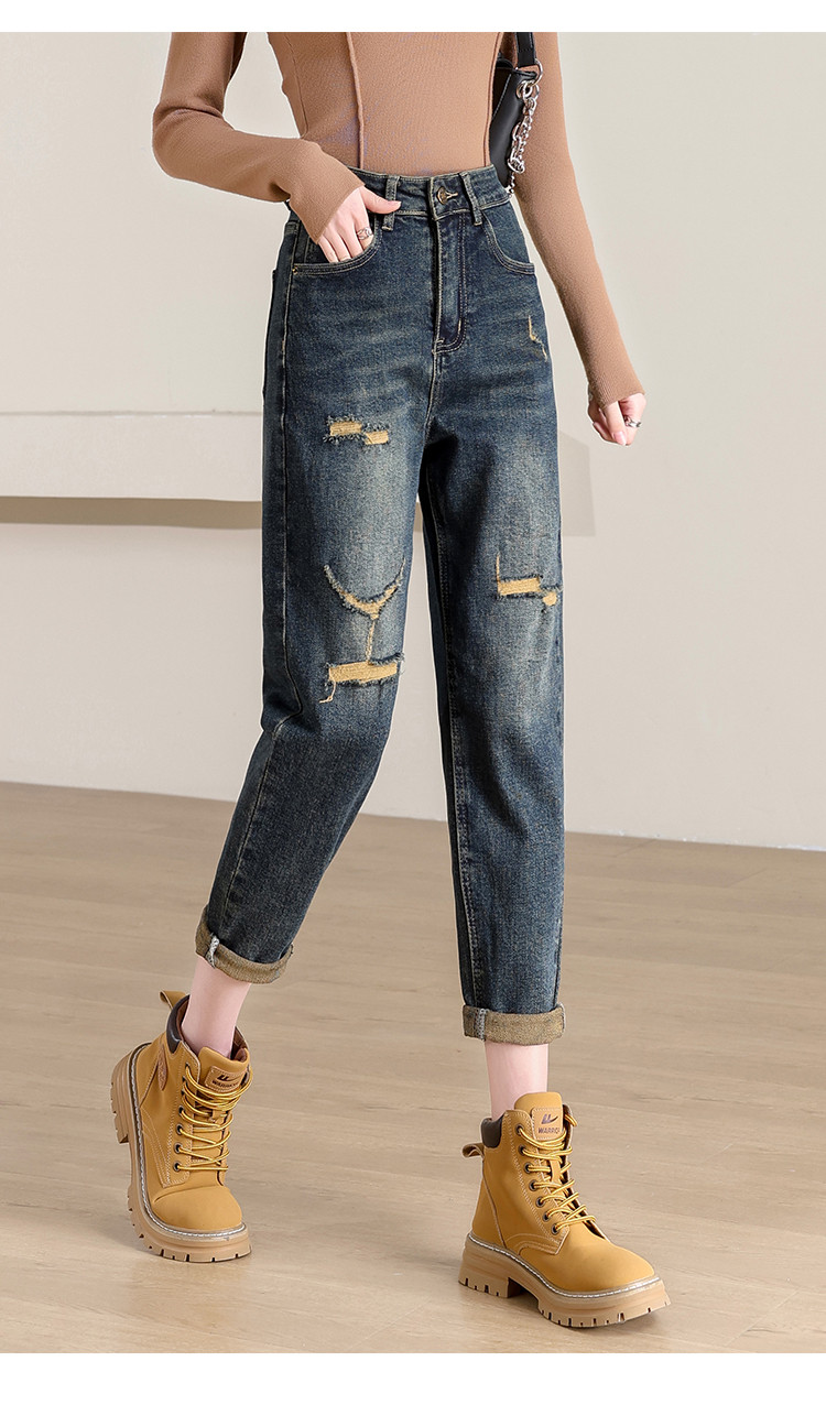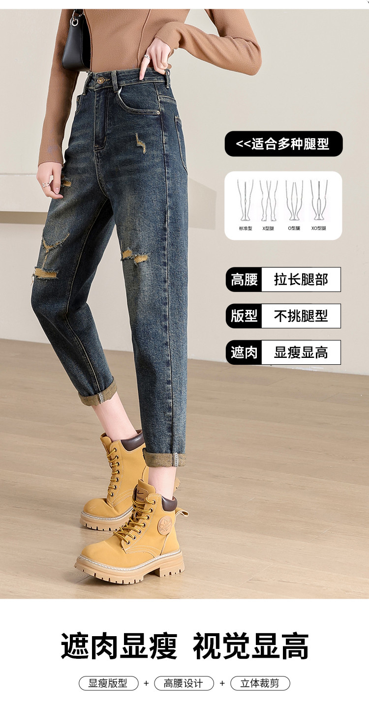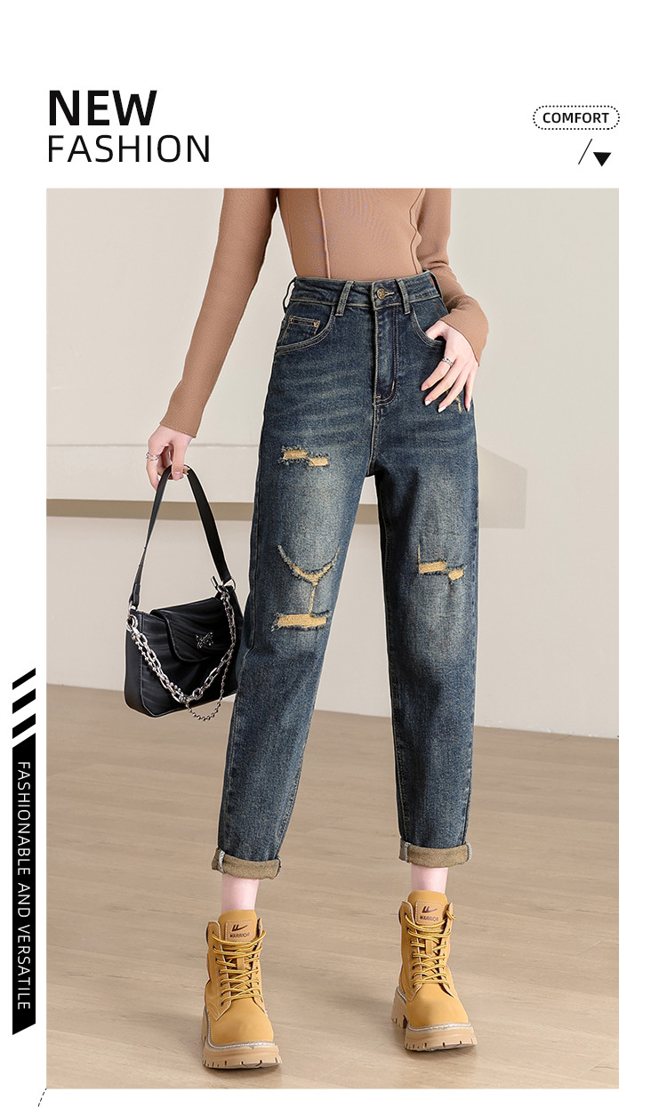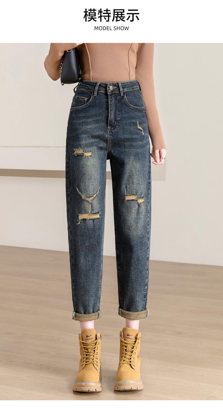 商品名称:【破洞萝卜裤】高腰复古老爹牛仔裤女时尚简约百搭宽松哈伦裤女 238040