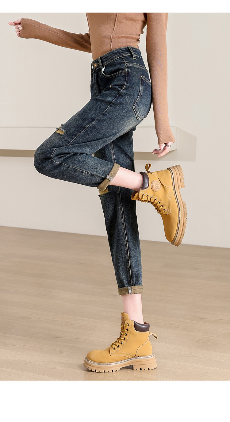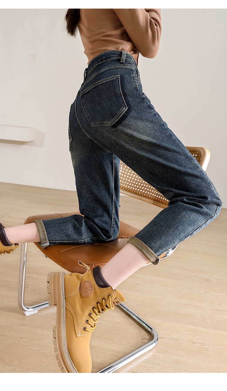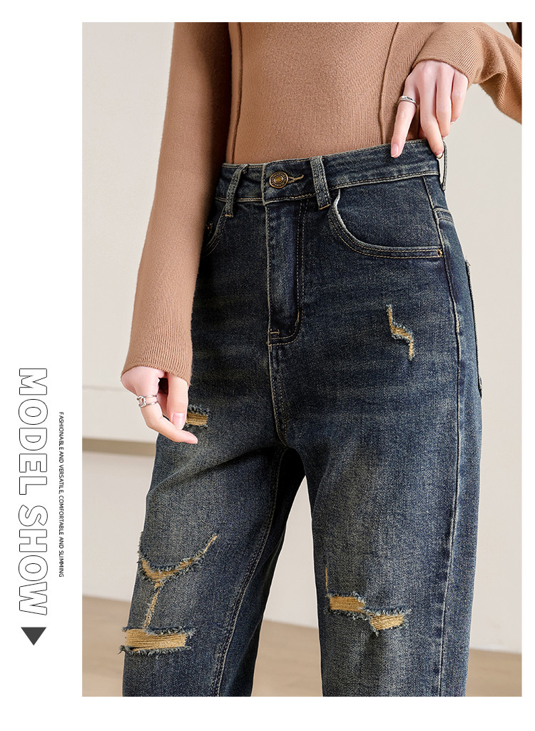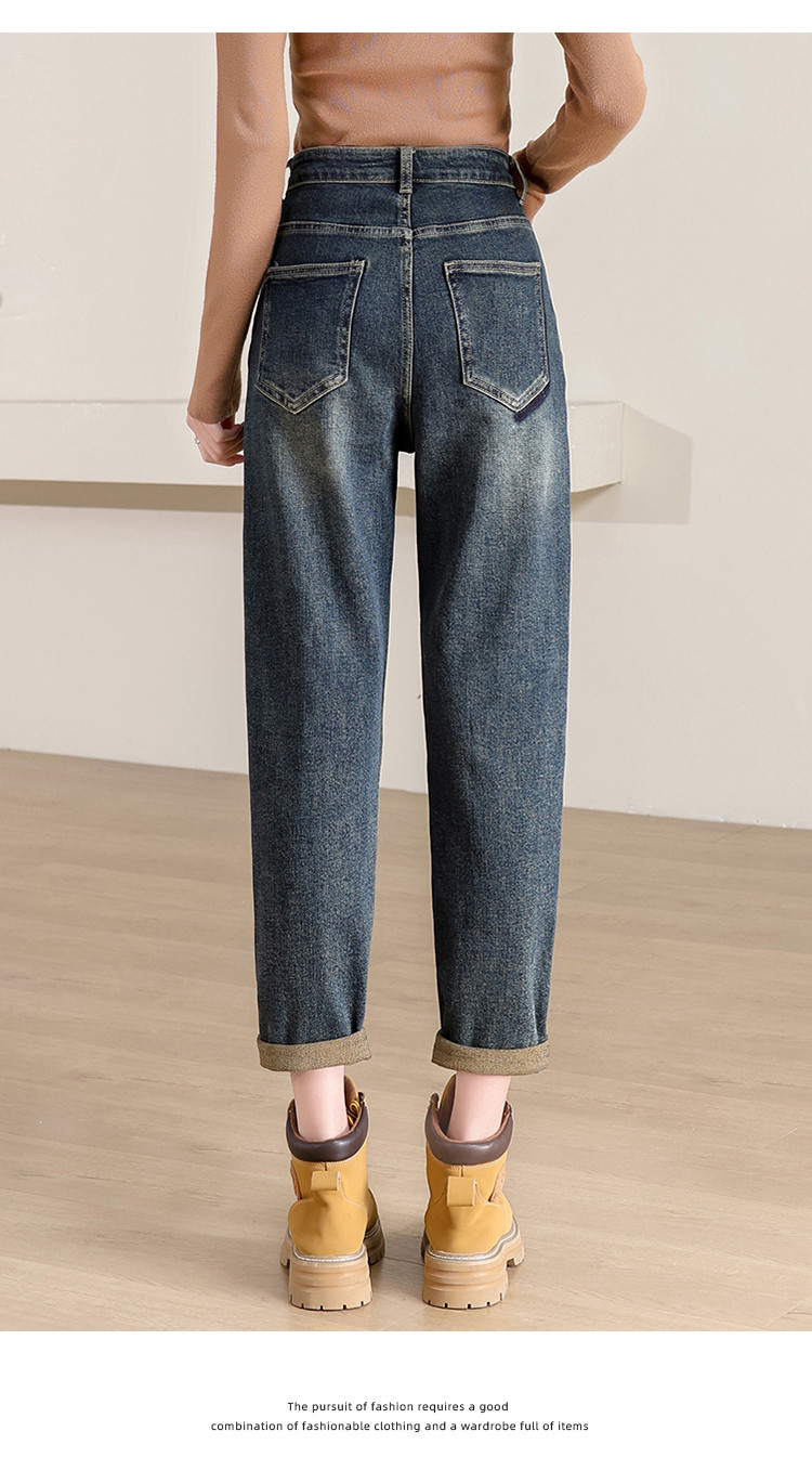 商品名称:【破洞萝卜裤】高腰复古老爹牛仔裤女时尚简约百搭宽松哈伦裤女 238040