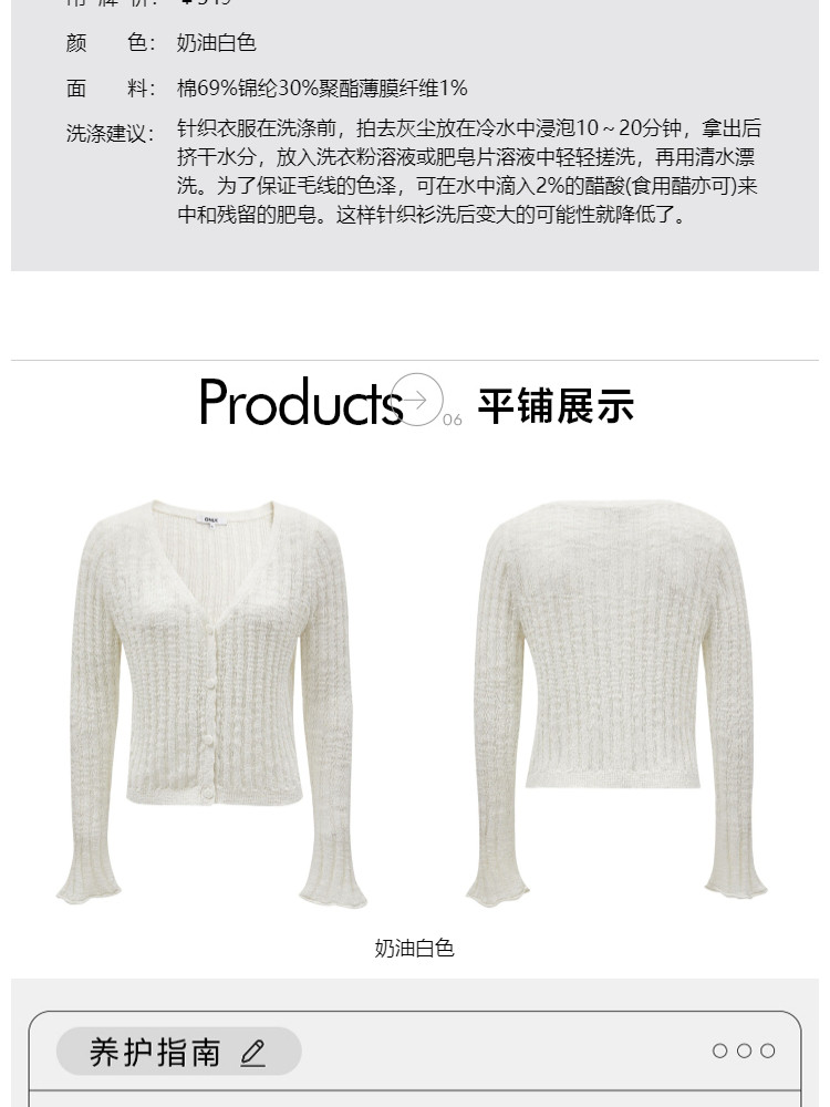 商品名称:【镂空开衫】春季镂空V领开衫长袖针织衫女 992346