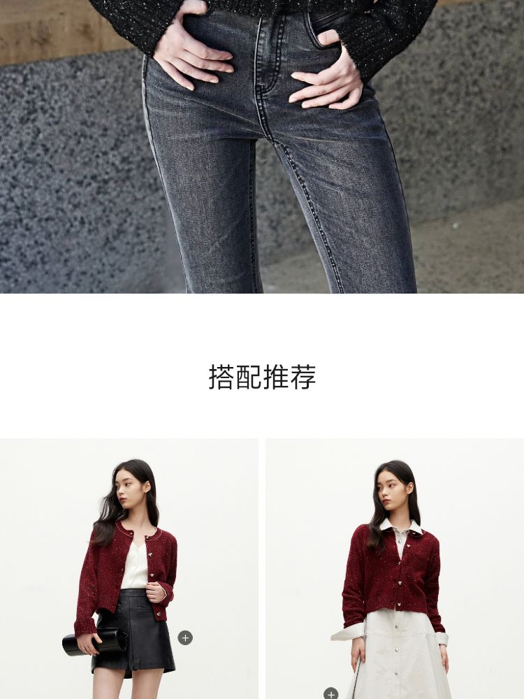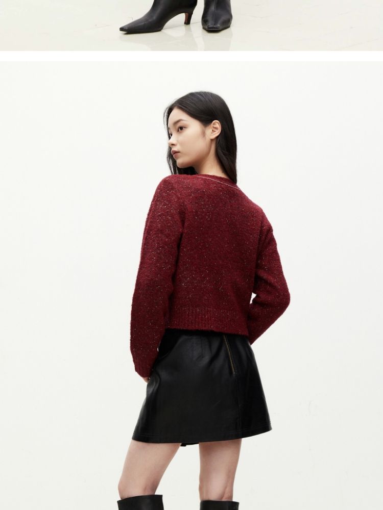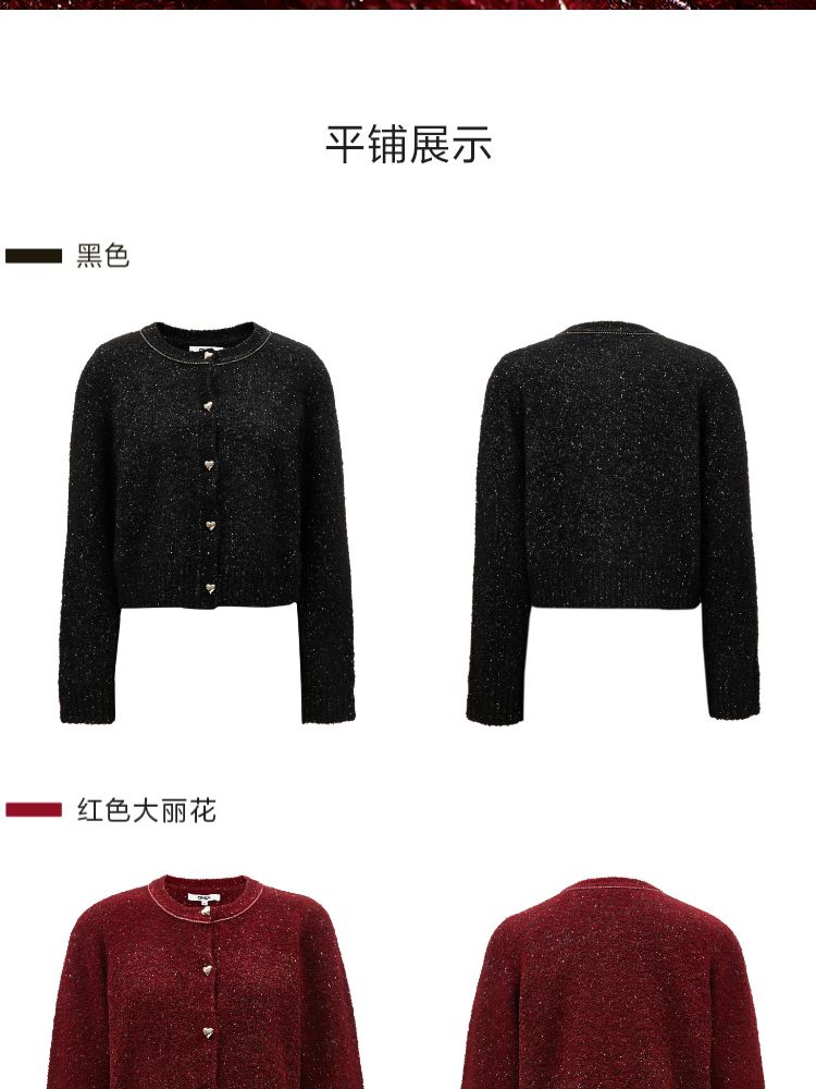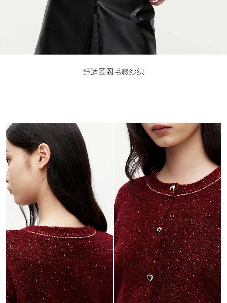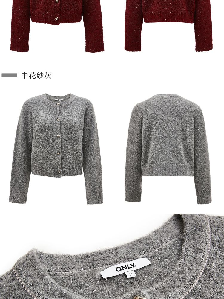 商品名称:【领口重工亮钻】春季简约时尚短款圆领开衫含羊毛针织衫女 756762