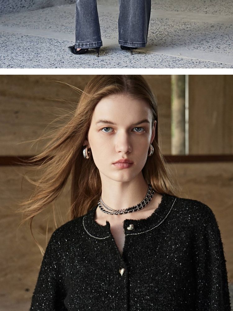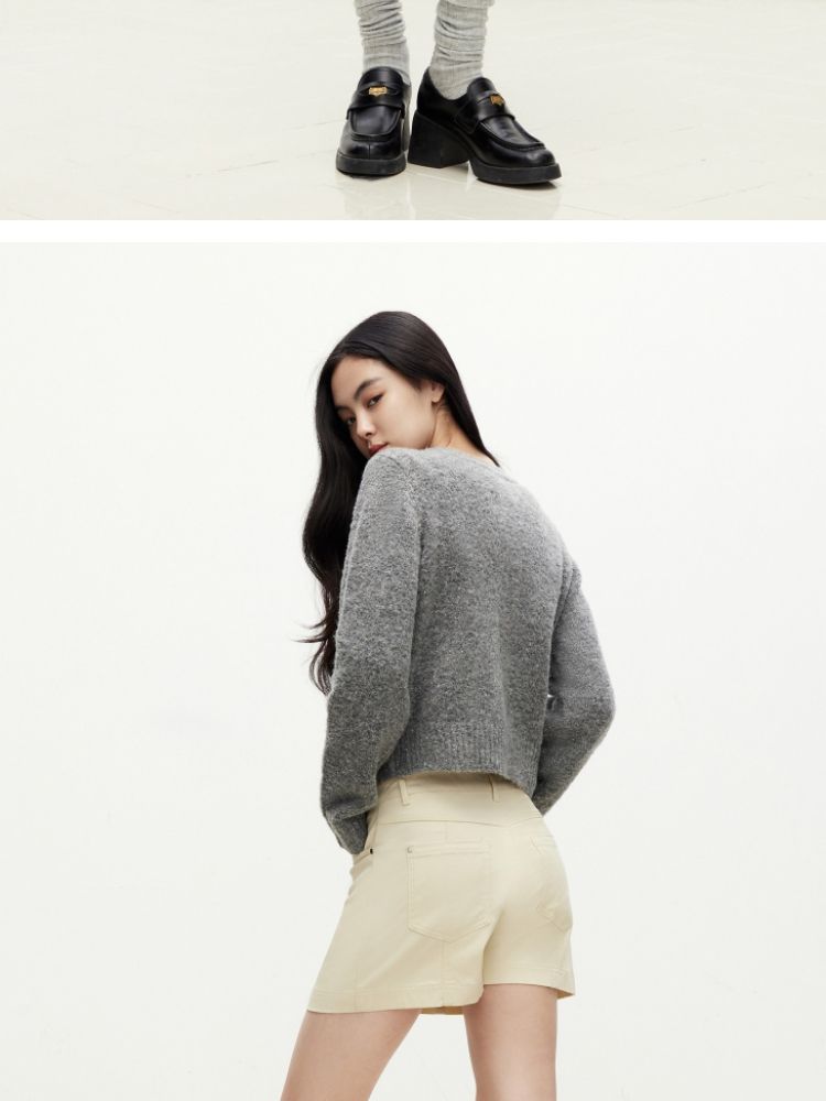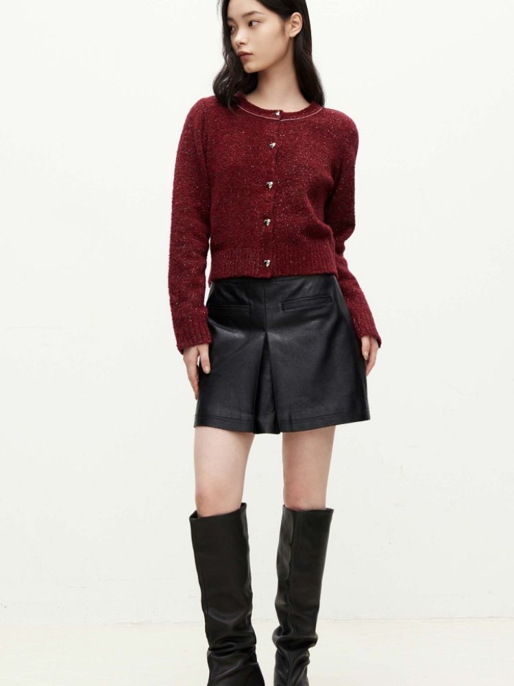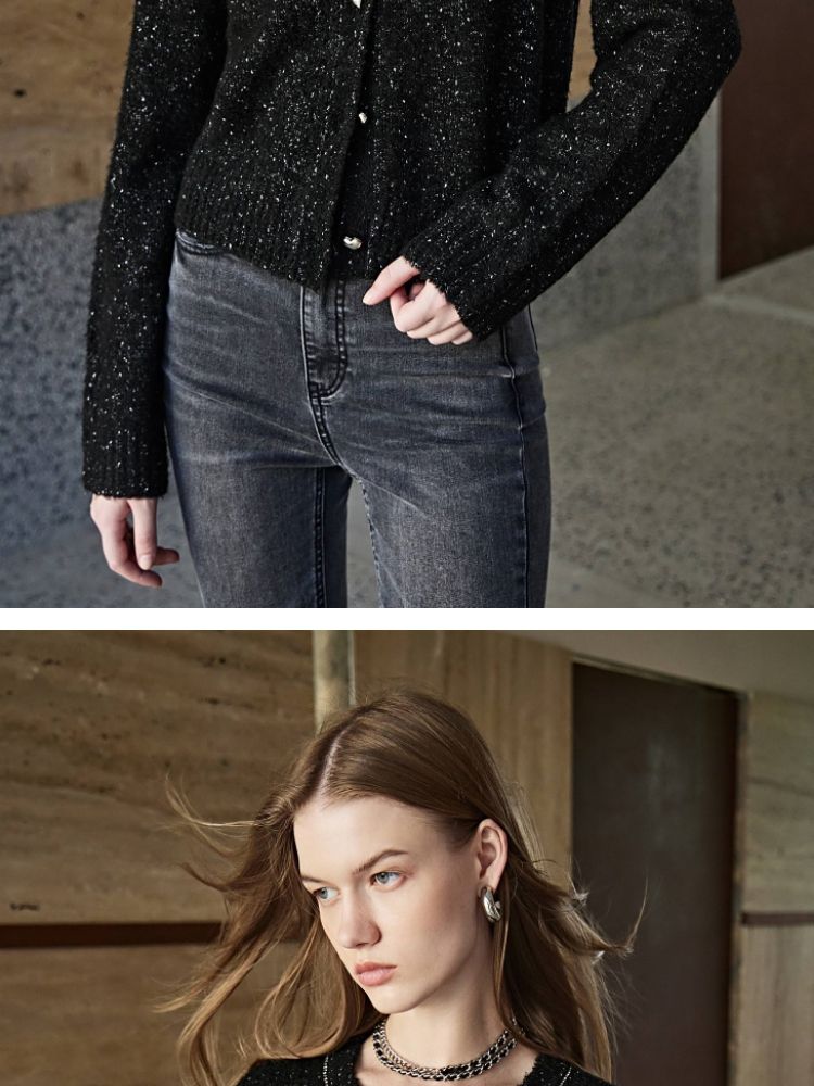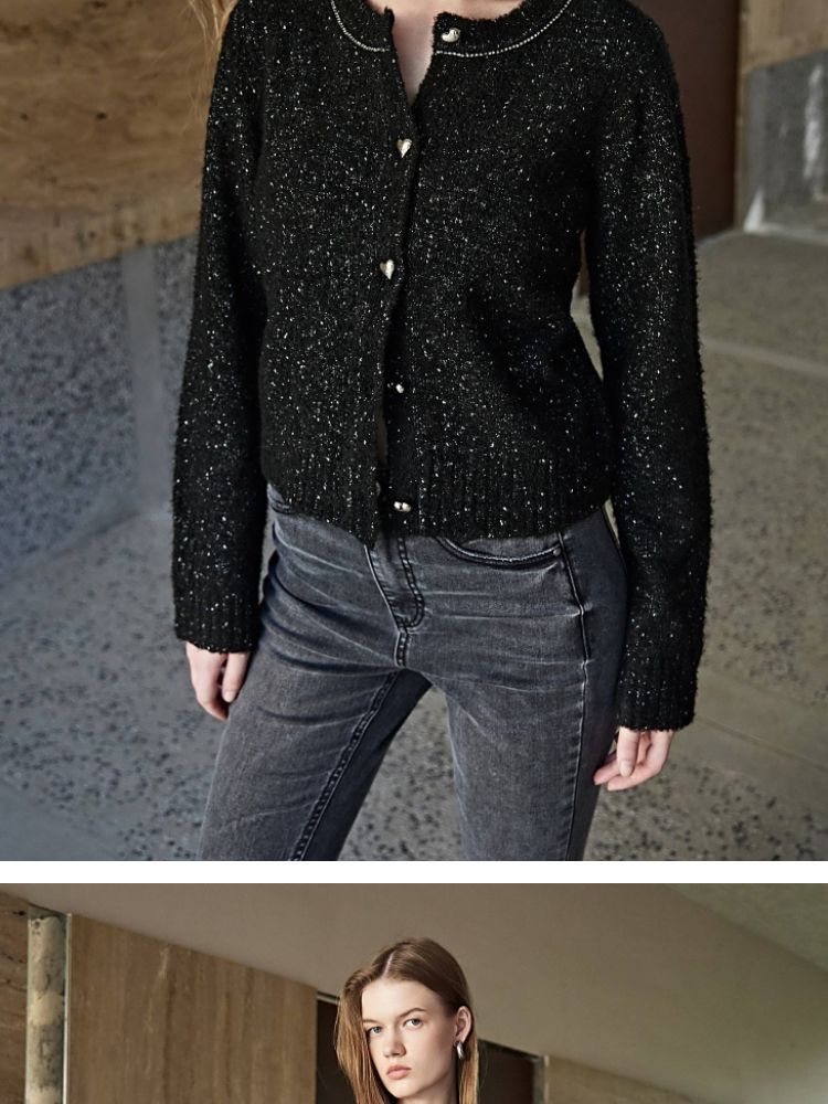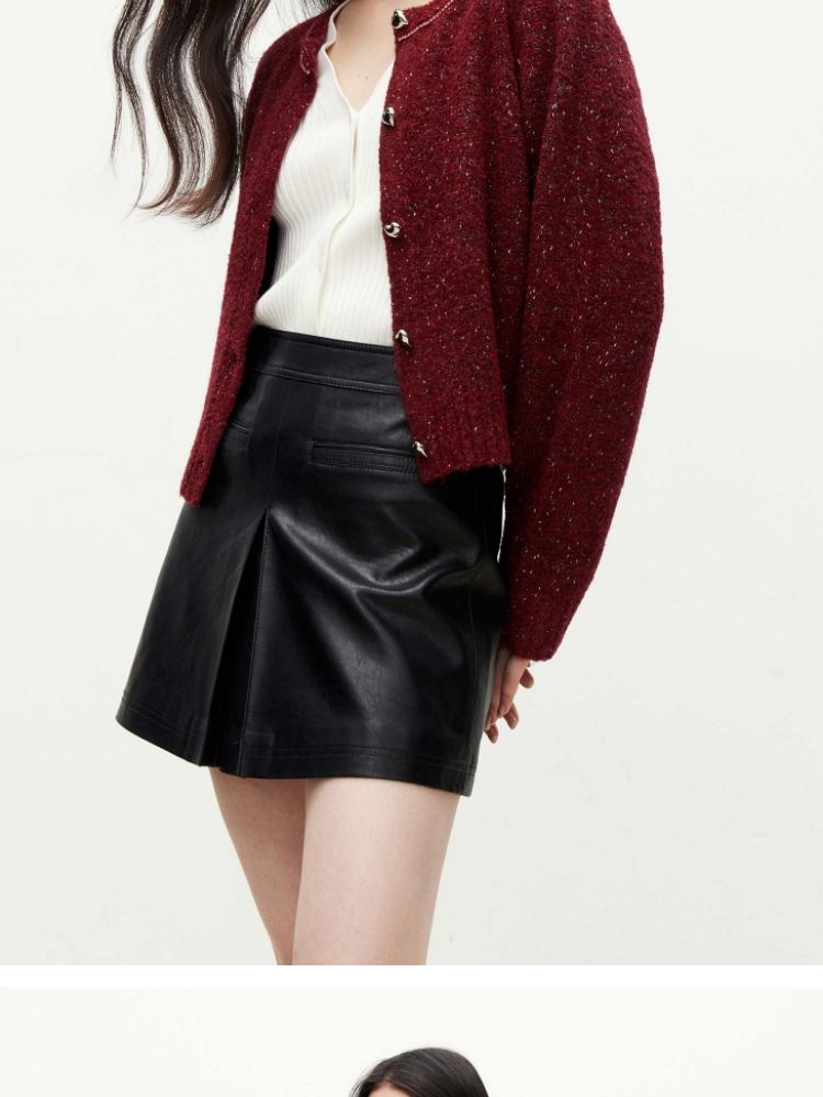 商品名称:【领口重工亮钻】春季简约时尚短款圆领开衫含羊毛针织衫女 756762