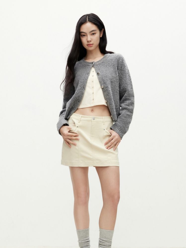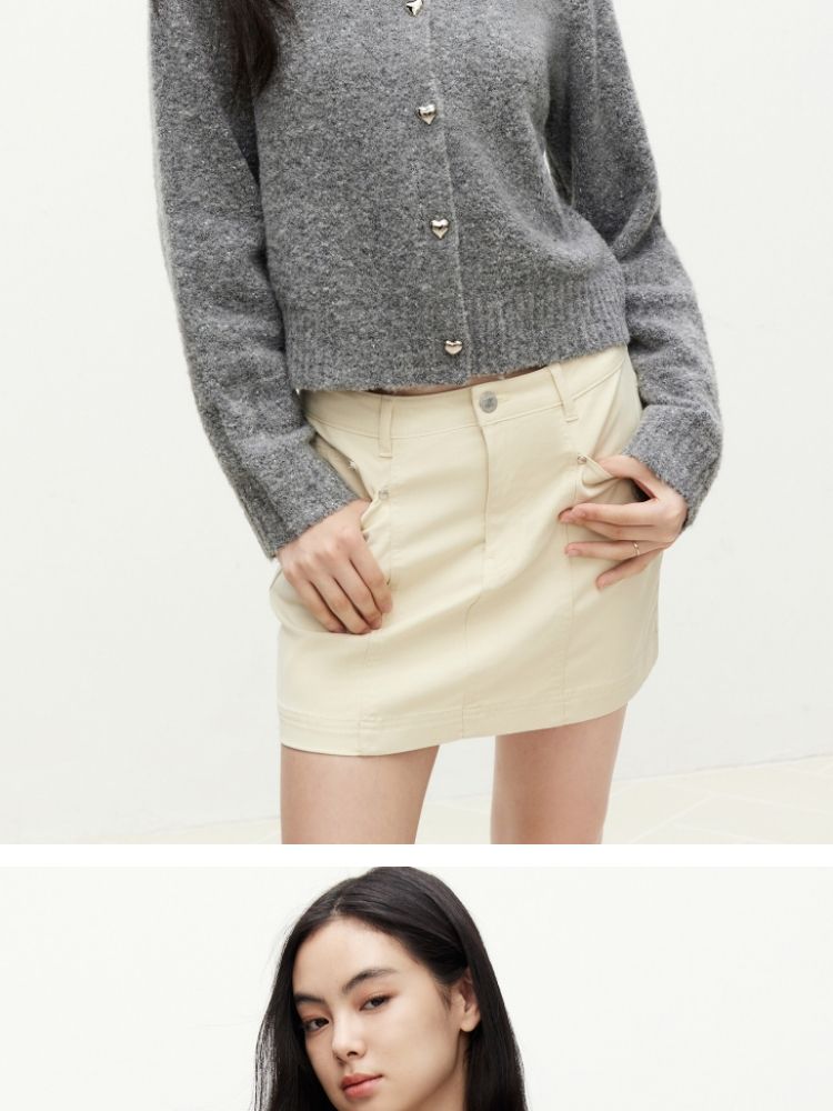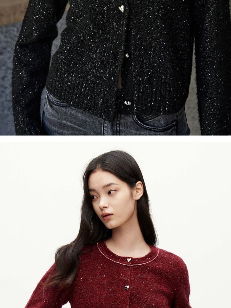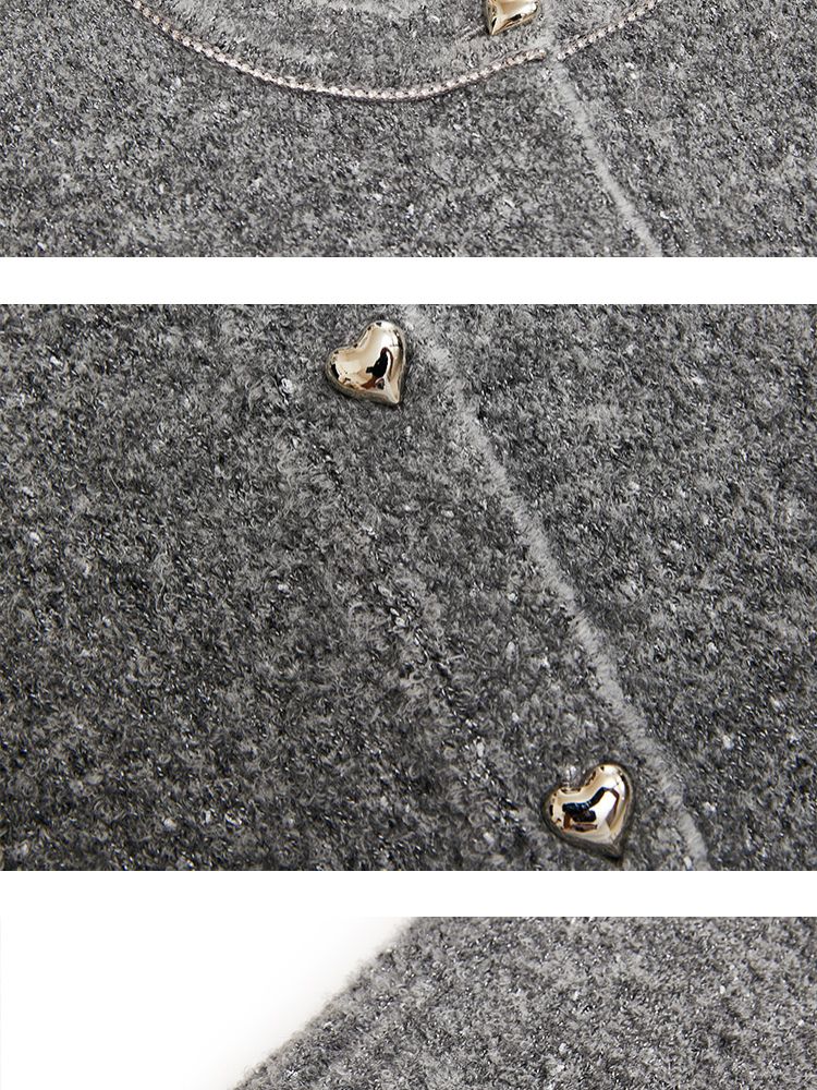 【领口重工亮钻】春季简约时尚短款圆领开衫含羊毛针织衫女 756762