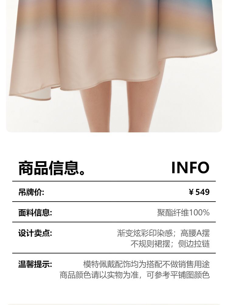 商品名称:半身裙女高腰A摆渐变时尚优雅灵动 586833