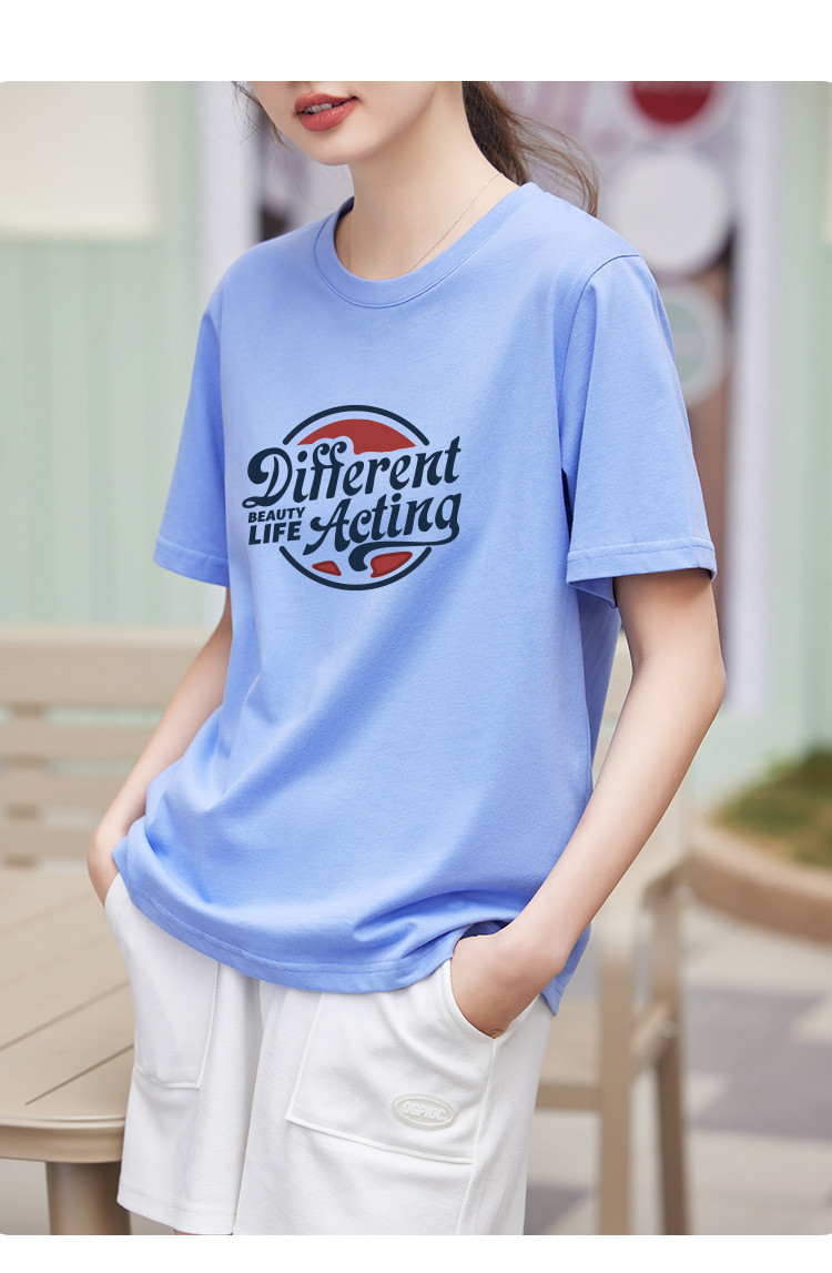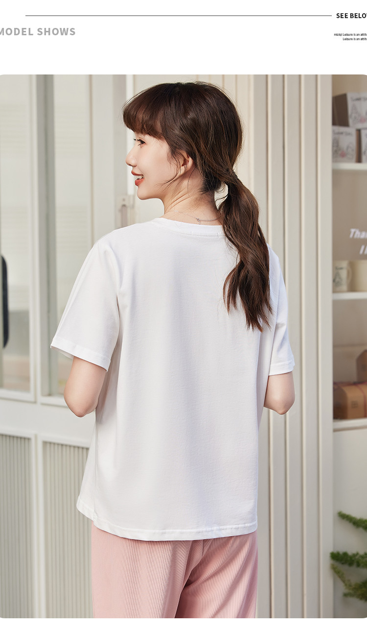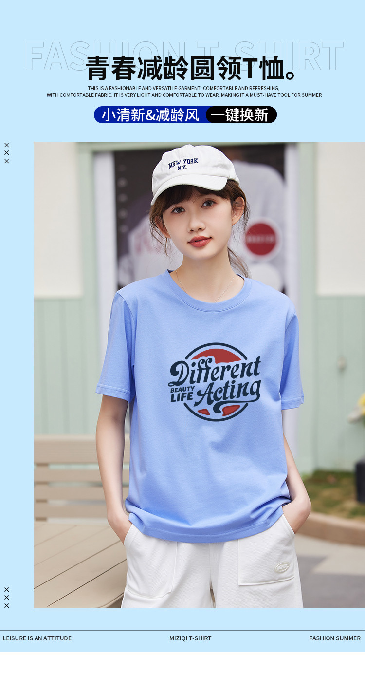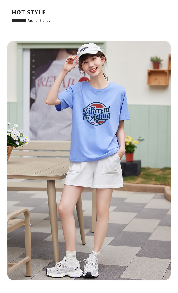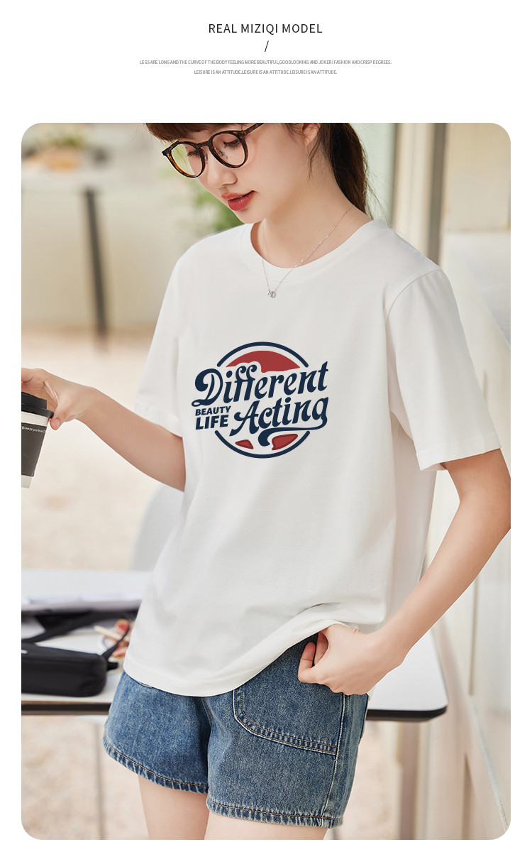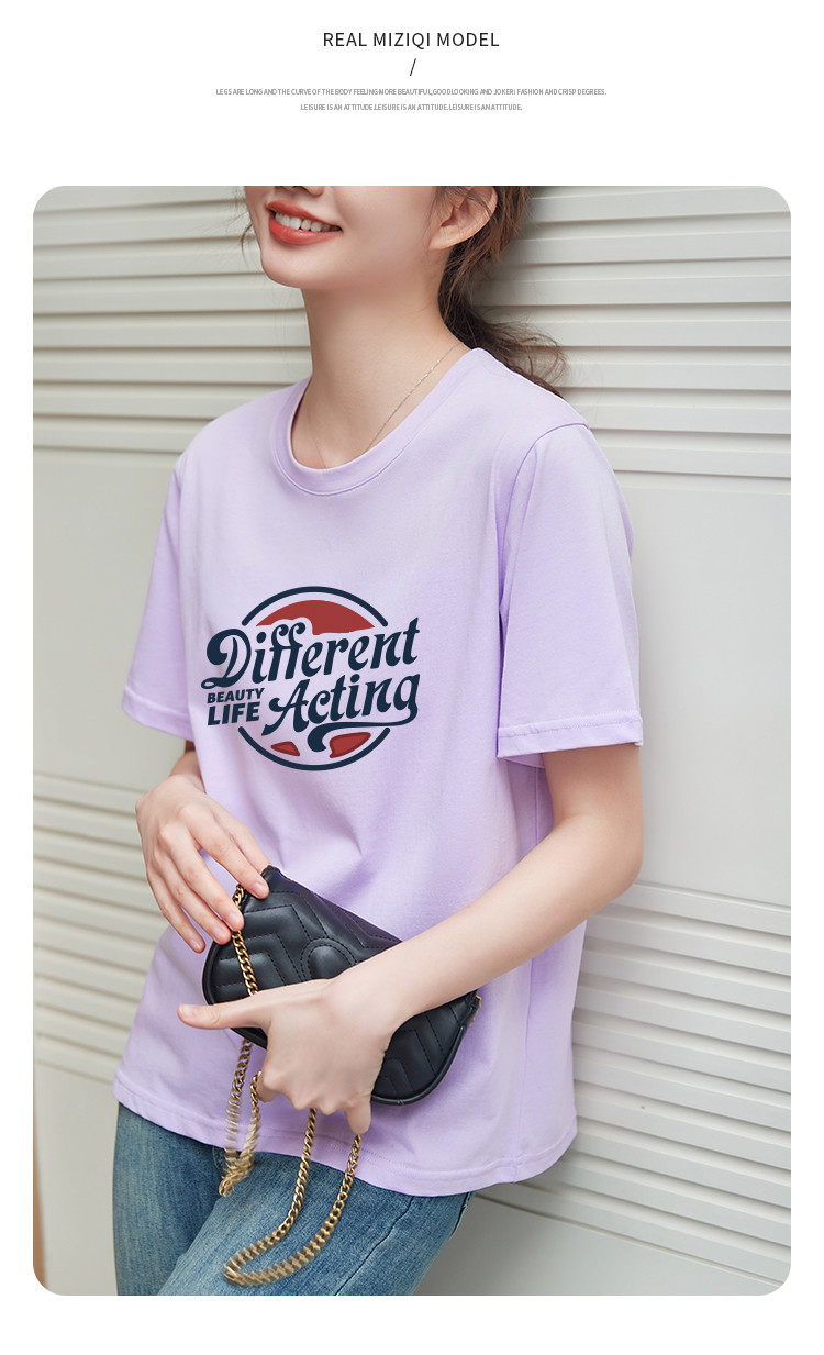 商品名称:米子旗夏季圆领创意印花T恤女简约减龄宽松休闲短袖上衣 047194