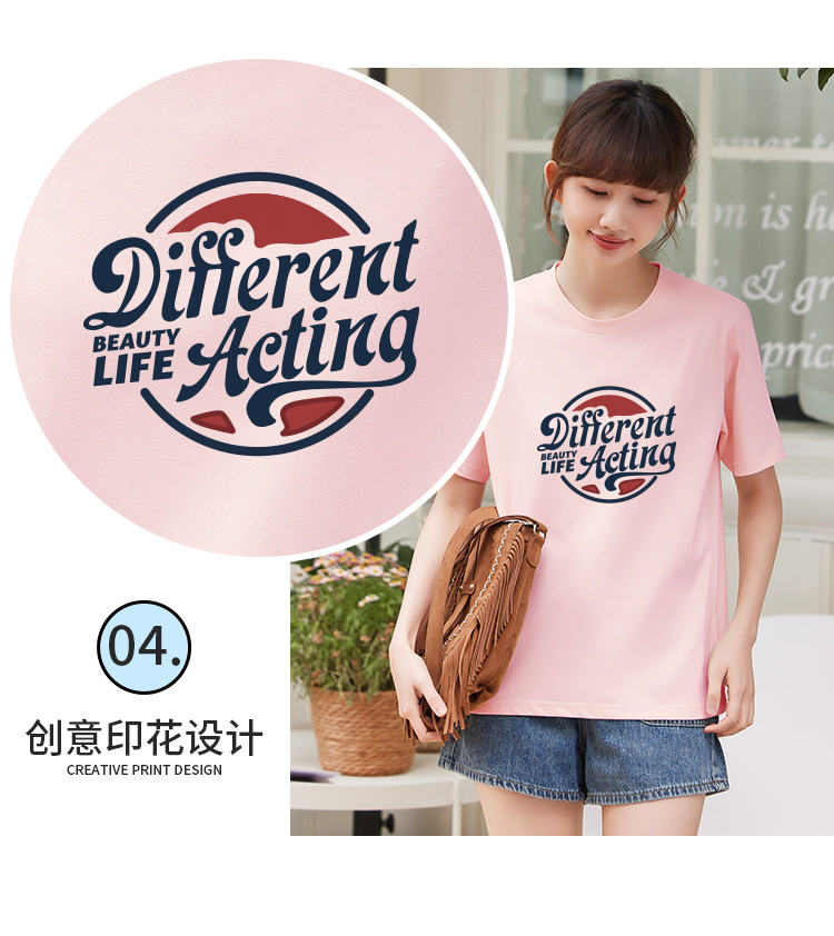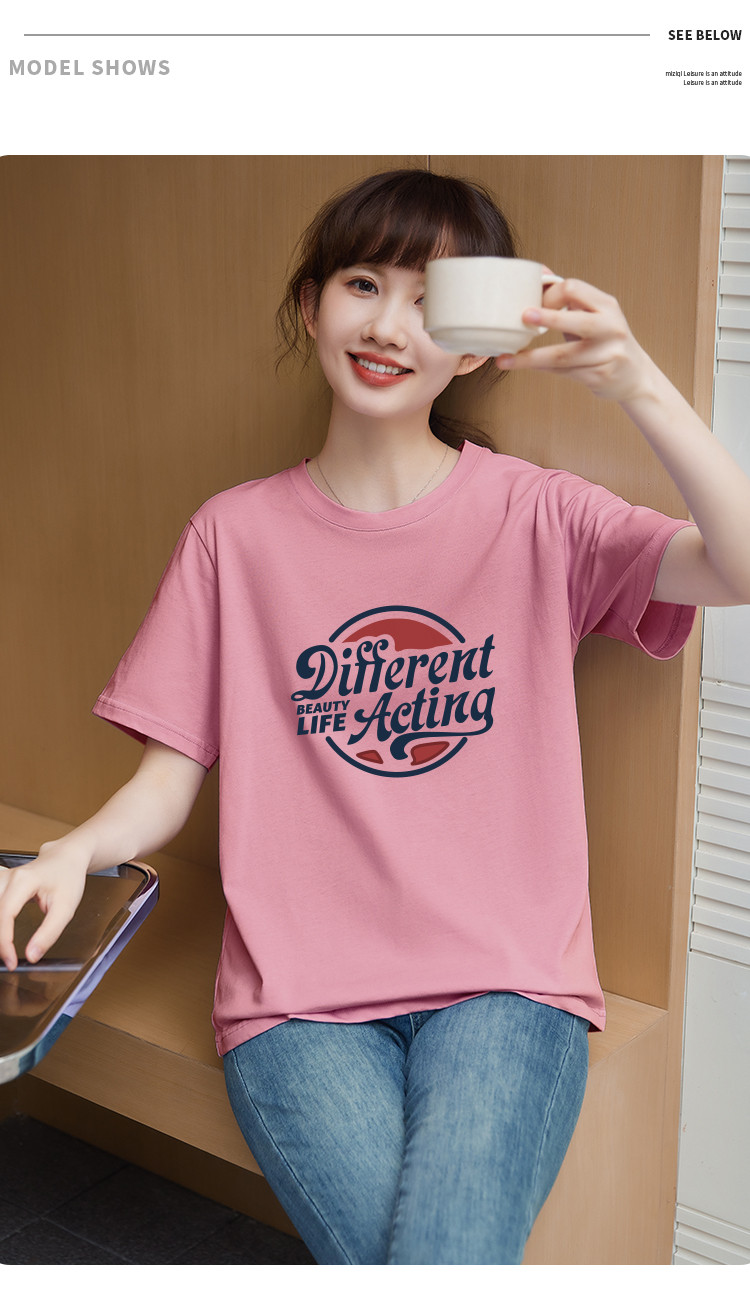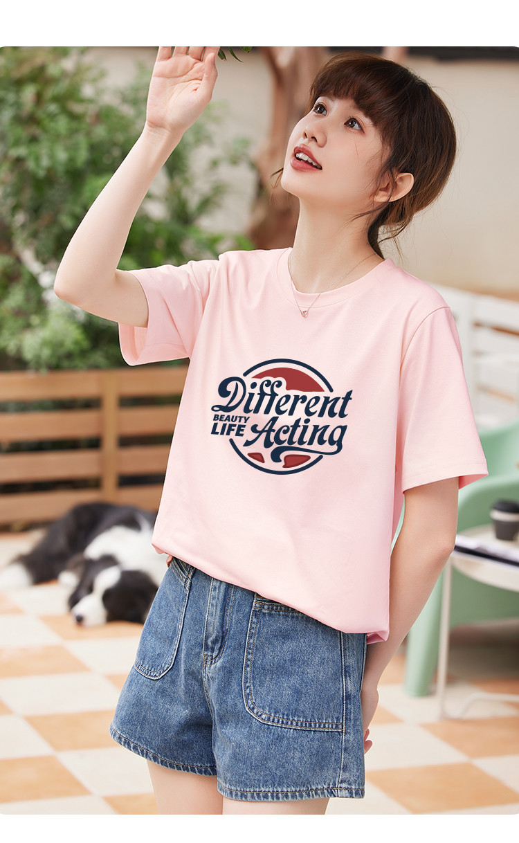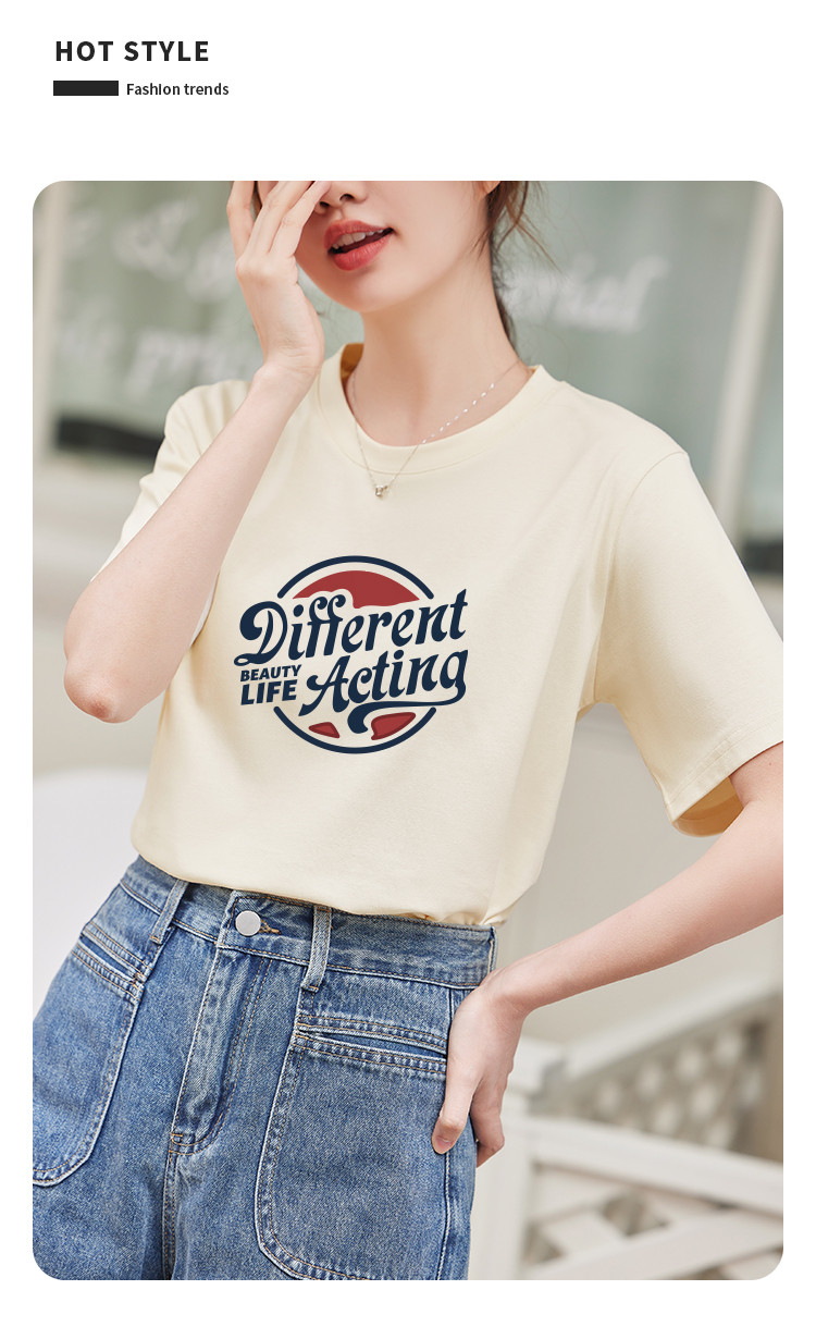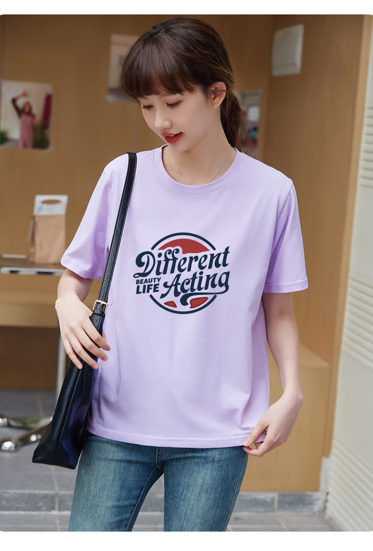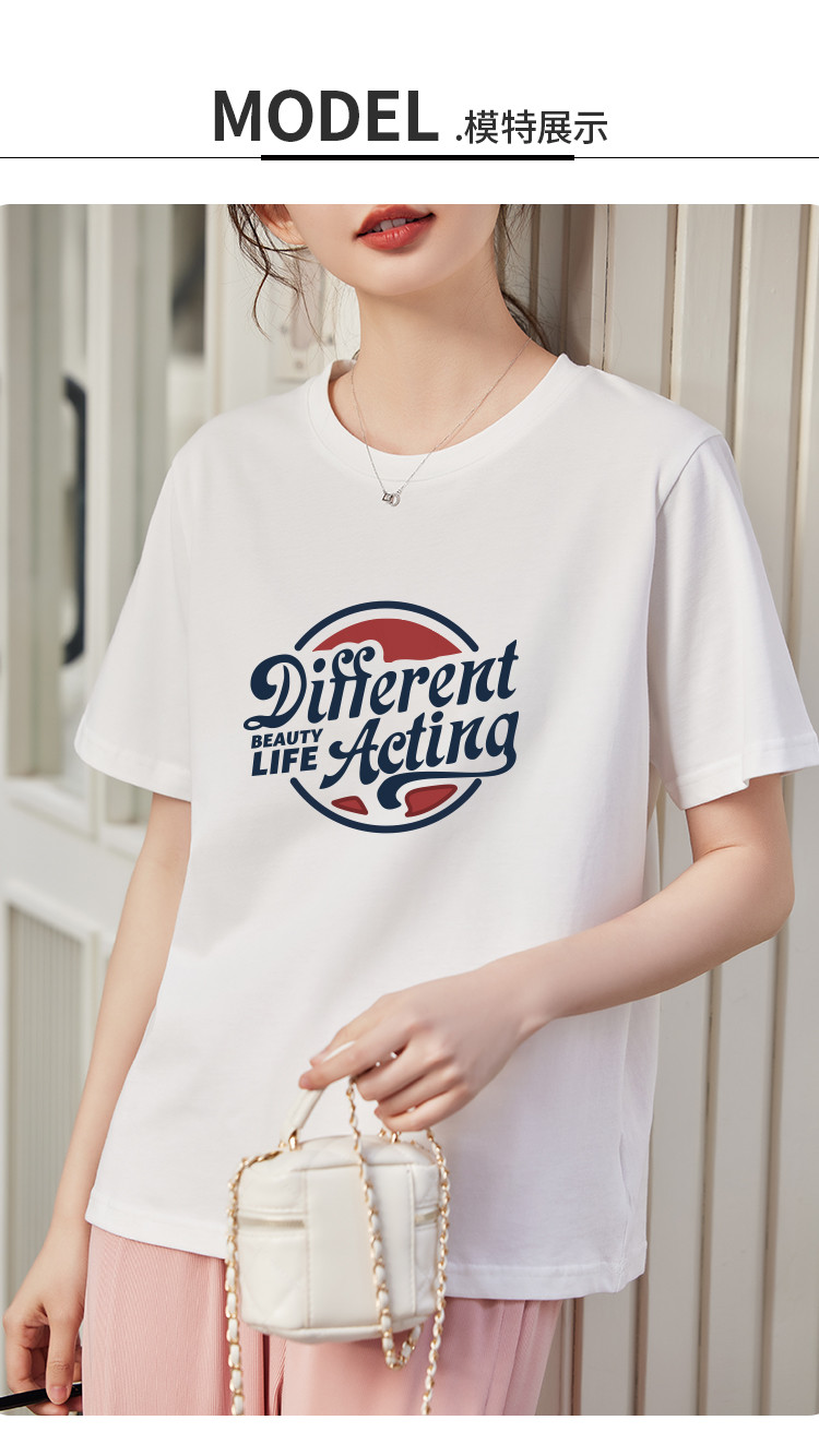 商品名称:米子旗夏季圆领创意印花T恤女简约减龄宽松休闲短袖上衣 047194