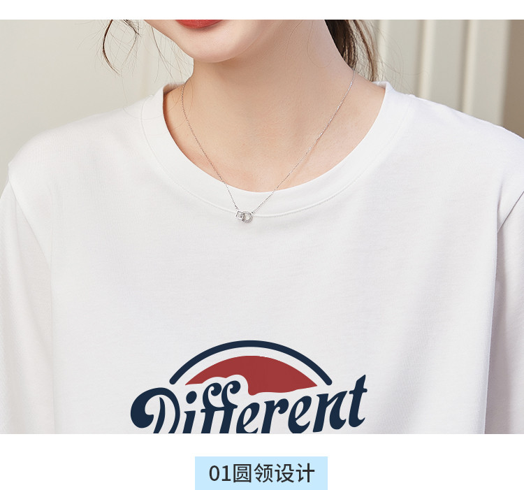 米子旗夏季圆领创意印花T恤女简约减龄宽松休闲短袖上衣 047194