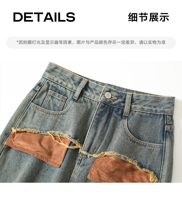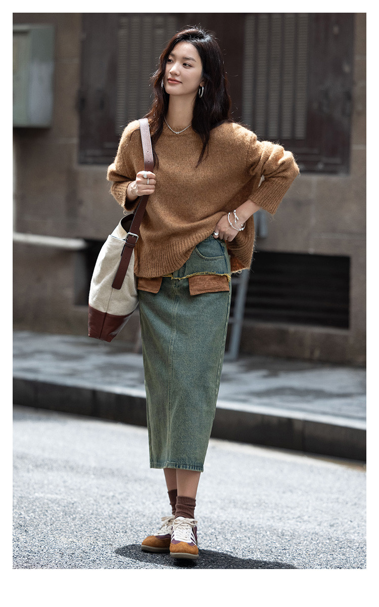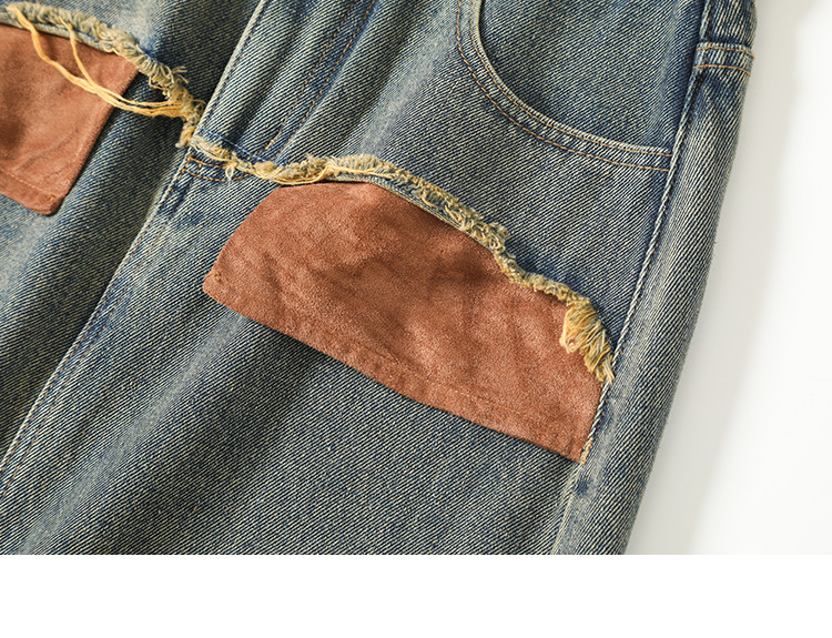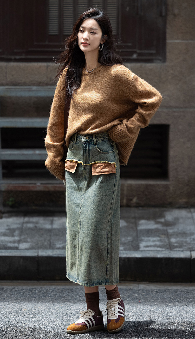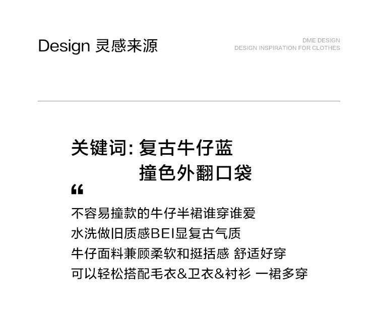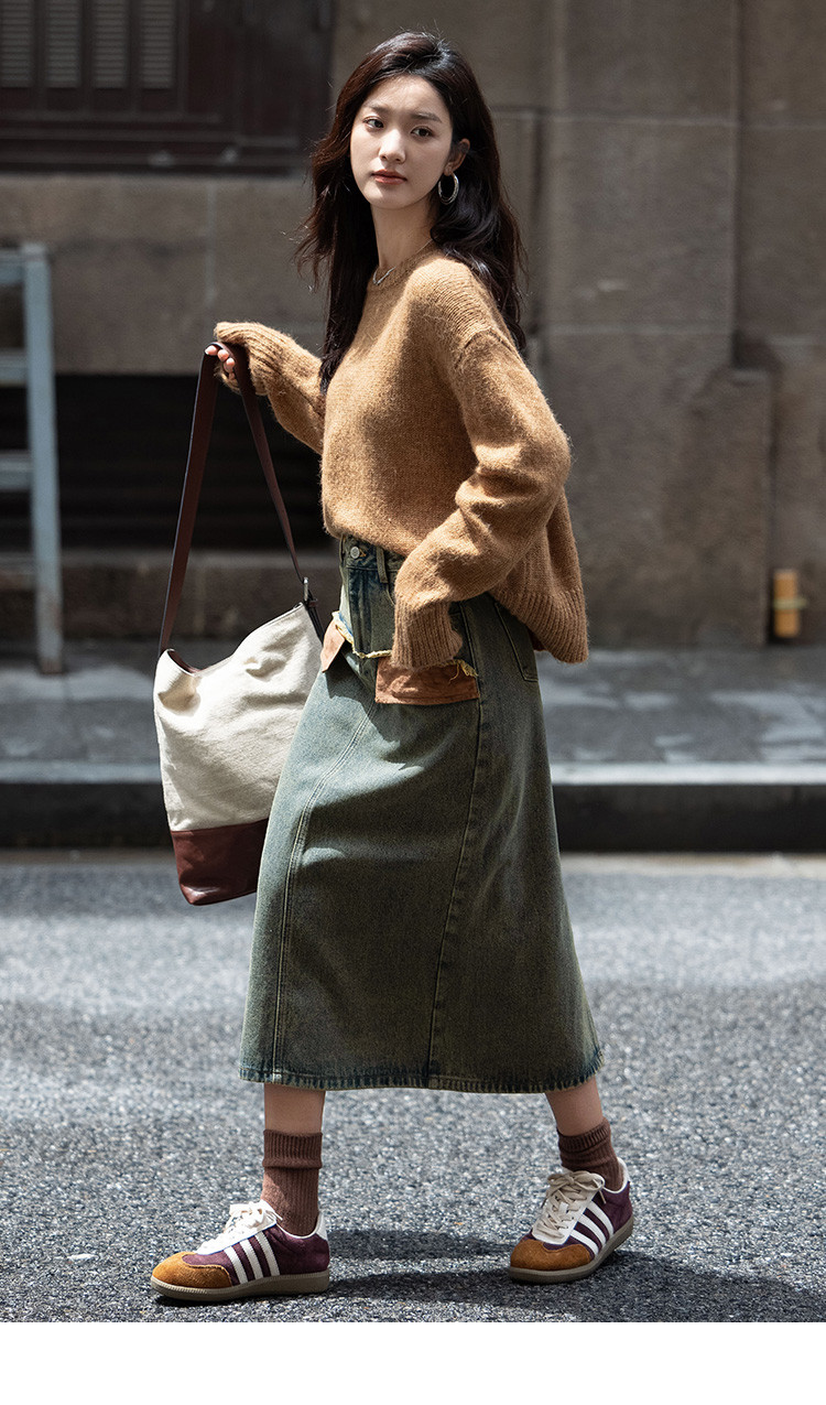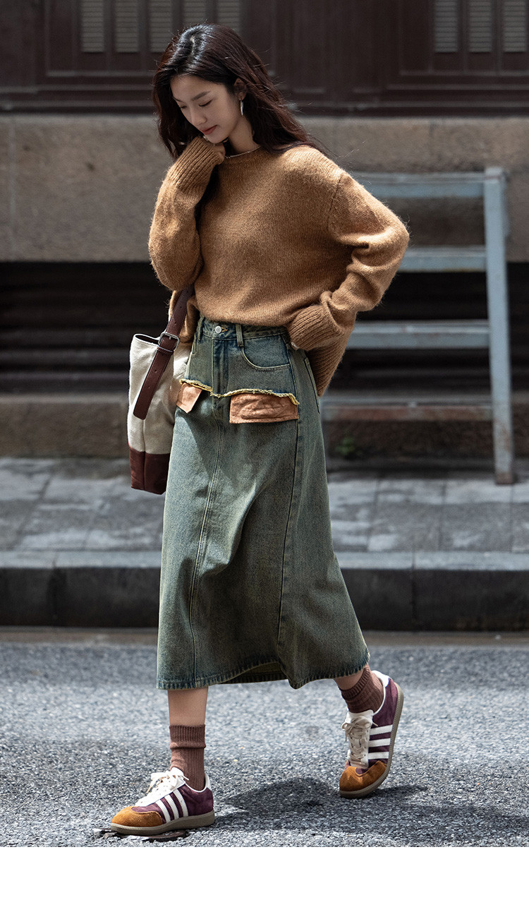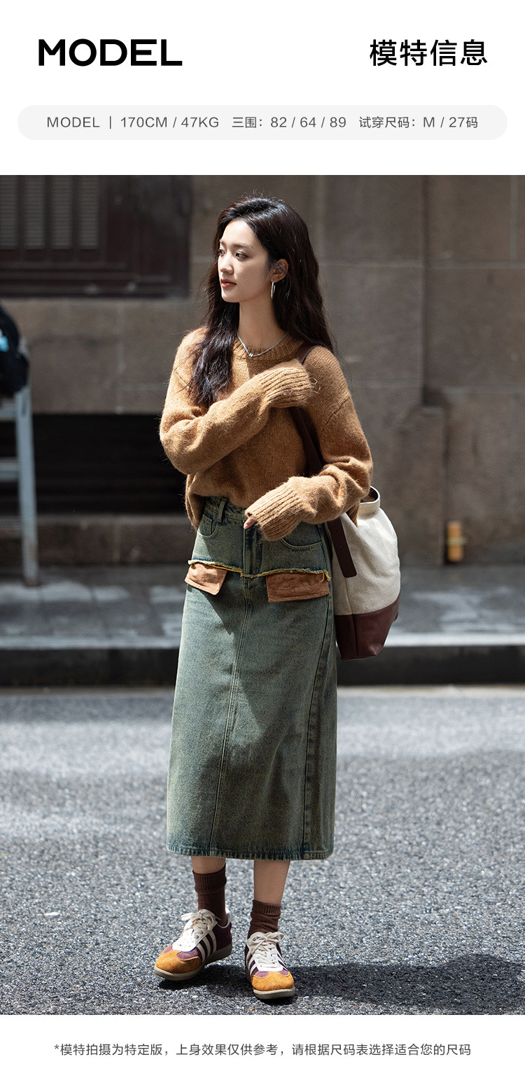 商品名称:【复古蓝水洗做旧半身裙】秋面料拼接设计中长款牛仔半裙 792322