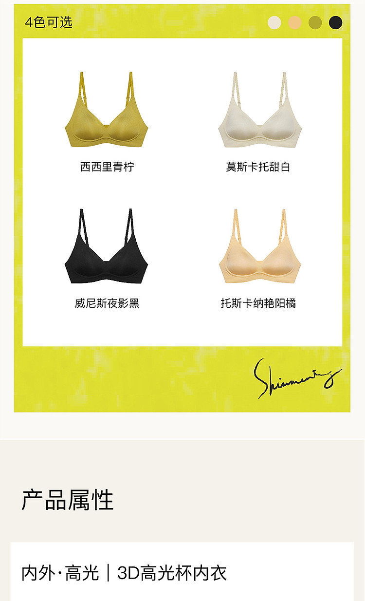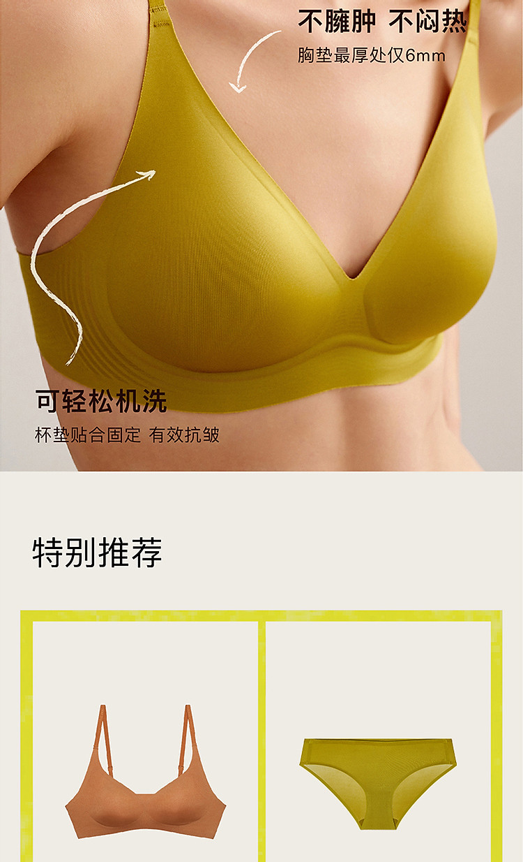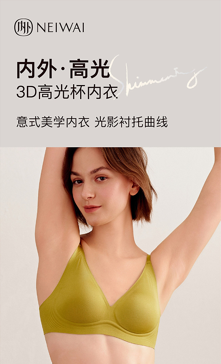 商品名称:NEIWAI内外·高光|3D高光杯内衣无钢圈轻薄固定杯文胸承 763658