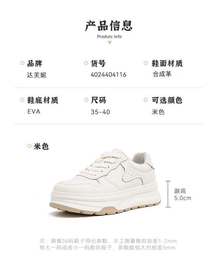 商品名称:小白鞋女春夏透气薄款时尚厚底板鞋简约风轻便舒适运动休闲鞋 623063