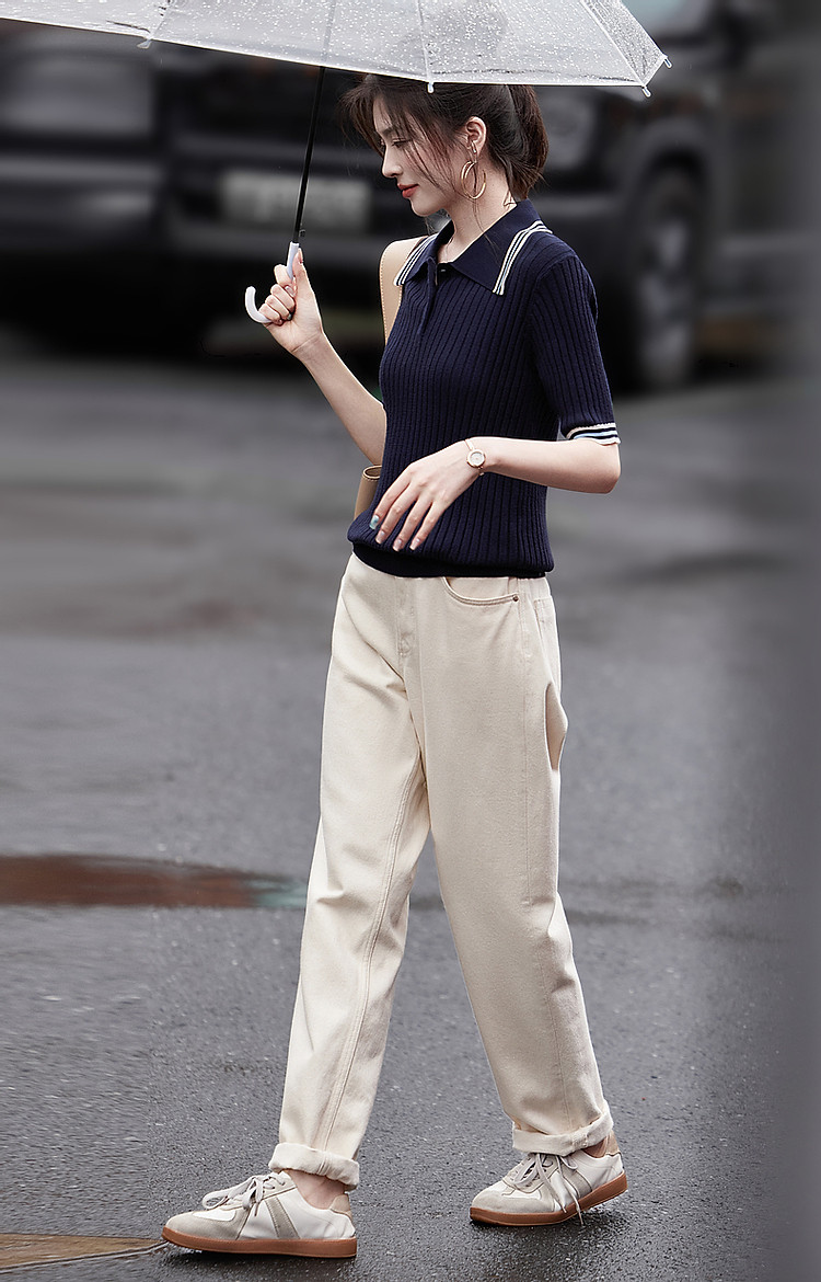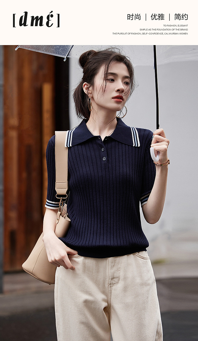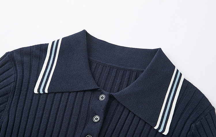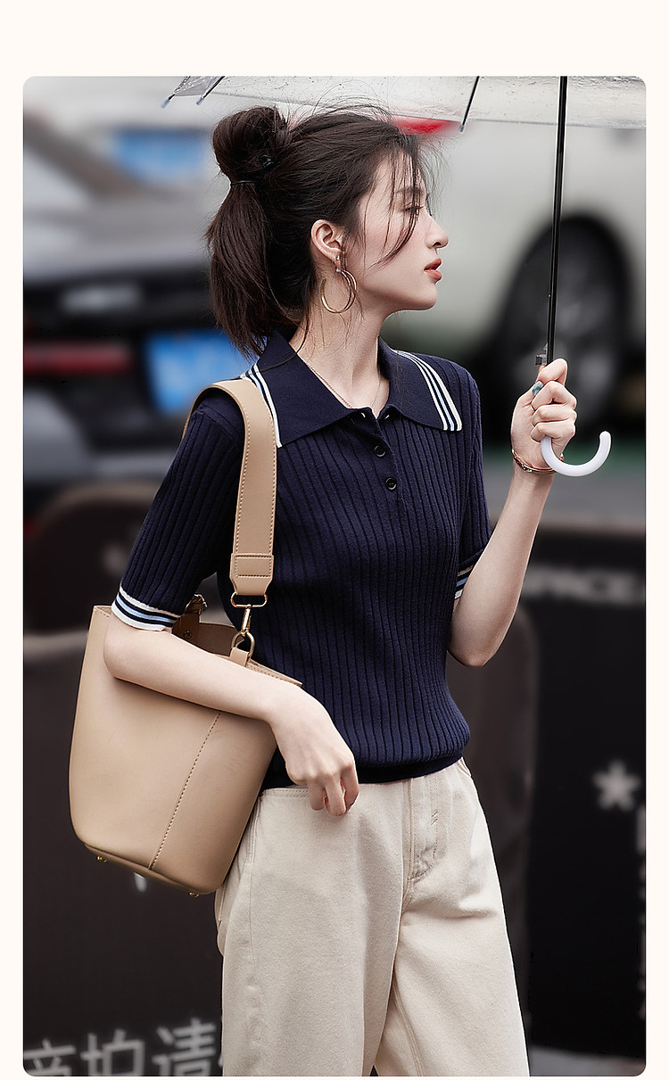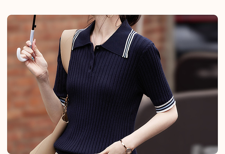 【高智感通勤线衫】春撞色Polo领藏肉弹力小个子针织衫女上衣 180737