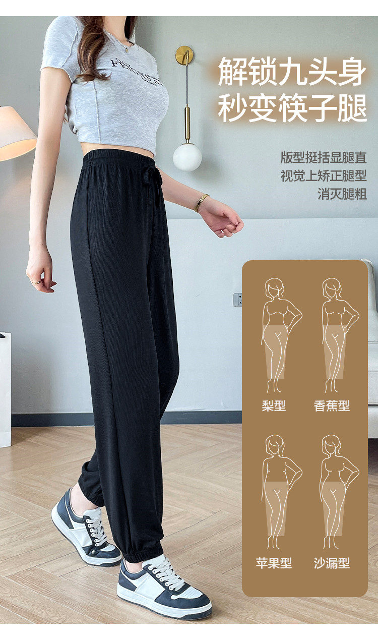 商品名称:【女装】夏季女式宽松设计感运动休闲长裤薄款垂感显瘦橡筋束脚裤 333139