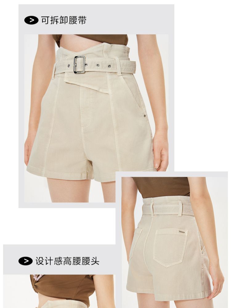商品名称:【高腰百搭】夏季含莱赛尔设计感腰带A字短款牛仔裤女 932506