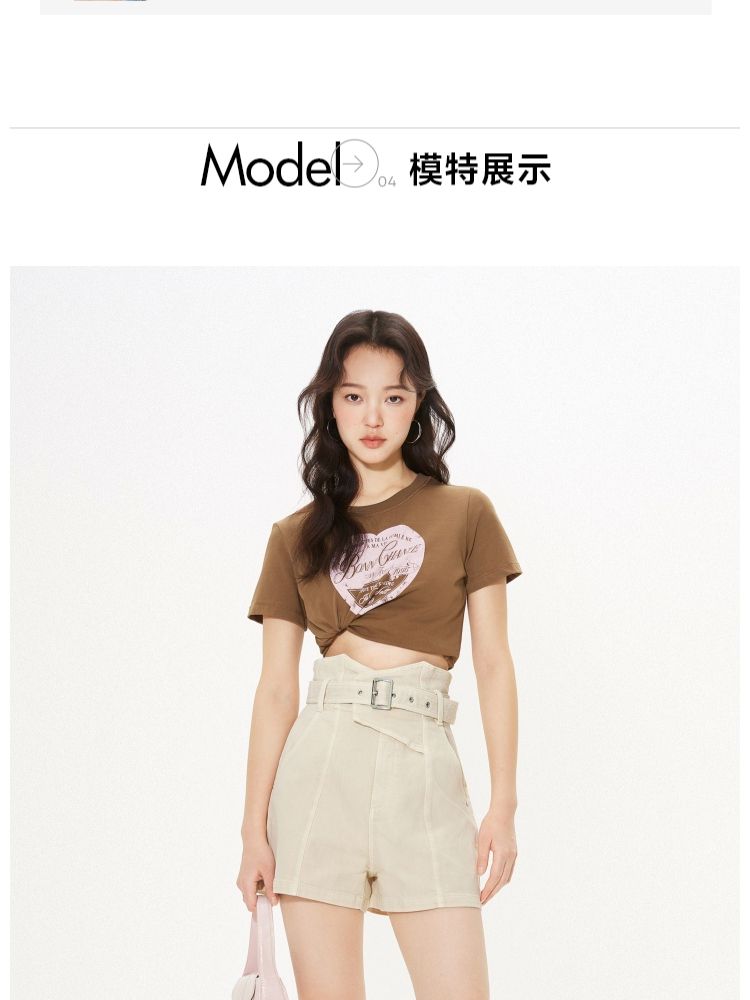 【高腰百搭】夏季含莱赛尔设计感腰带A字短款牛仔裤女 932506