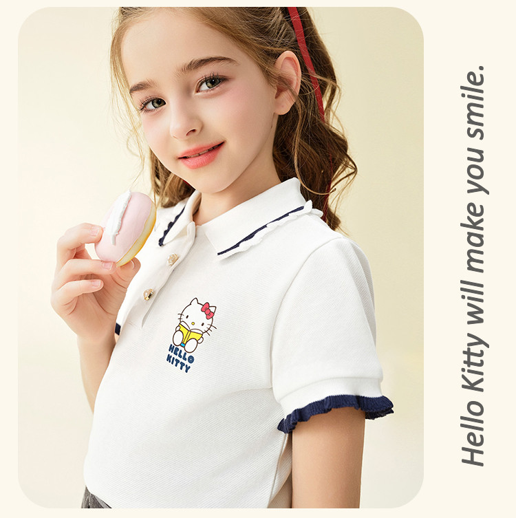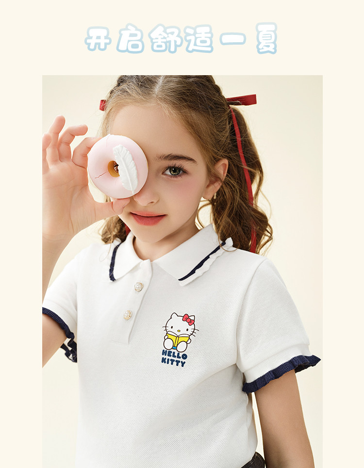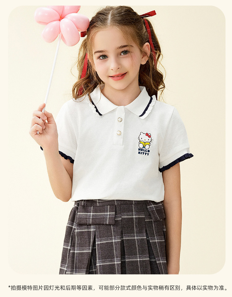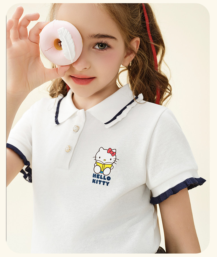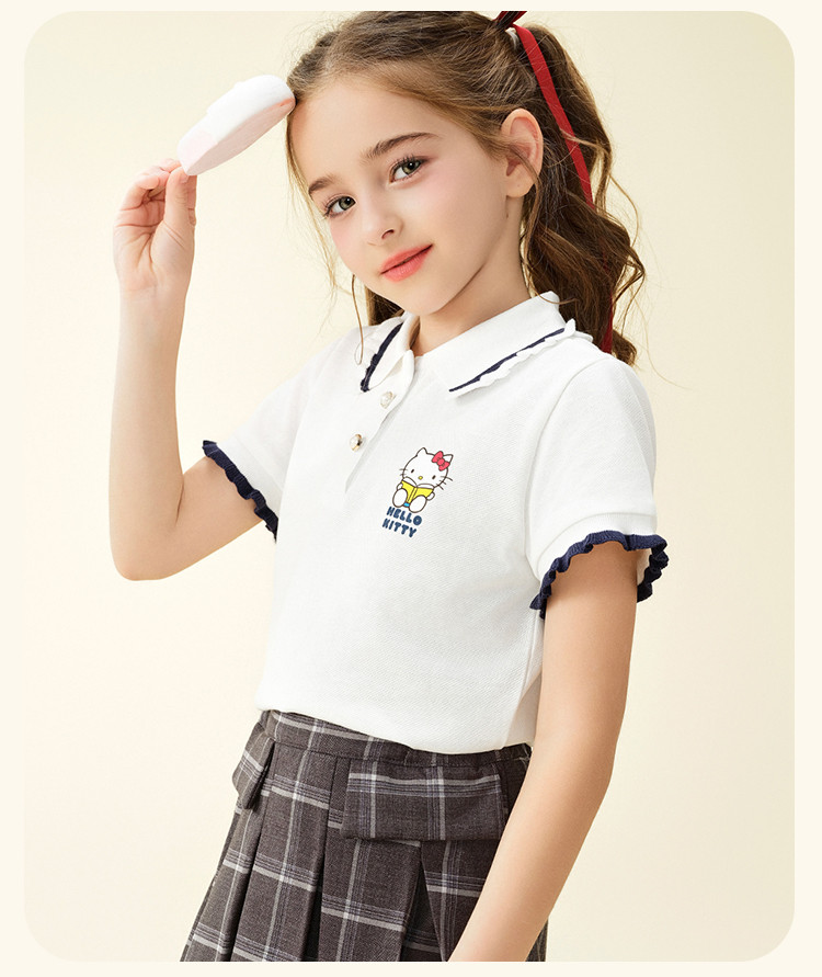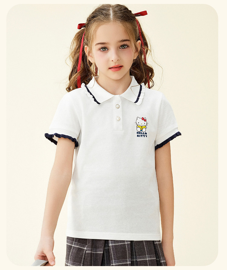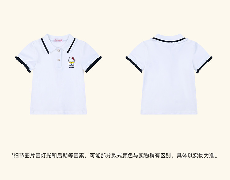 商品名称:女童夏季短袖T恤2025款木耳卷边袖口polo领卡通亲子上衣 588894
