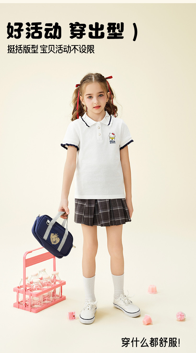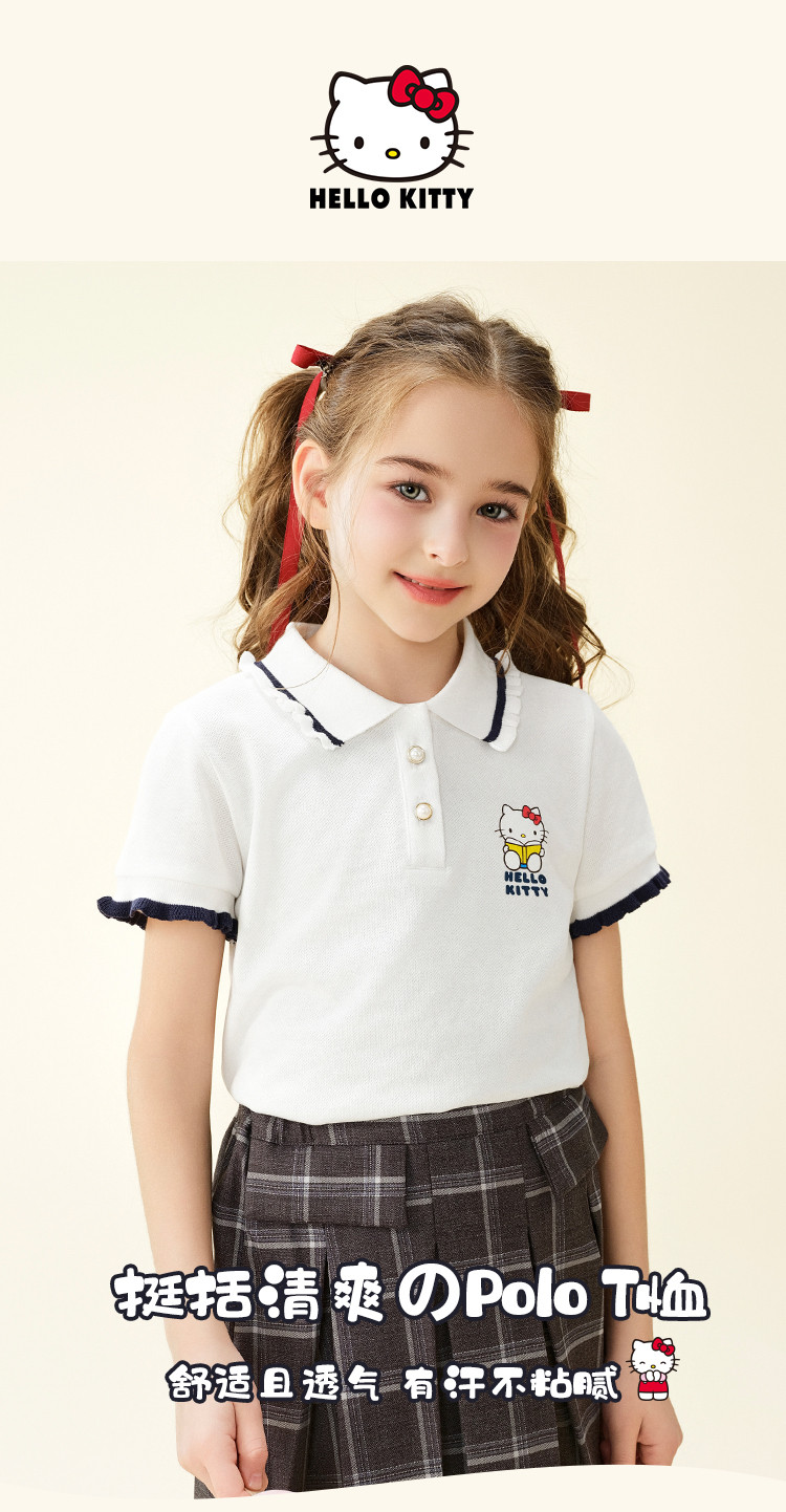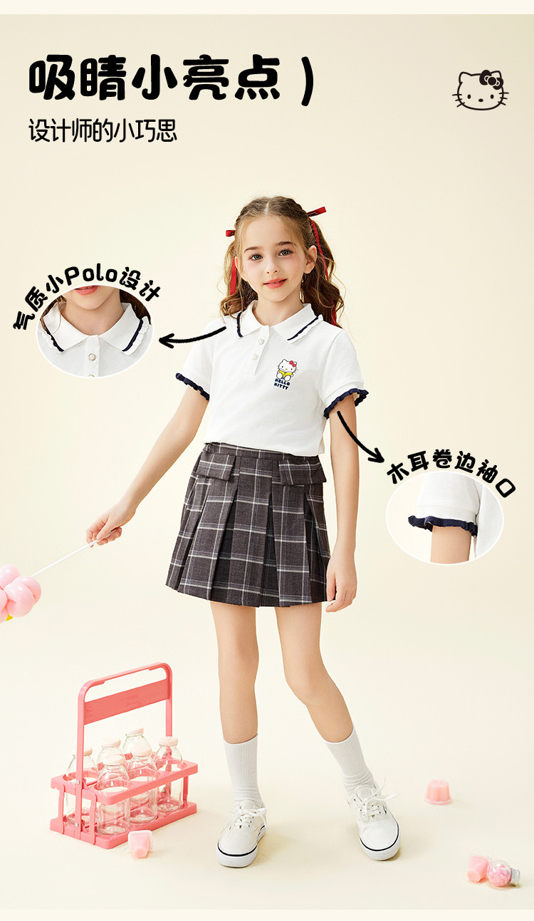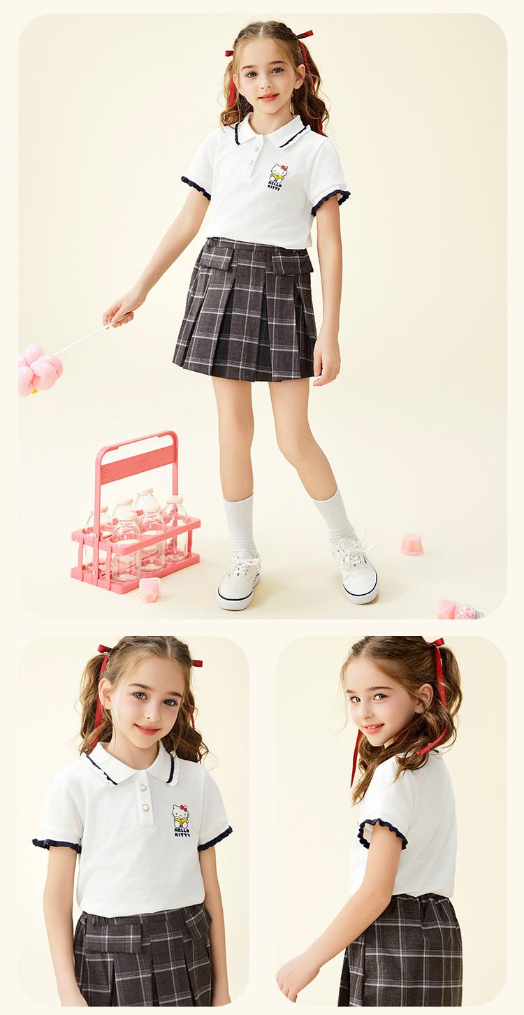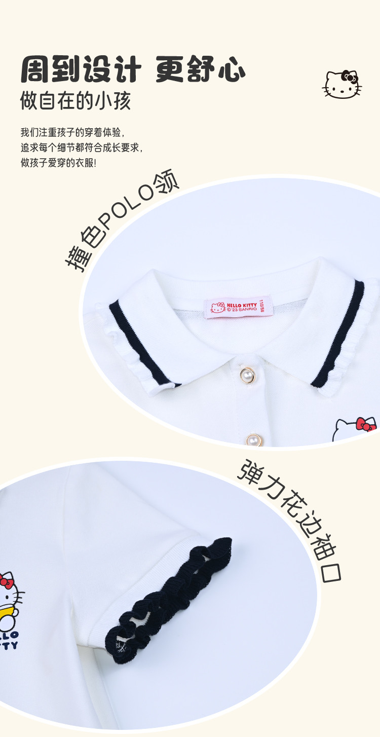 商品名称:女童夏季短袖T恤2025款木耳卷边袖口polo领卡通亲子上衣 588894