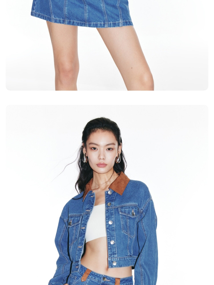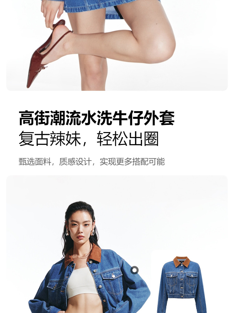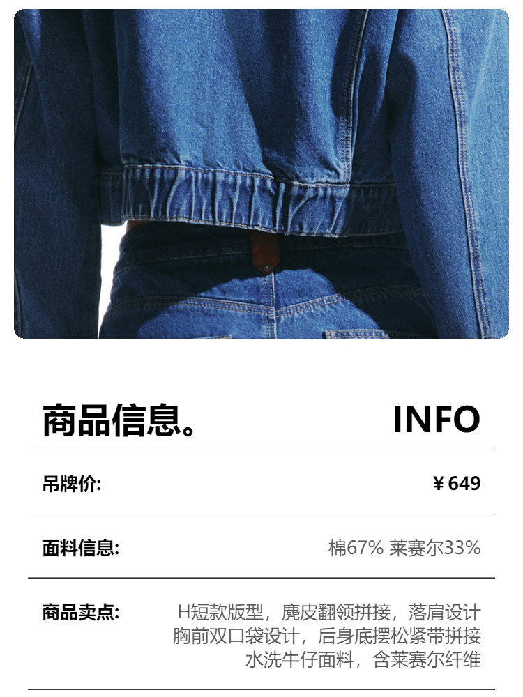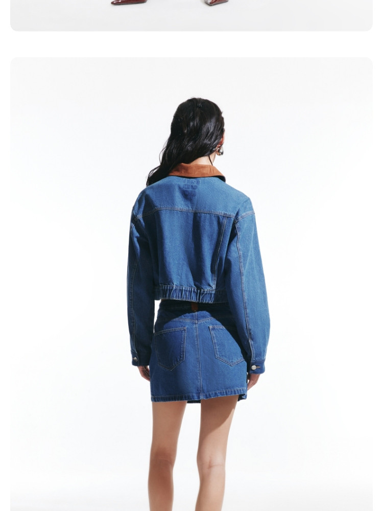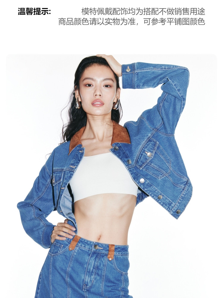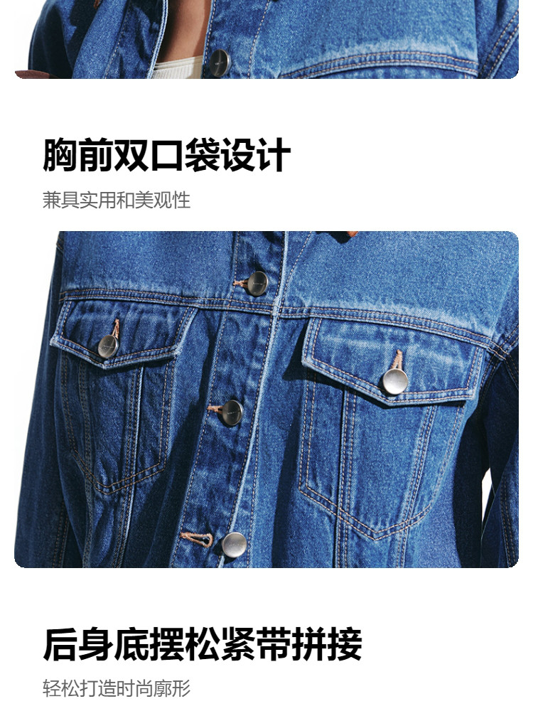 商品名称:【短款H版型】春秋牛仔外套女百搭显瘦H版翻领拼接 226257
