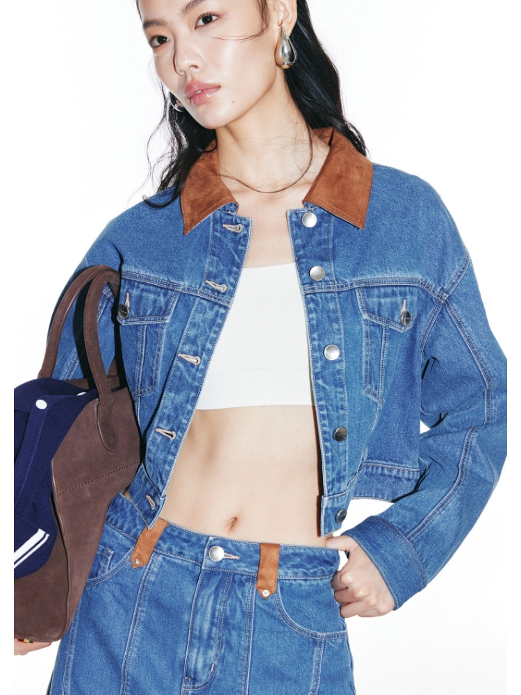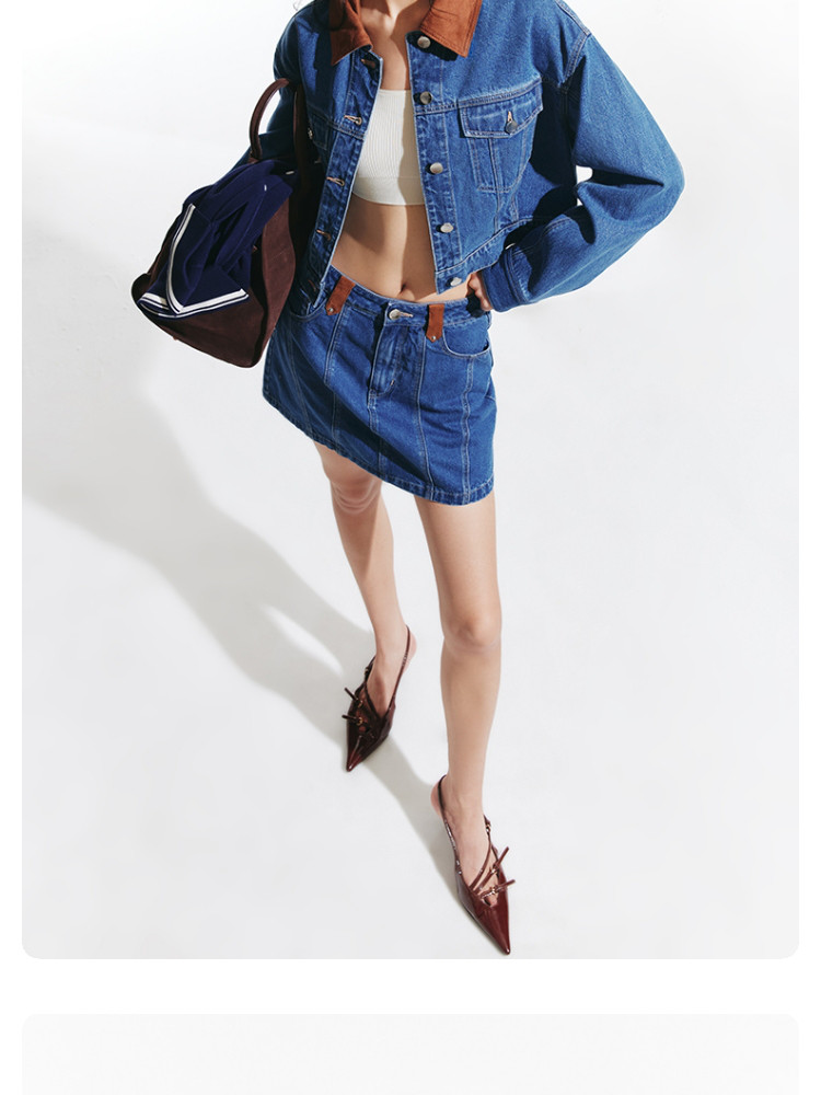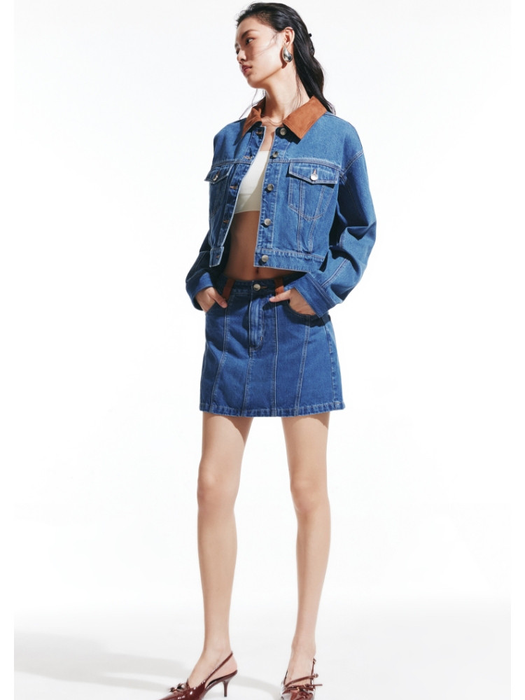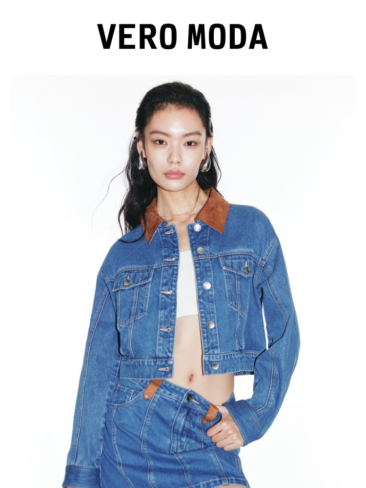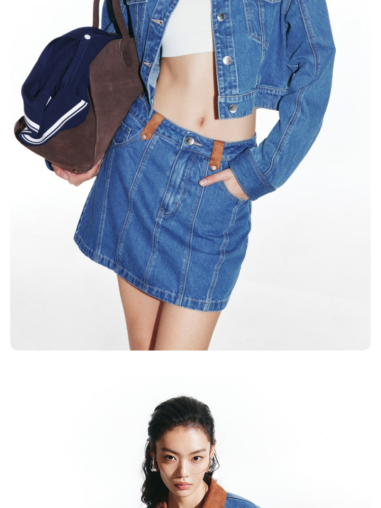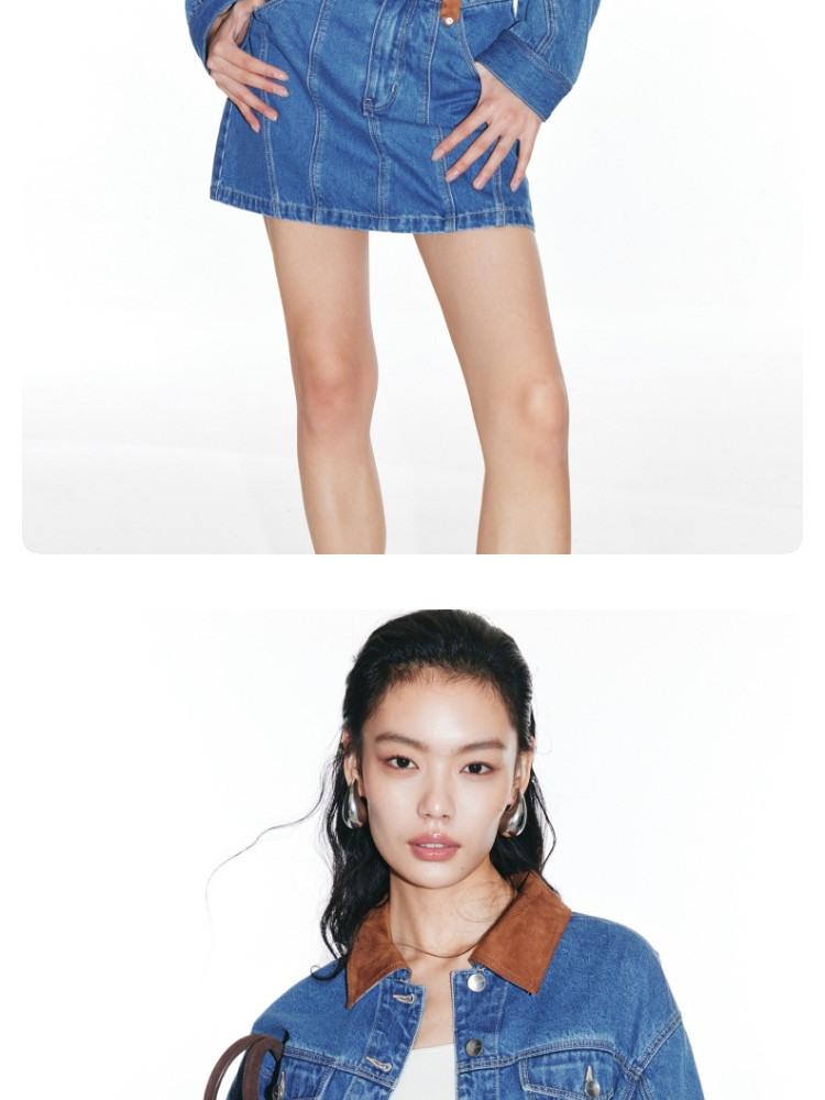 商品名称:【短款H版型】春秋牛仔外套女百搭显瘦H版翻领拼接 226257