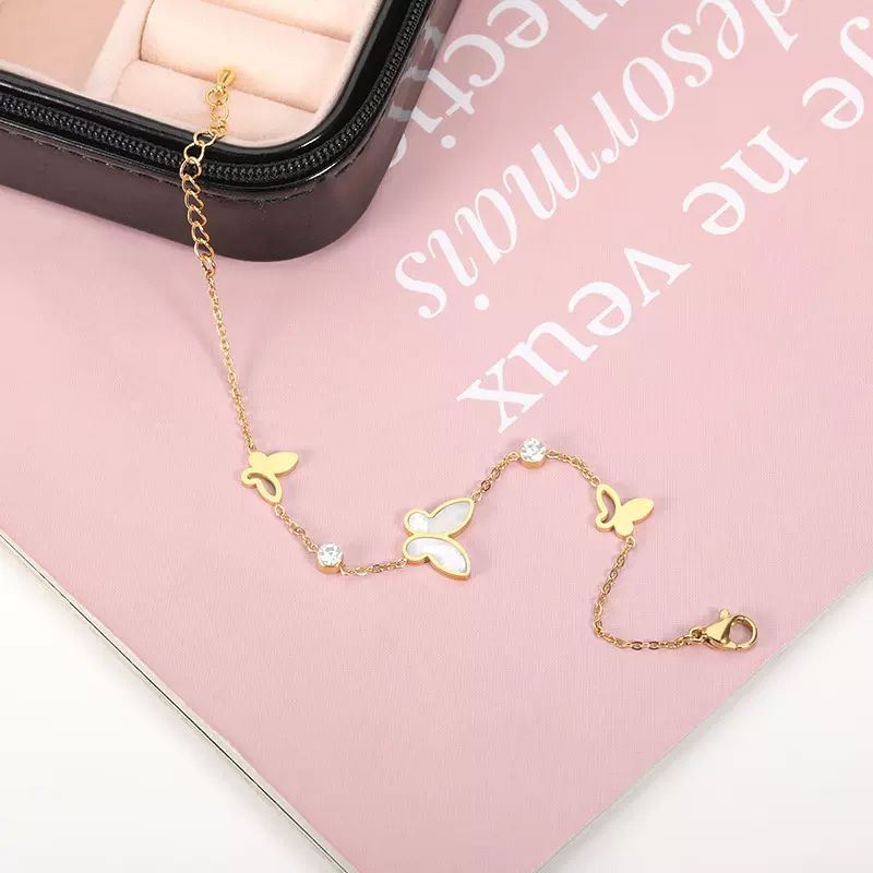 玫瑰的故事刘亦菲同款手链金色蝴蝶手链白贝手链女欧美风格时尚轻奢