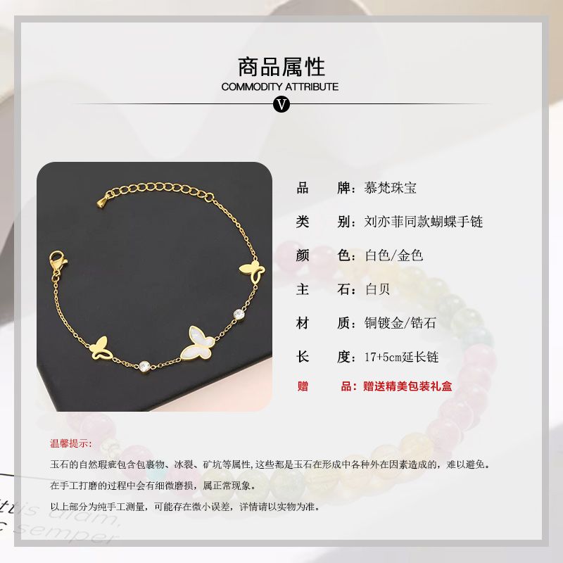 商品名称:玫瑰的故事刘亦菲同款手链金色蝴蝶手链白贝手链女欧美风格时尚轻奢