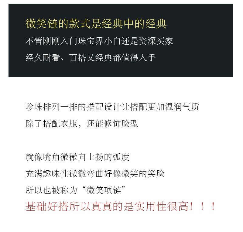 商品名称:展颜 微笑链强光精致淡水小珍珠吊坠包金链子可调节【A074】