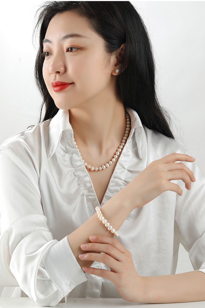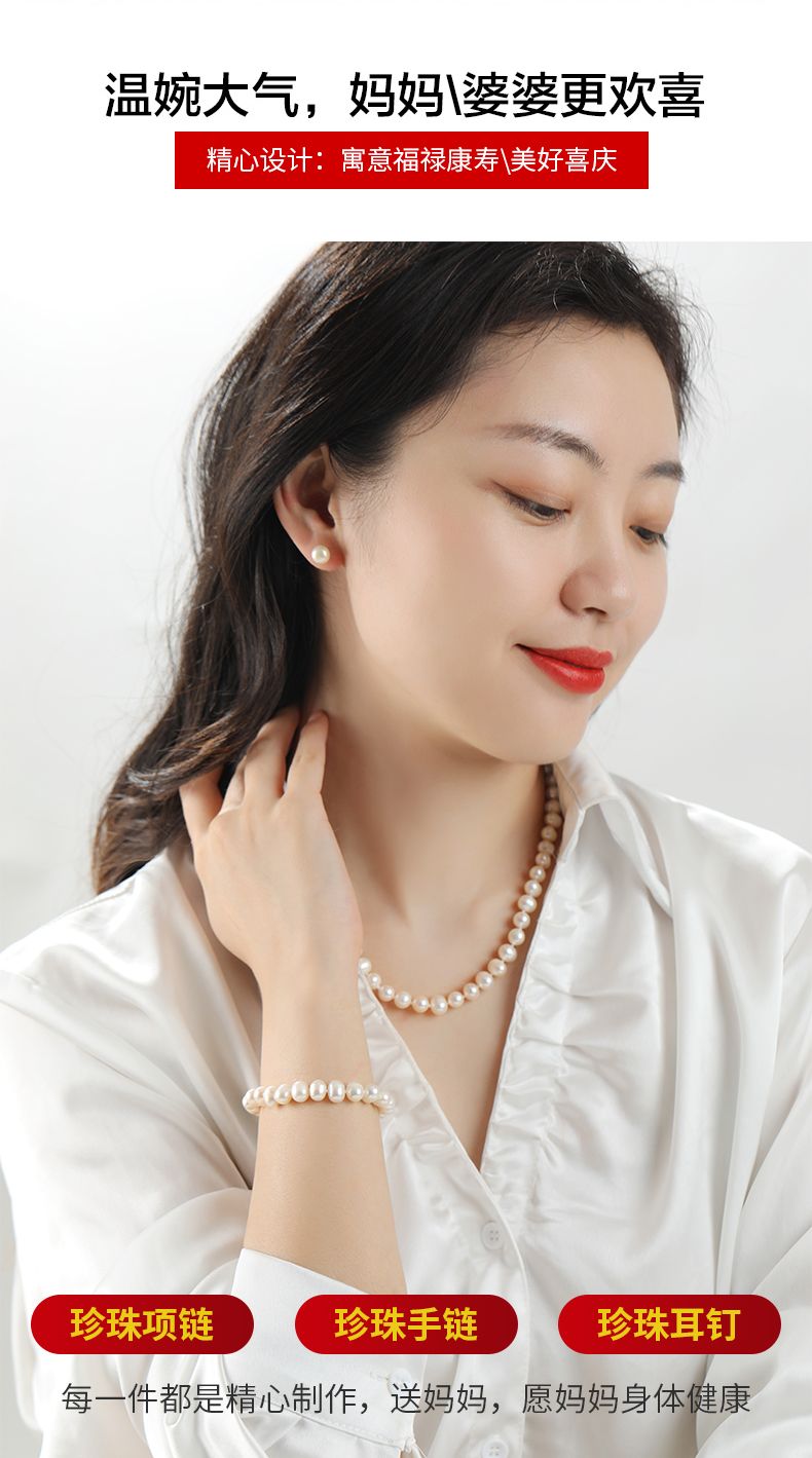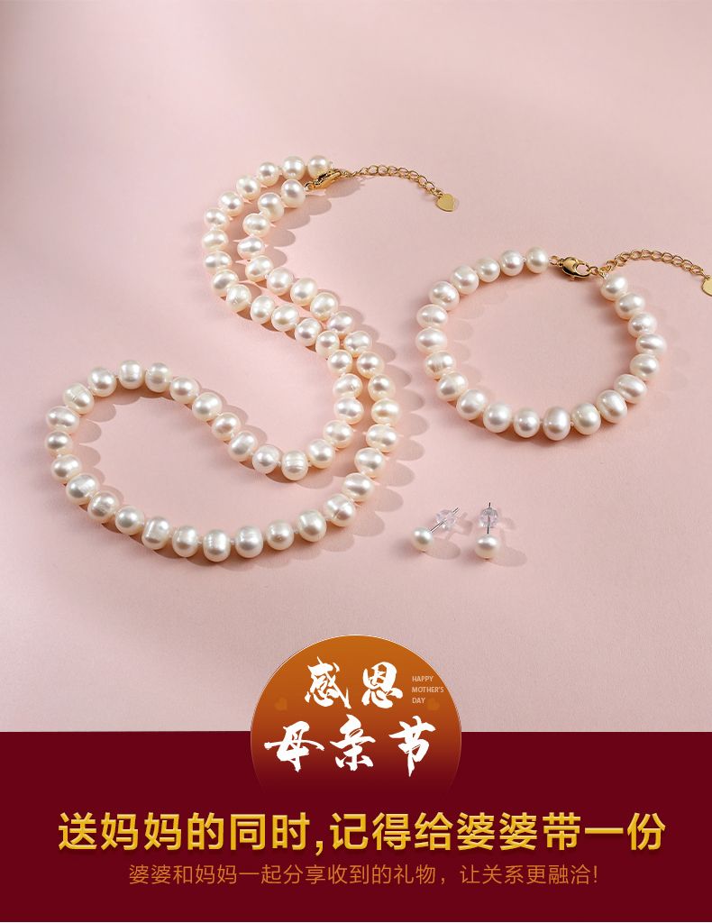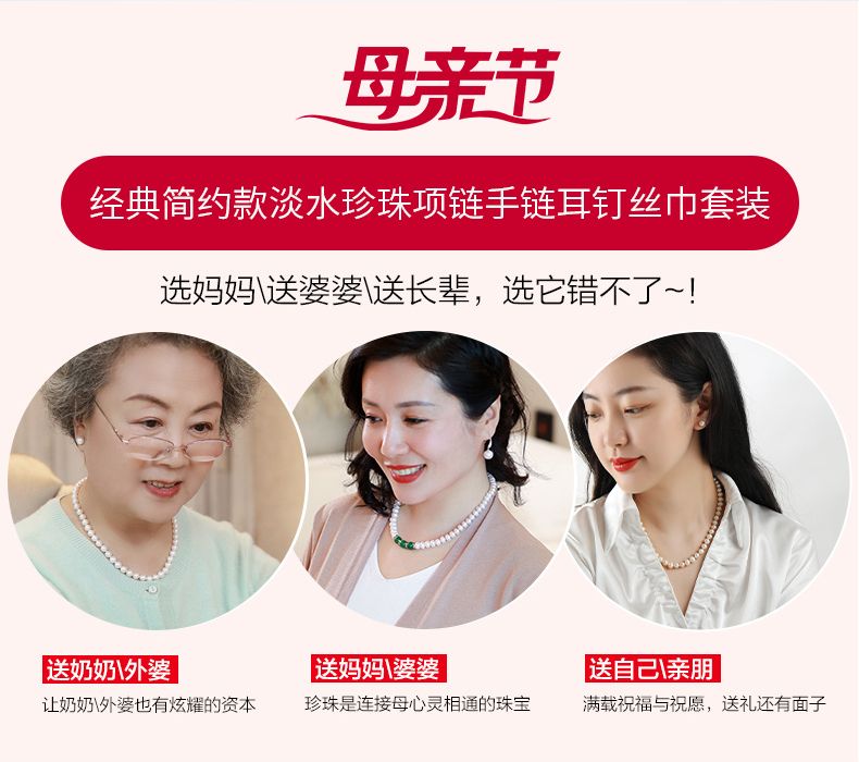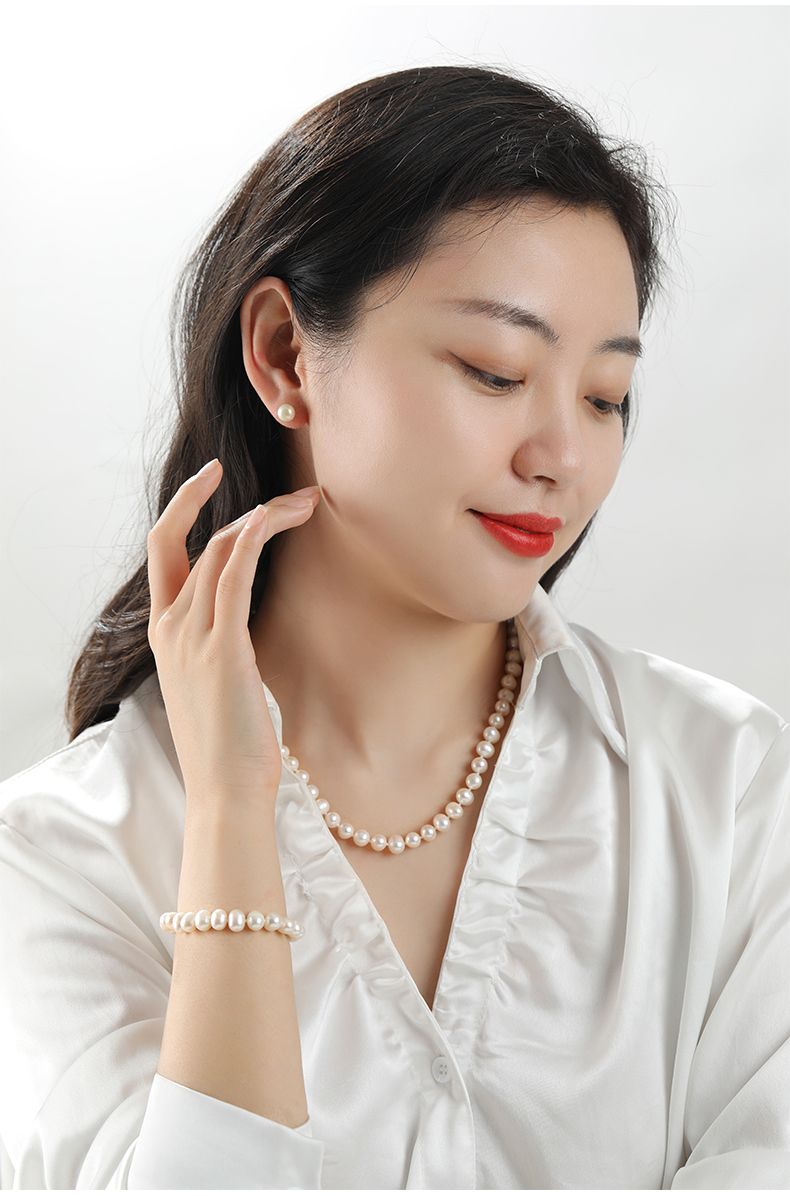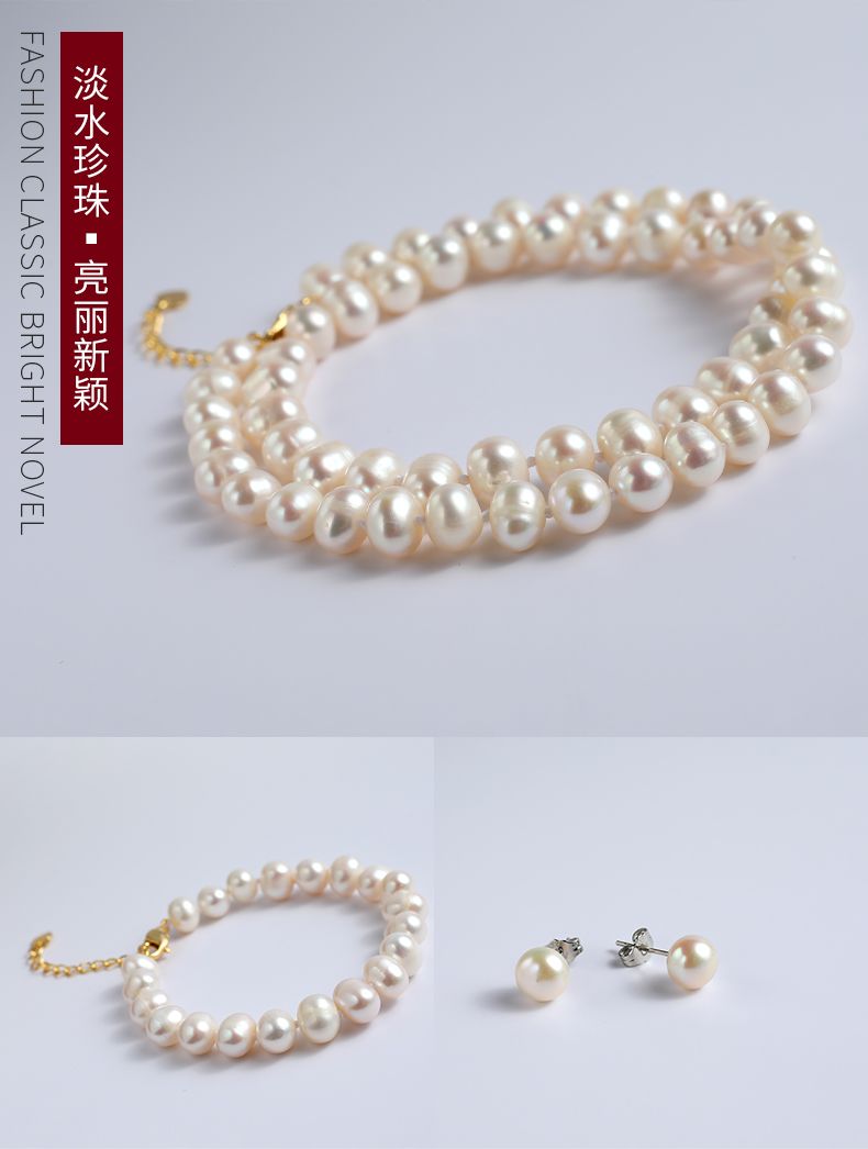 商品名称:经典简约款淡水珍珠项链手链耳钉丝巾套装