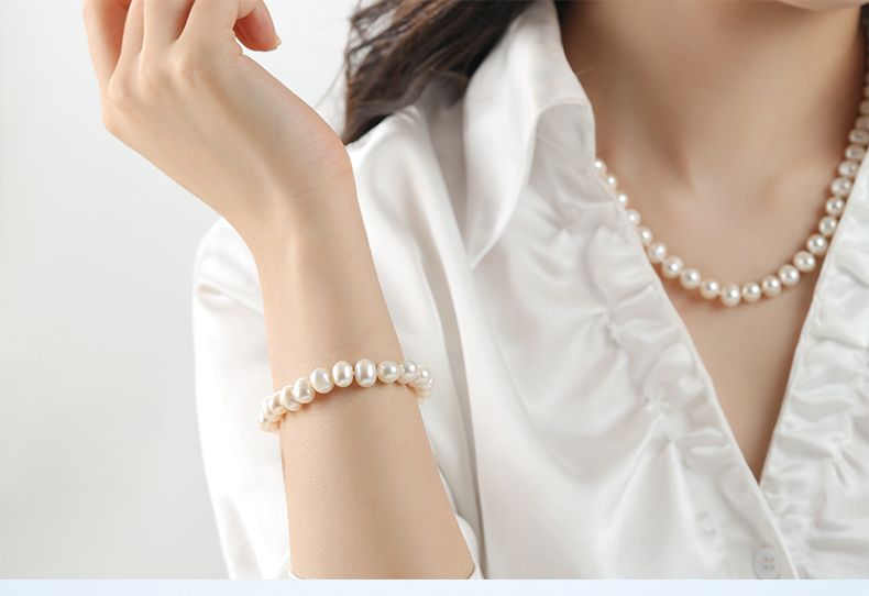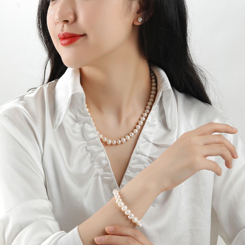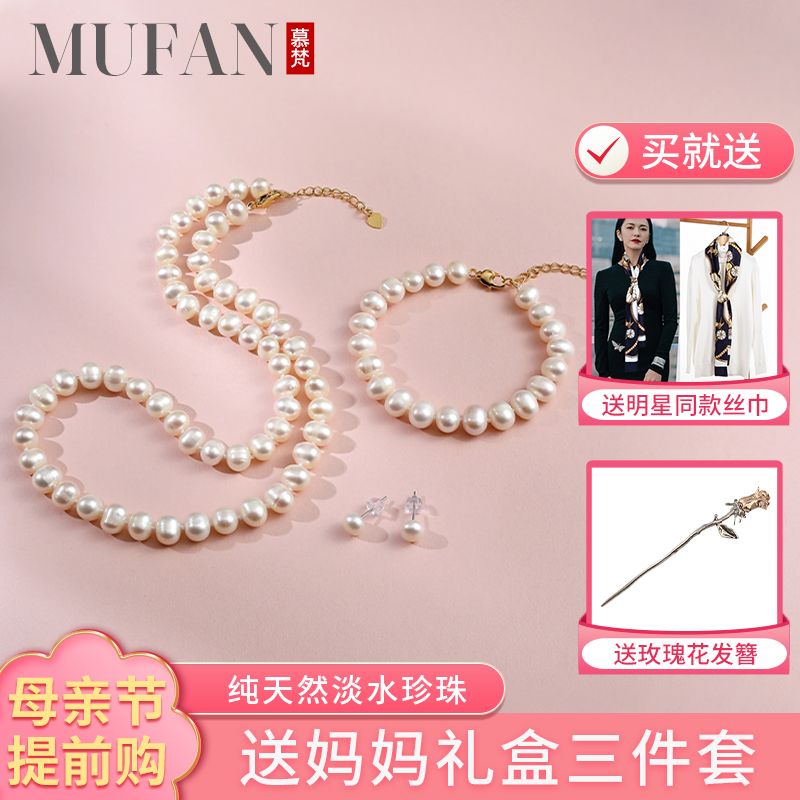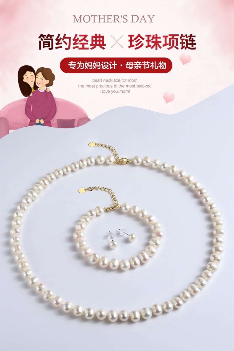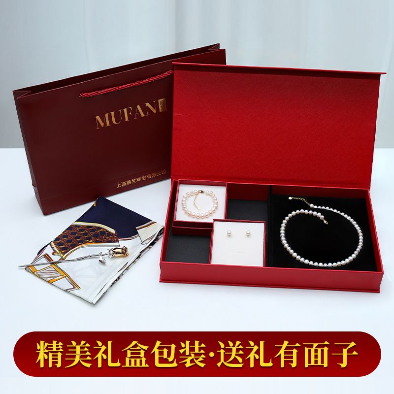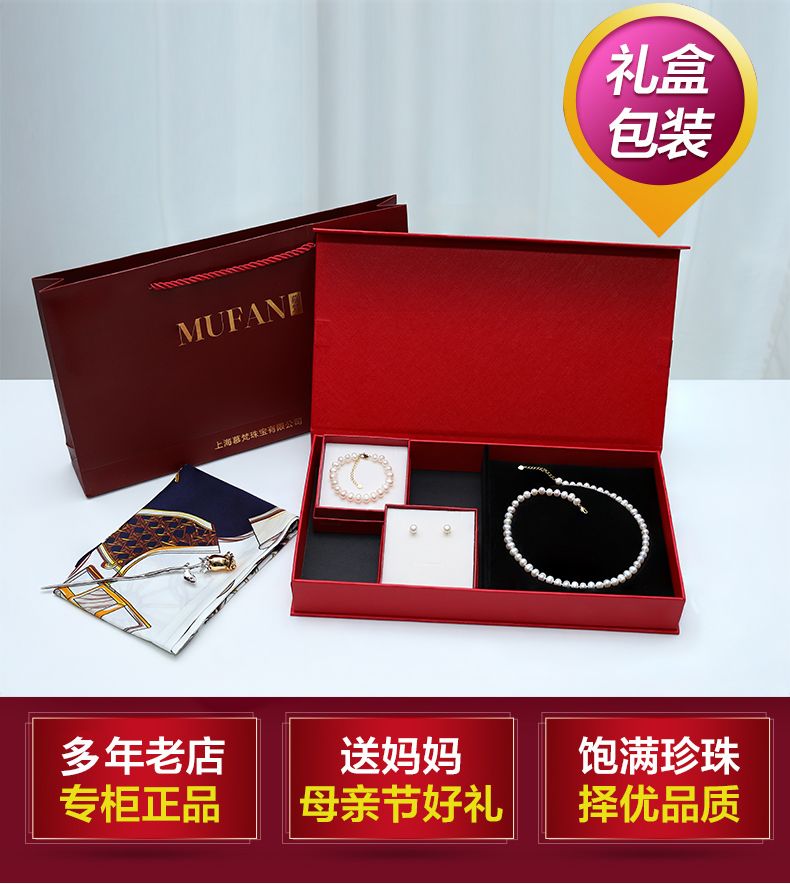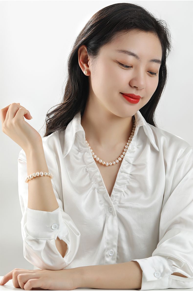 商品名称:经典简约款淡水珍珠项链手链耳钉丝巾套装