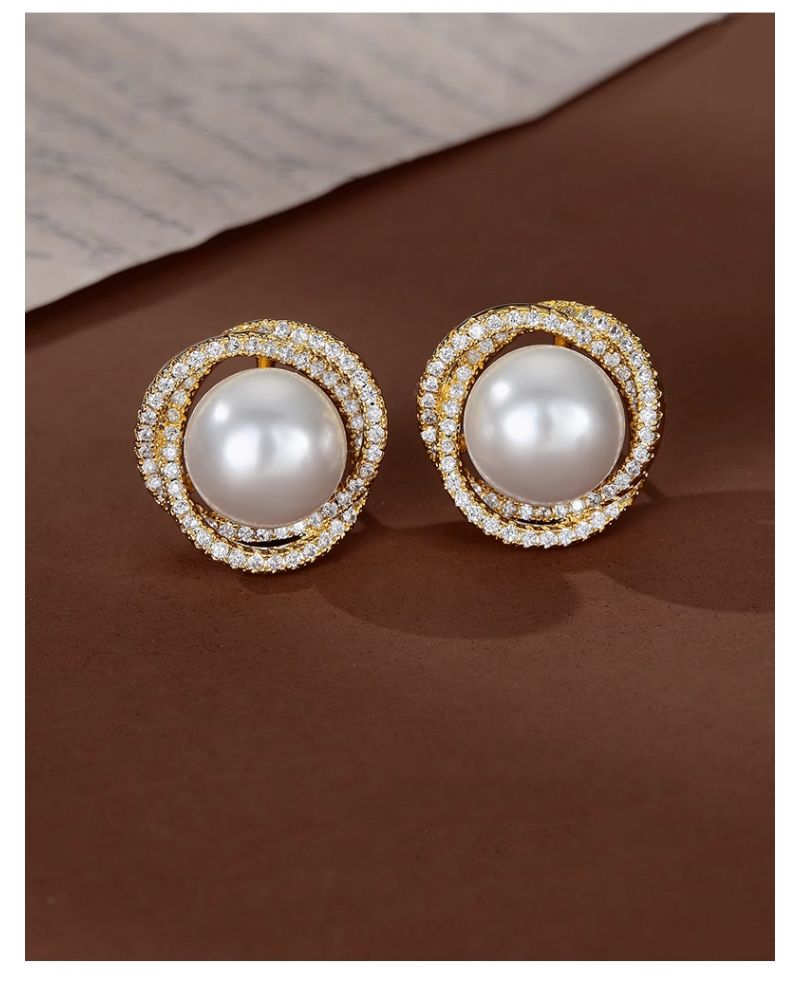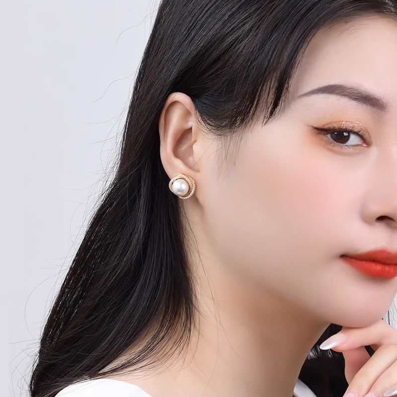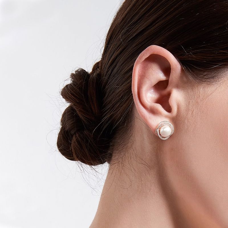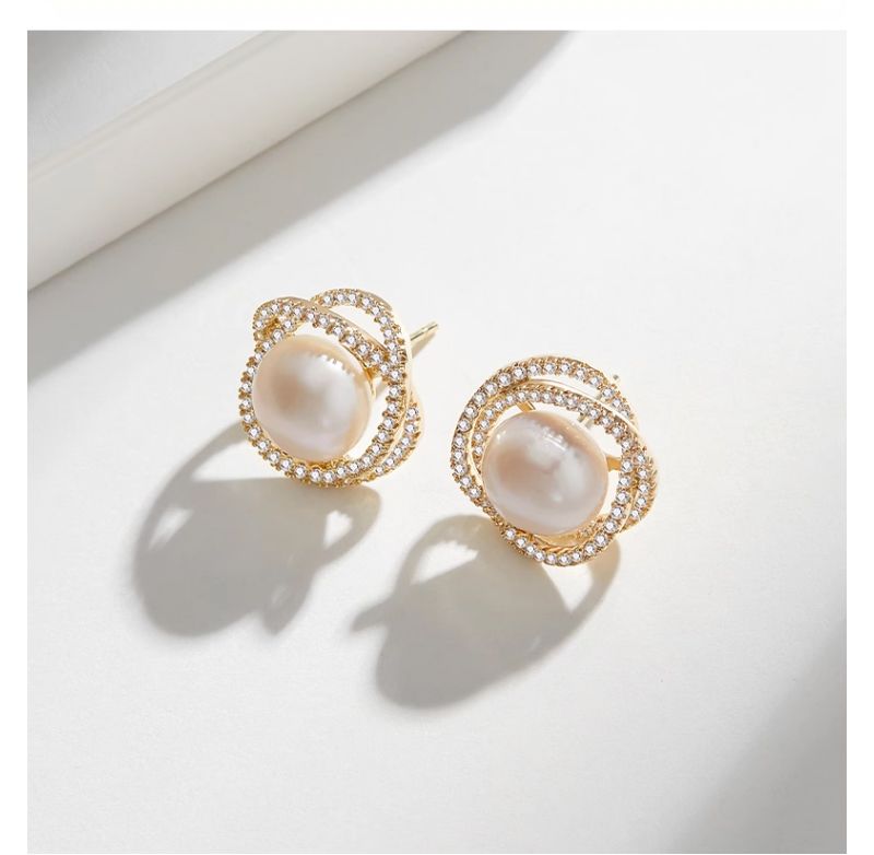 经典鸟巢款8-9mm淡水珍珠耳钉