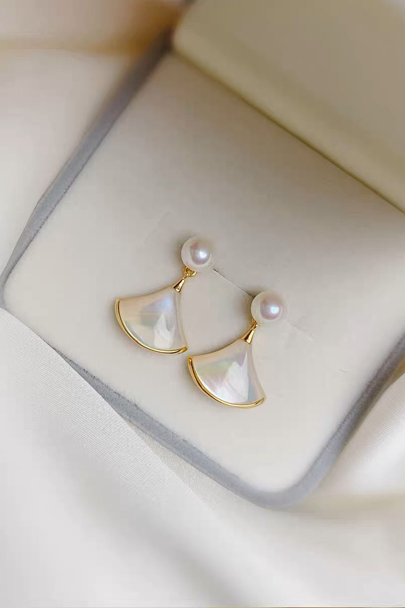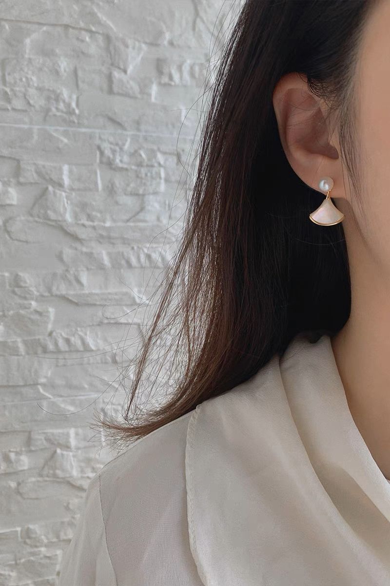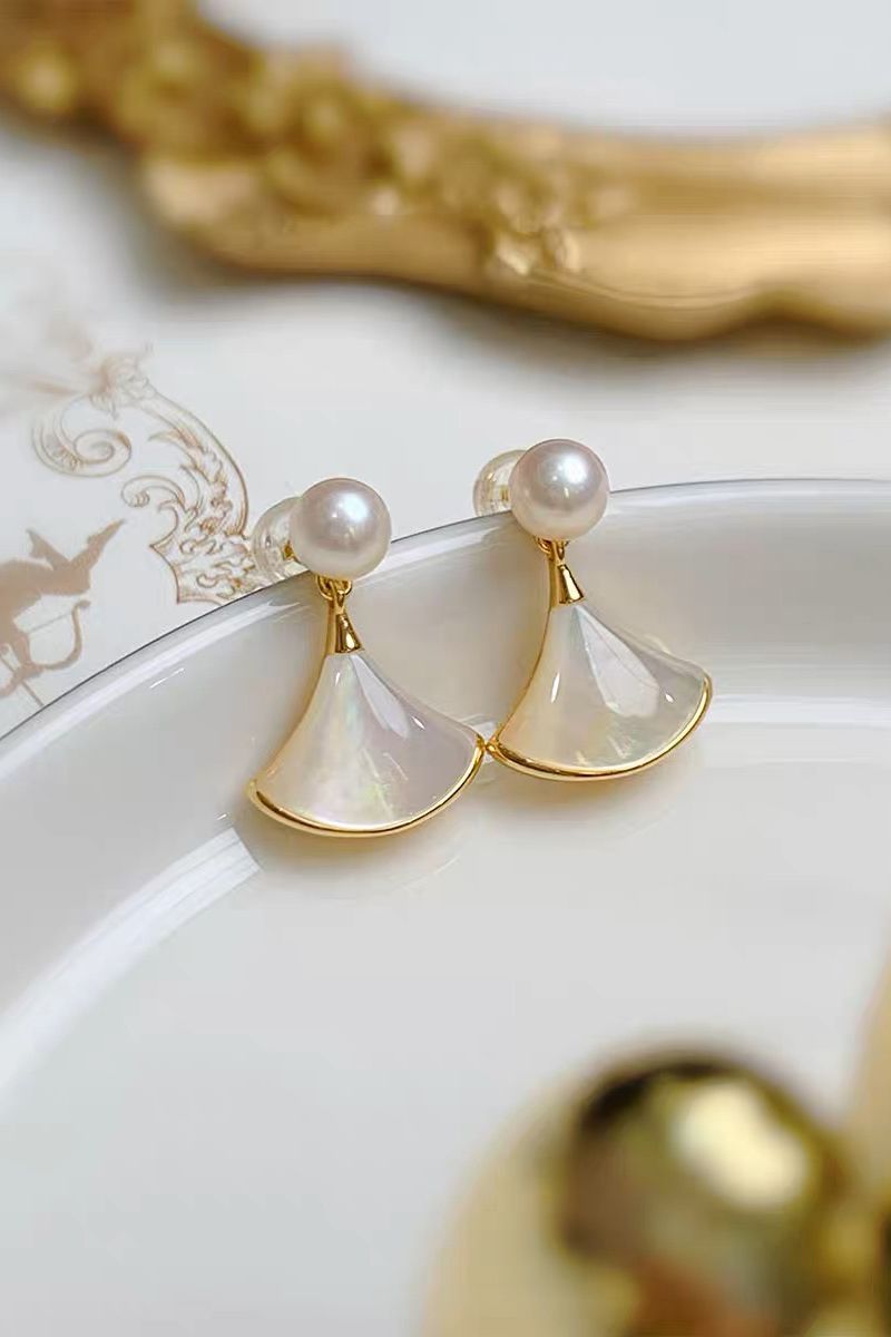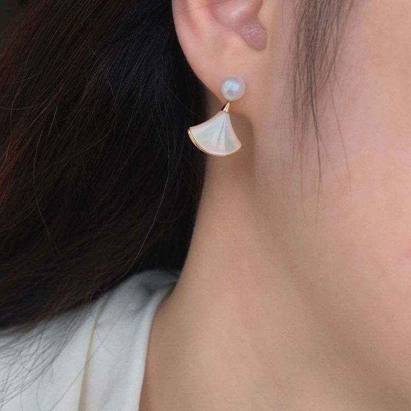 慕梵 小白裙银杏叶淡水珍珠耳环镶嵌天然贝母