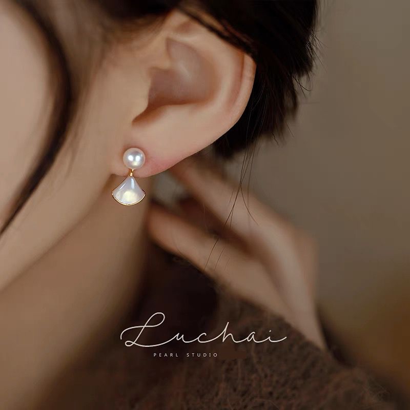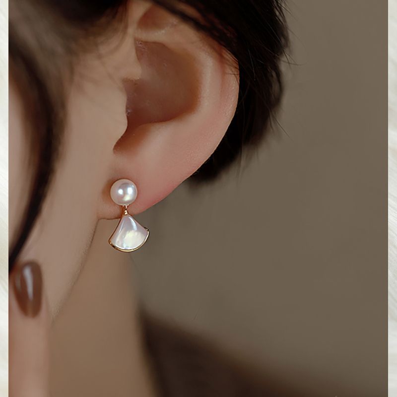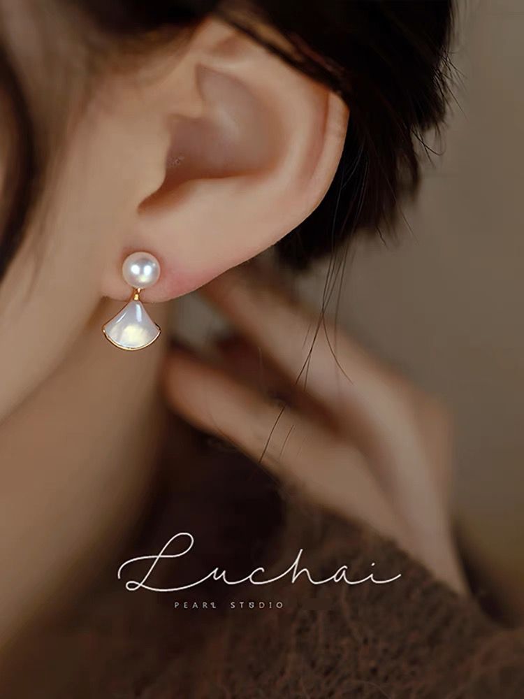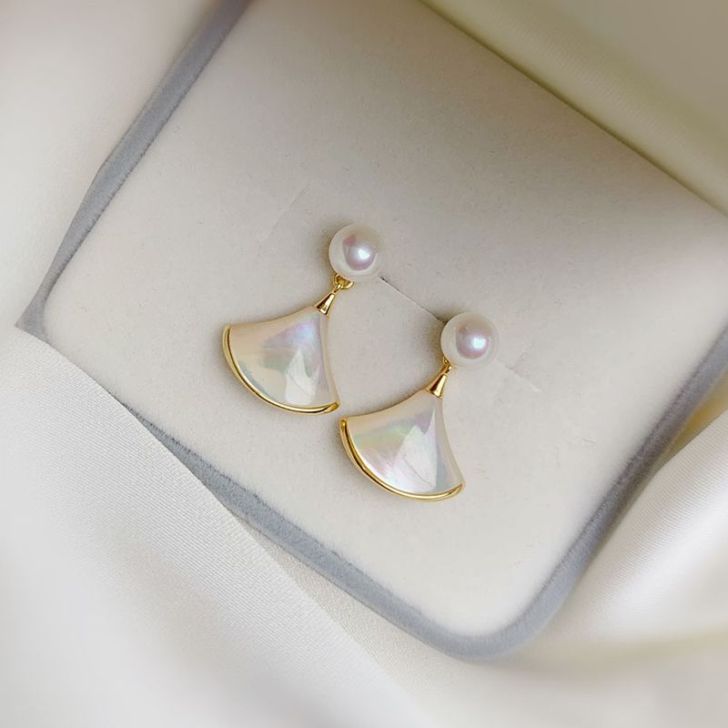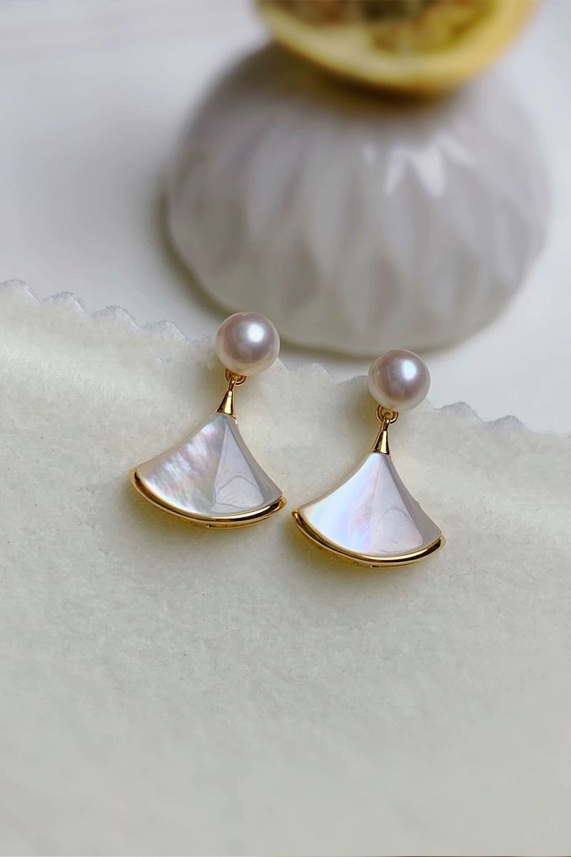 慕梵 小白裙银杏叶淡水珍珠耳环镶嵌天然贝母