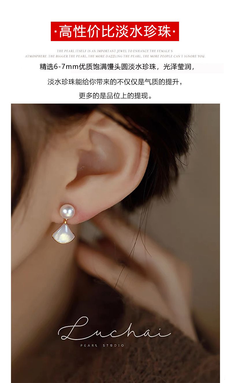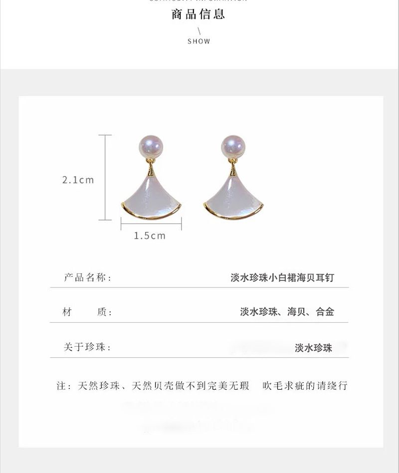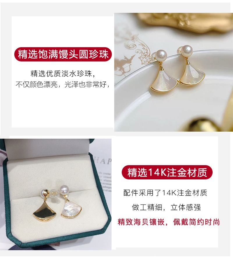 商品名称:慕梵 小白裙银杏叶淡水珍珠耳环镶嵌天然贝母