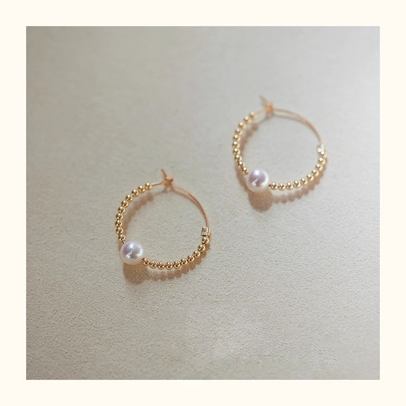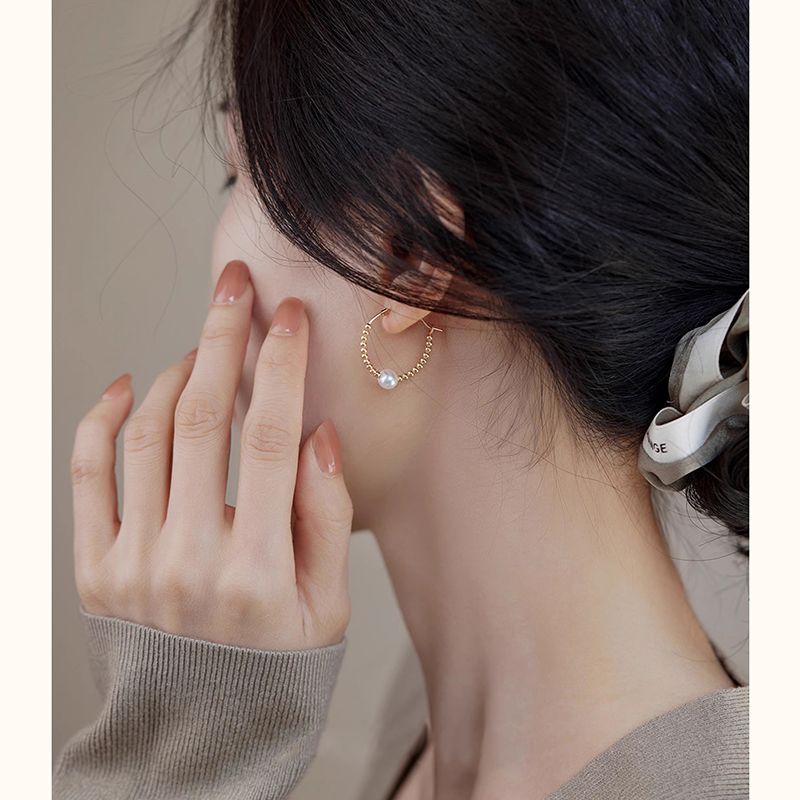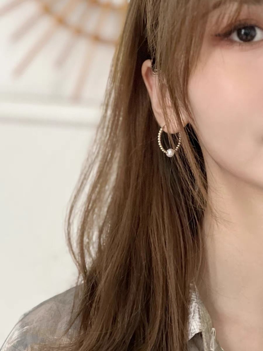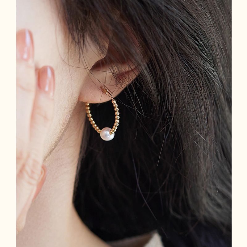 去有风的地方同款珍珠14K包金耳圈气质耳环