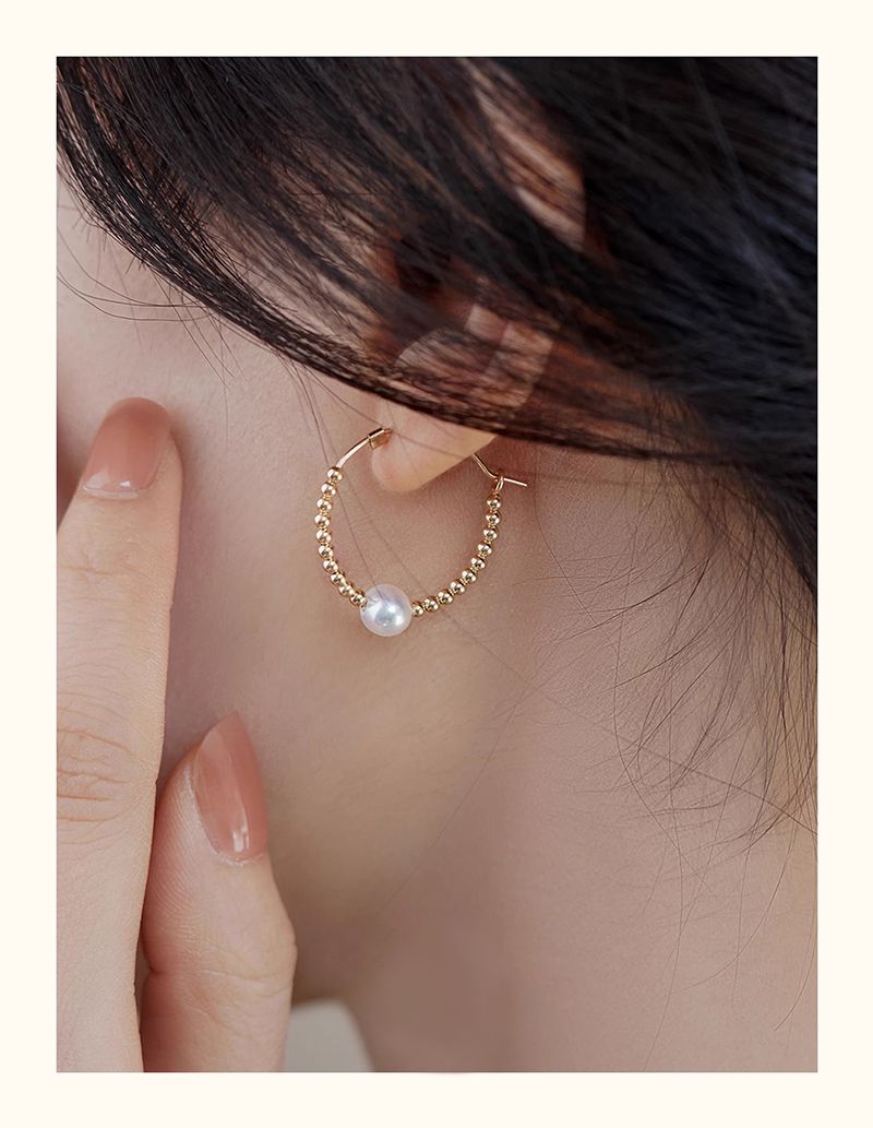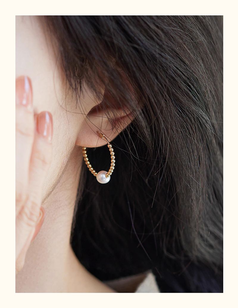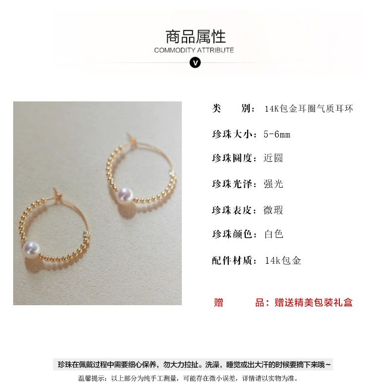 商品名称:去有风的地方同款珍珠14K包金耳圈气质耳环