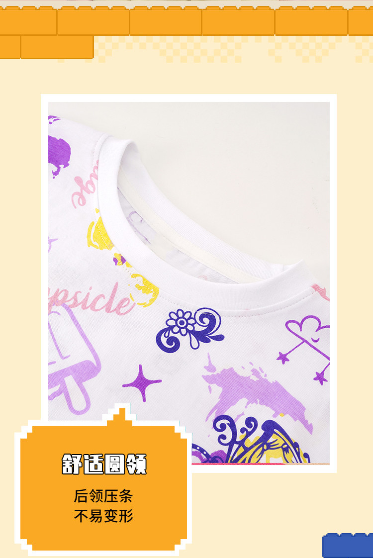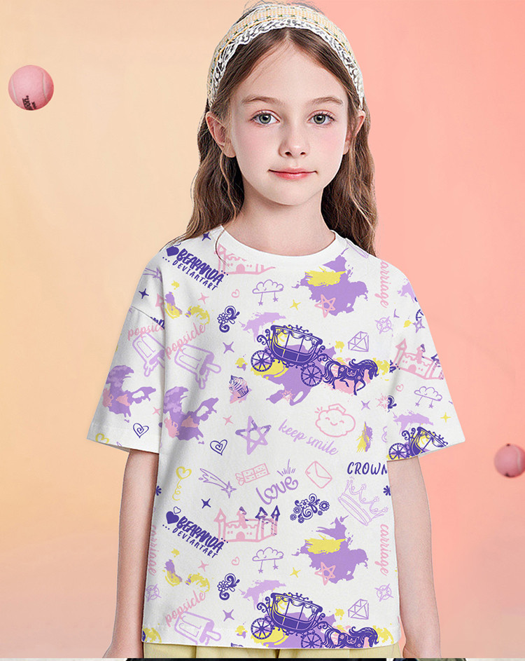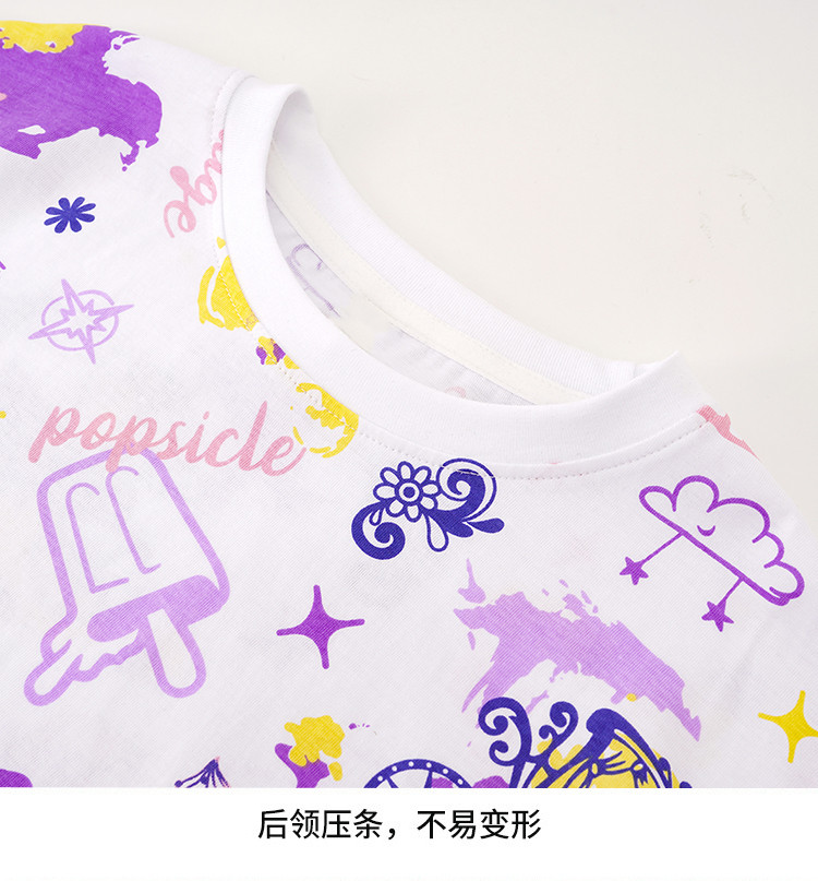 夏季女童纯棉满印短袖T恤儿童亲肤透气时尚甜美上衣 187663
