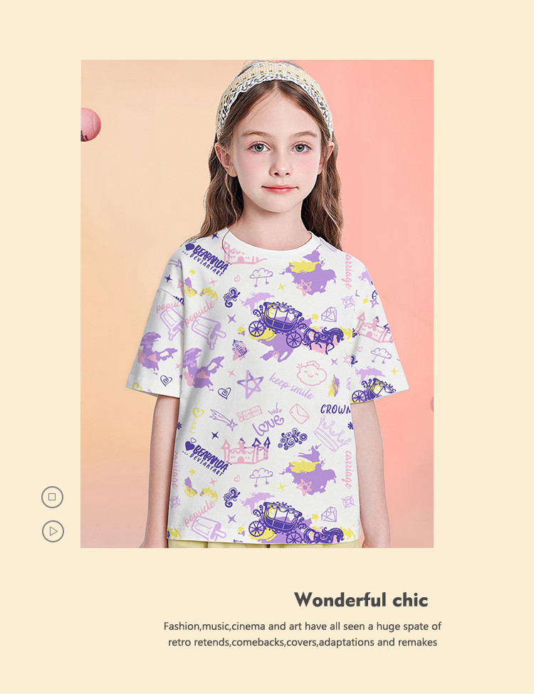 商品名称:夏季女童纯棉满印短袖T恤儿童亲肤透气时尚甜美上衣 187663