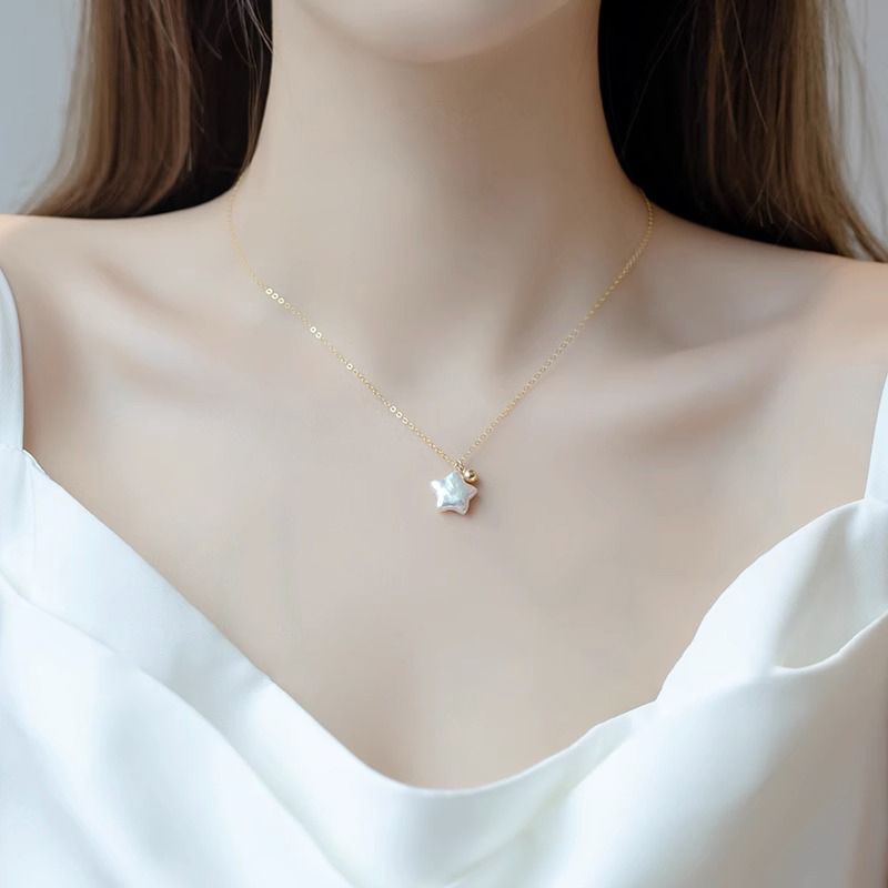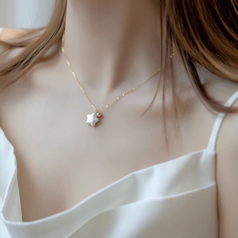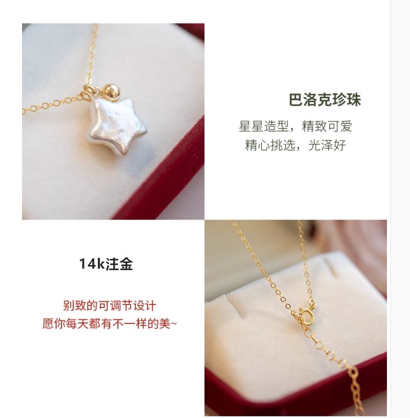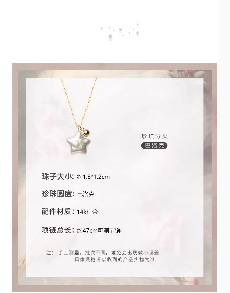 商品名称:慕梵 可爱五角星14k注金巴洛克淡水珍珠精致简约锁骨链小众设计