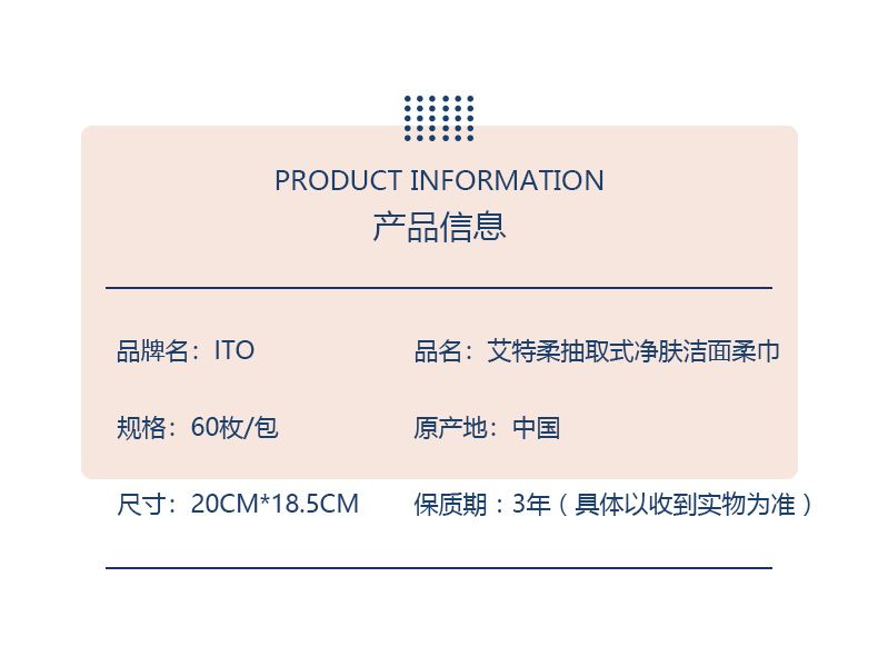 商品名称:ITO艾特柔抽取式净肤洁面柔巾60片(新款)