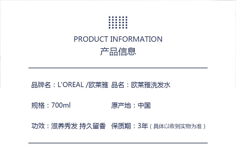 商品名称:L'oreal/欧莱雅 洗发露700ml (国产版)
